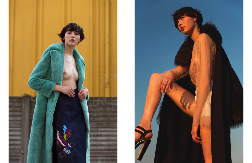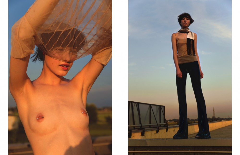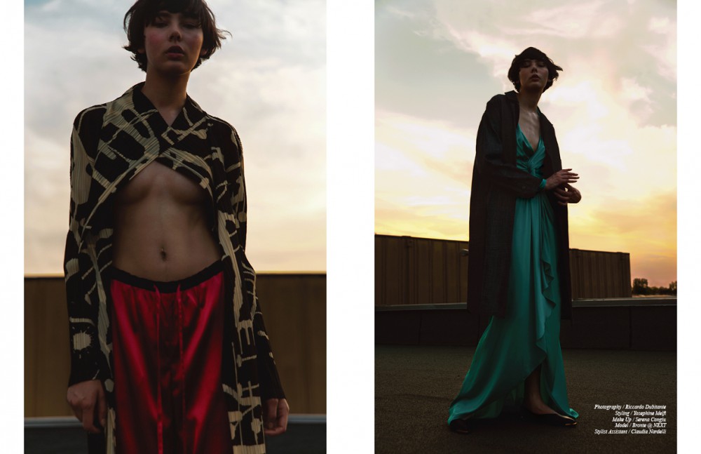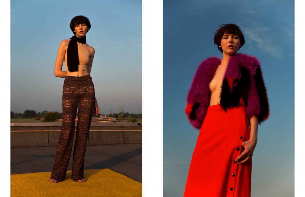 Autumn sun bathes this Schön! online editorial by photographer Riccardo Dubitante in a crepuscular glow. Stylist Yosephine Melfi adorns model Bronte in textural Emilio Pucci, Iceberg and Fendi in a seasonal special.