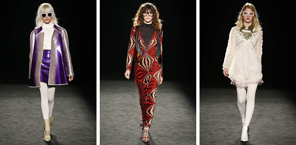 When brothers Custo and David Dalmau created Custo Barcelona in the early ‘80s, they were inspired by Californian surfer style, so it is no surprise that for autumn/winter 2016, their collection has a swinging ‘60s/’70s vibe. For the ladies, polo necks, miniskirts, hipster flares and tunic, shift and maxi dresses were teamed with square heeled ankle boots and large, graphic eyewear. Gentlemen were attired in slim, slightly cropped trousers and leopard print sweaters or jackets with oversized lapels. Although known for riotous colour, this season Custo toned it down, showing predominantly black, brown and grey garments, or plum and aubergine, interspersed sparingly with splashes of brighter purples, orange and midnight blue.
