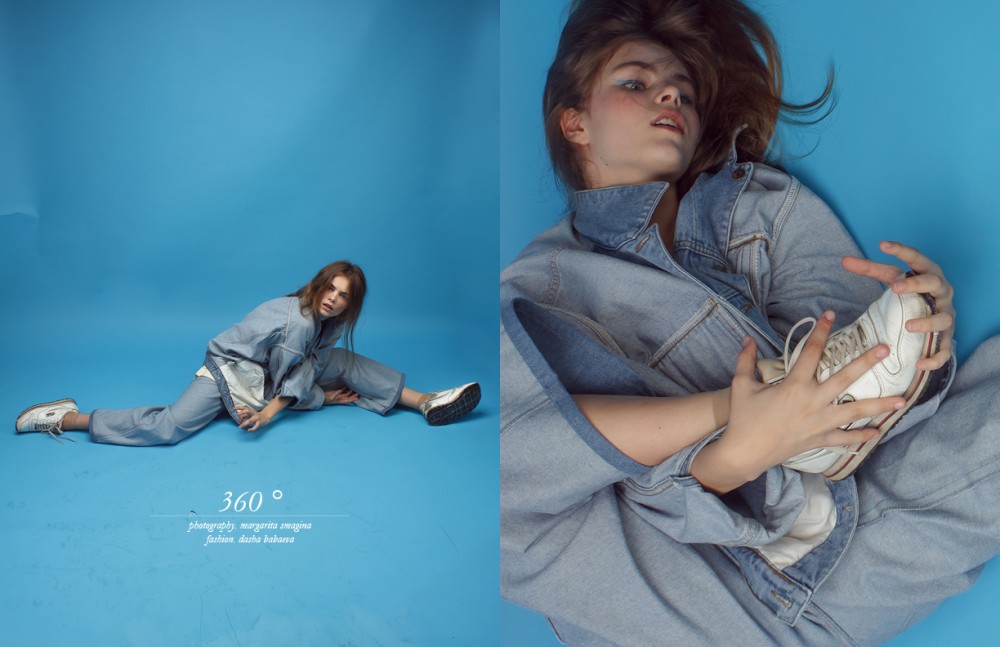 Denim days are over in this Schön! online editorial by Margarita Smagina. Athletic moves by model Liza turns us upside down, inside out, with 360° styling by Dasha Babaeva.