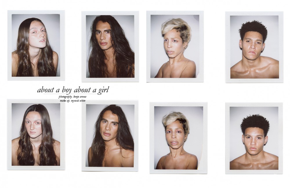 Photographer Benjo Arwas and Los Angeles Beauty Editor Mynxii White come together to capture intimate portraits of the new faces of beauty. About a Boy, About a Girl looks beyond the carbon copied faces forced into social media, beyond the stenciled eye brows, beyond perfectly bleached locks, beyond the manufactured “artistry” fed to consumers on every communal platform that have become the contemporary ideal and standard of beauty in the industry. These are the real faces of fashion. The freckles that add charm, the unique features that create fascinating elegance, the androgynous sex appeal that sets fires to our hearts… It’s this “redefining beauty” we’ve begun to hear of. These are some of the faces that inspire exhilarating stories and trigger undeniable change in the world. These are the faces that are remembered.