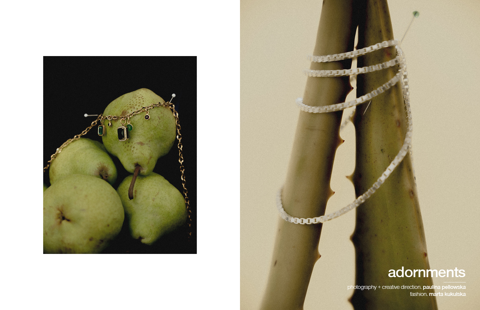 Set designer Monika Szuminska crafts a picturesque still life in this Schön! editorial featuring creative direction by Paulina Pellowska and Monika Szuminska with adornments curated by Marta Kukulska who styles pieces from SAVVY, ŚWIST, and others.