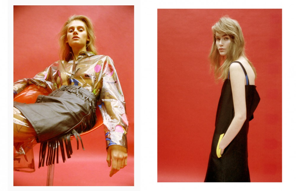 Eve @ Select wears Dress / MIUNIKU Opposite Eva @ Next wears Dress / Sankuanz Leather Skirt / Preen Shoes / Toga