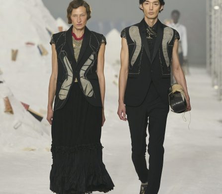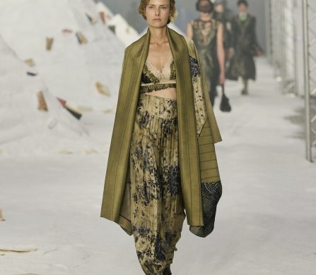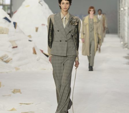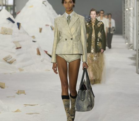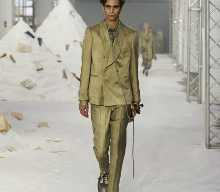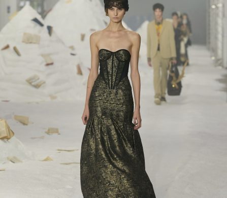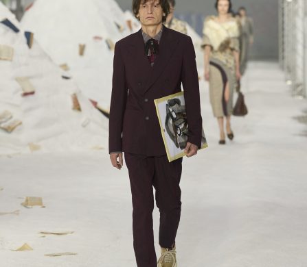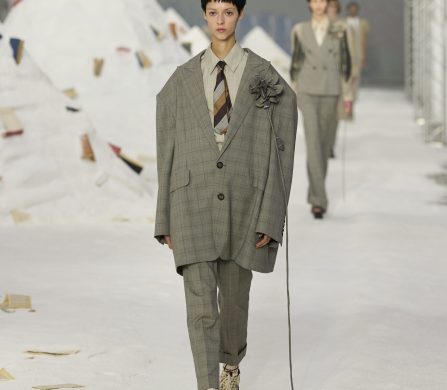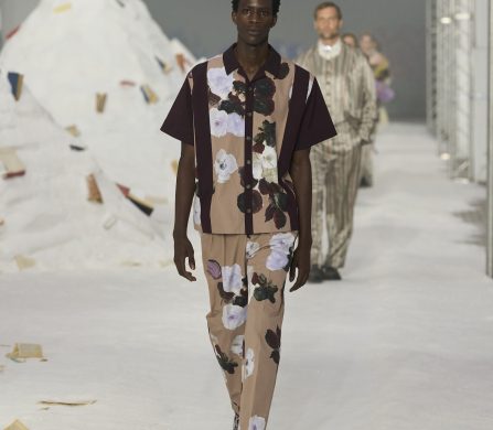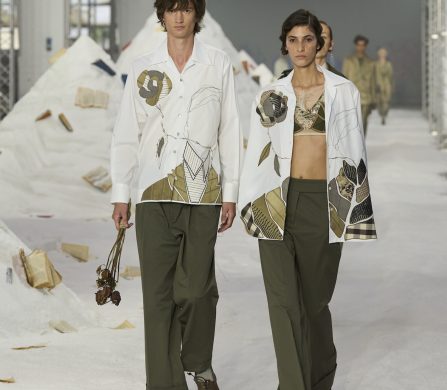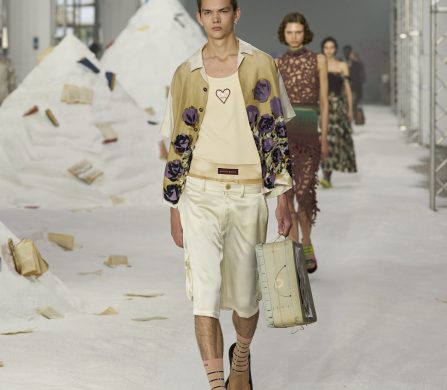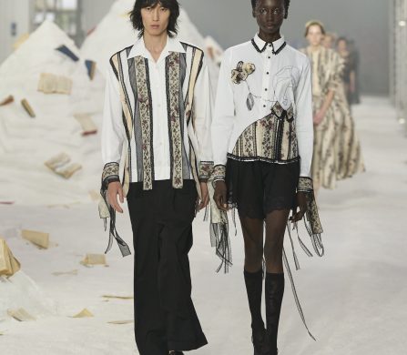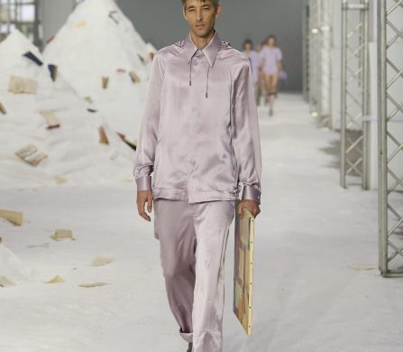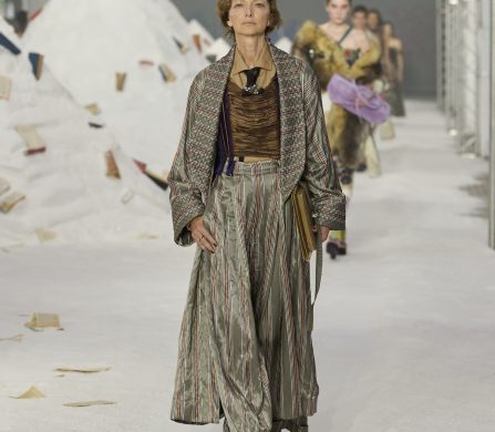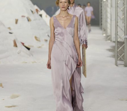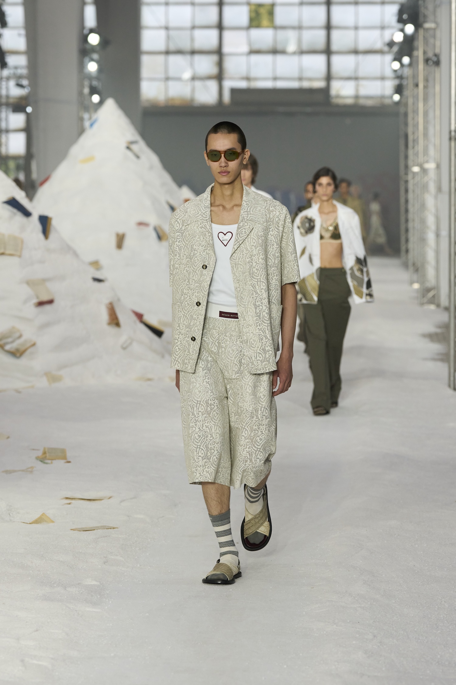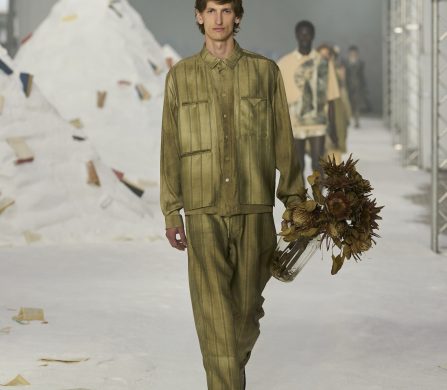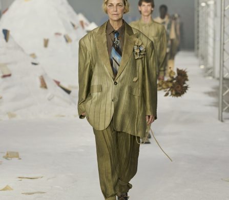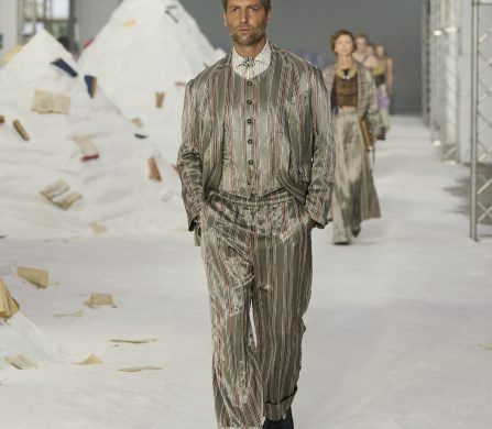 The collection is about overlapping references, short circuits between Hollywood glamour, Bloomsbury’s radical intimacy, and Sardinian festivity. Marras creates a handwriting that is deeply his own, rejecting uniformity for a kind of deliberate polyphony. In this ‘travel journal,’ beauty belongs to everyone – to those who stay, those who leave, those who simply pass through.