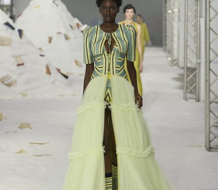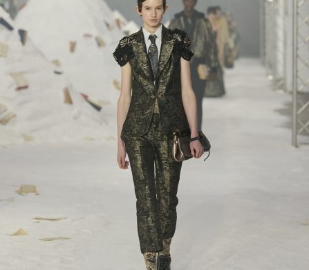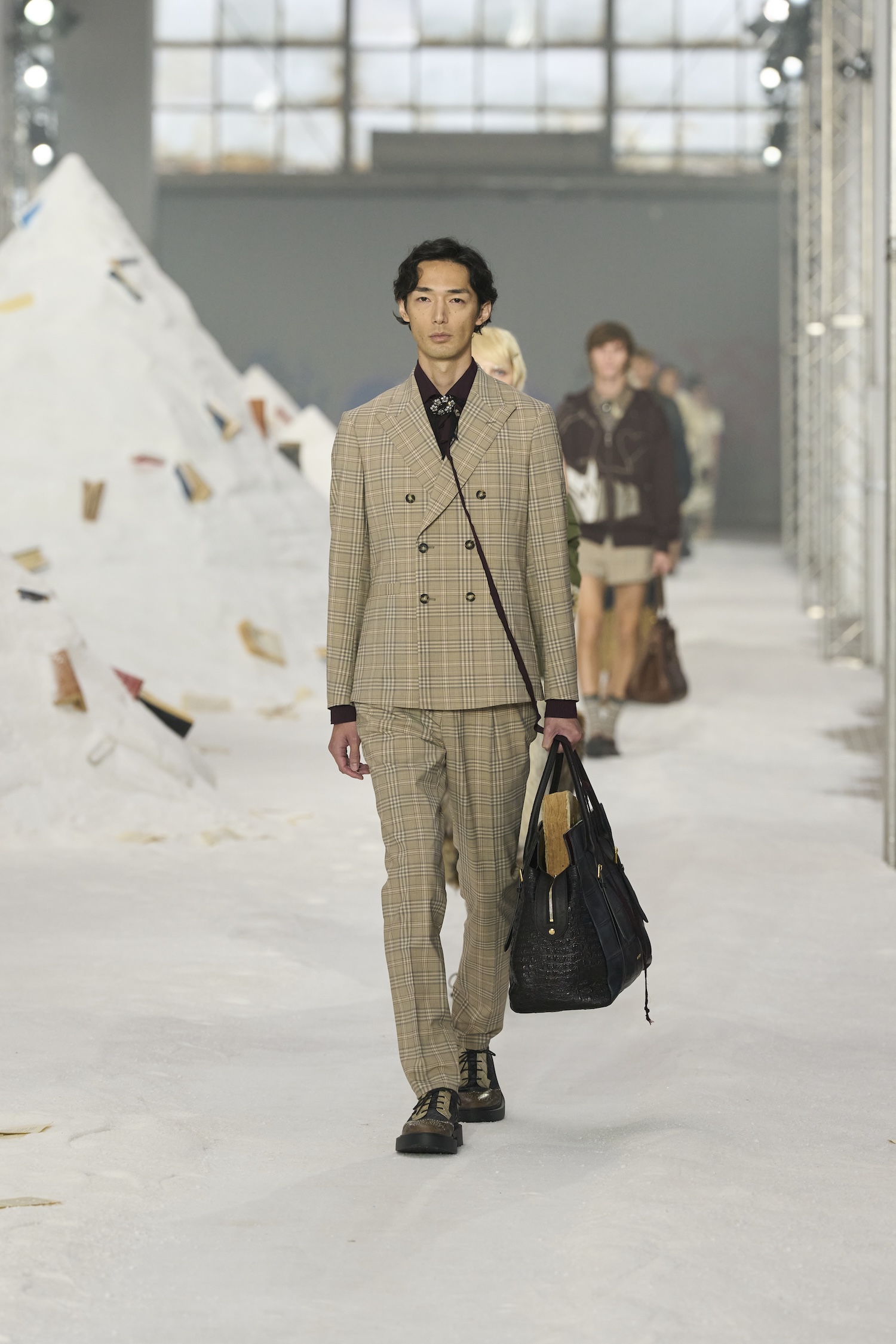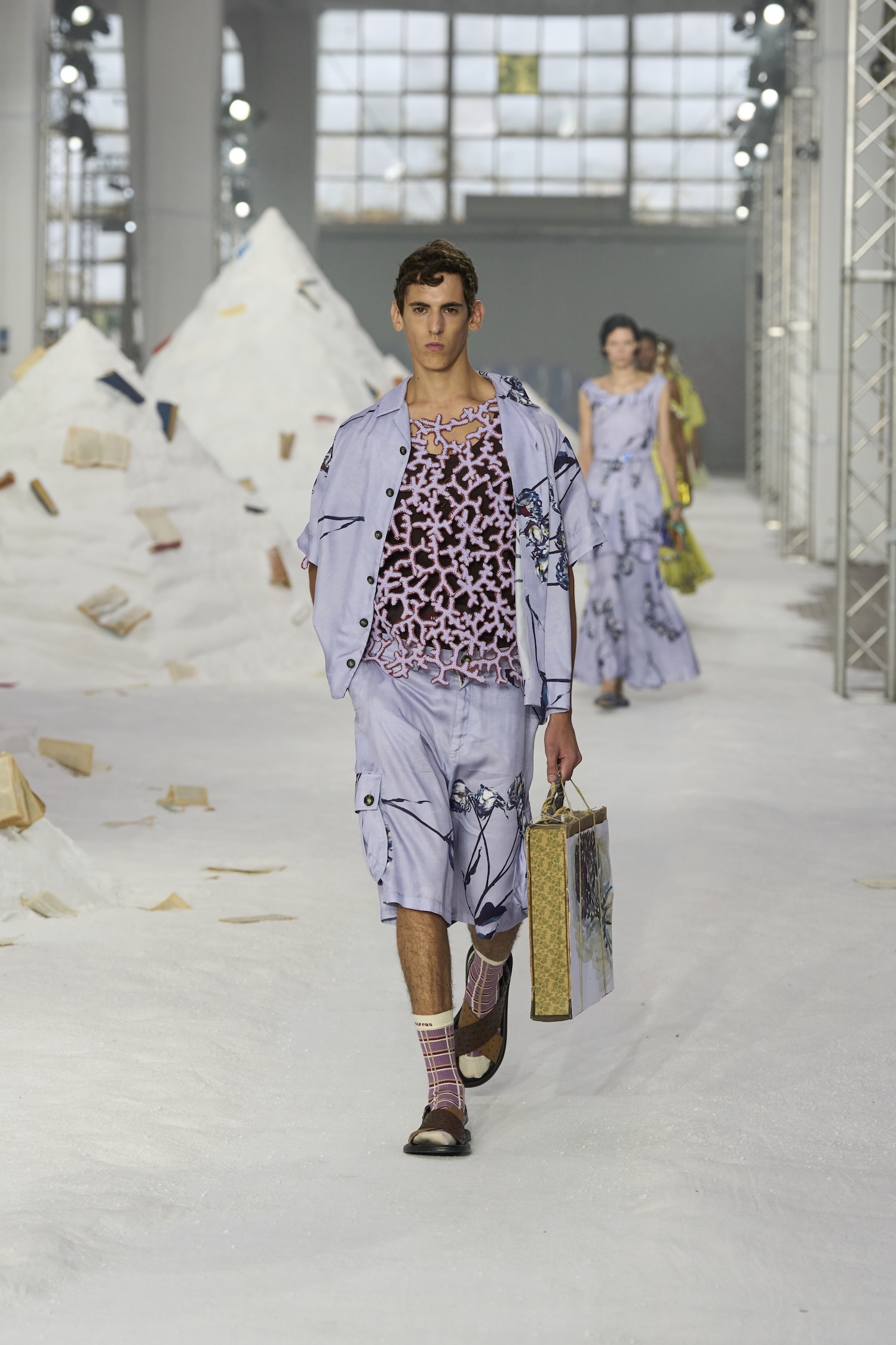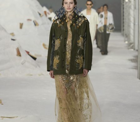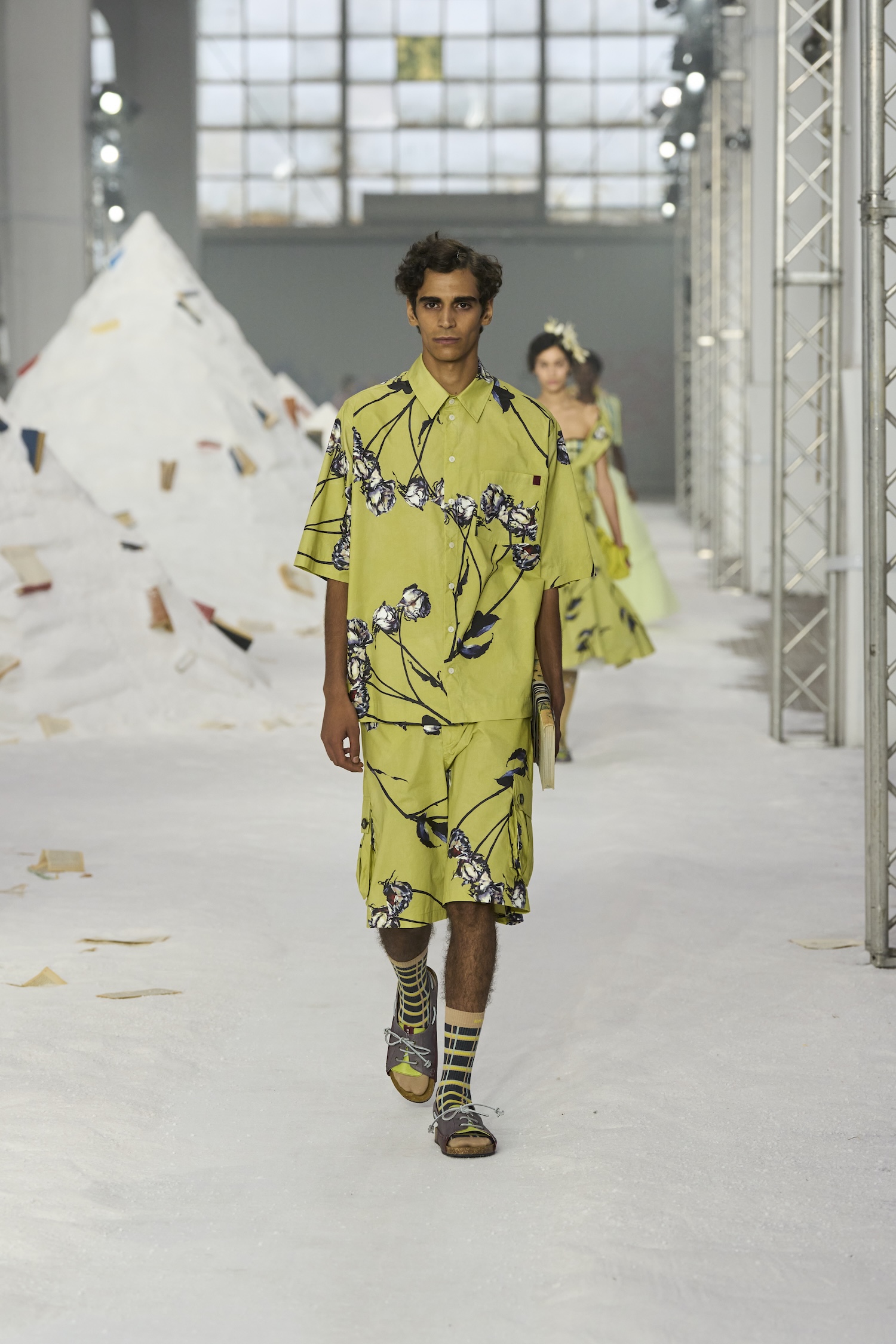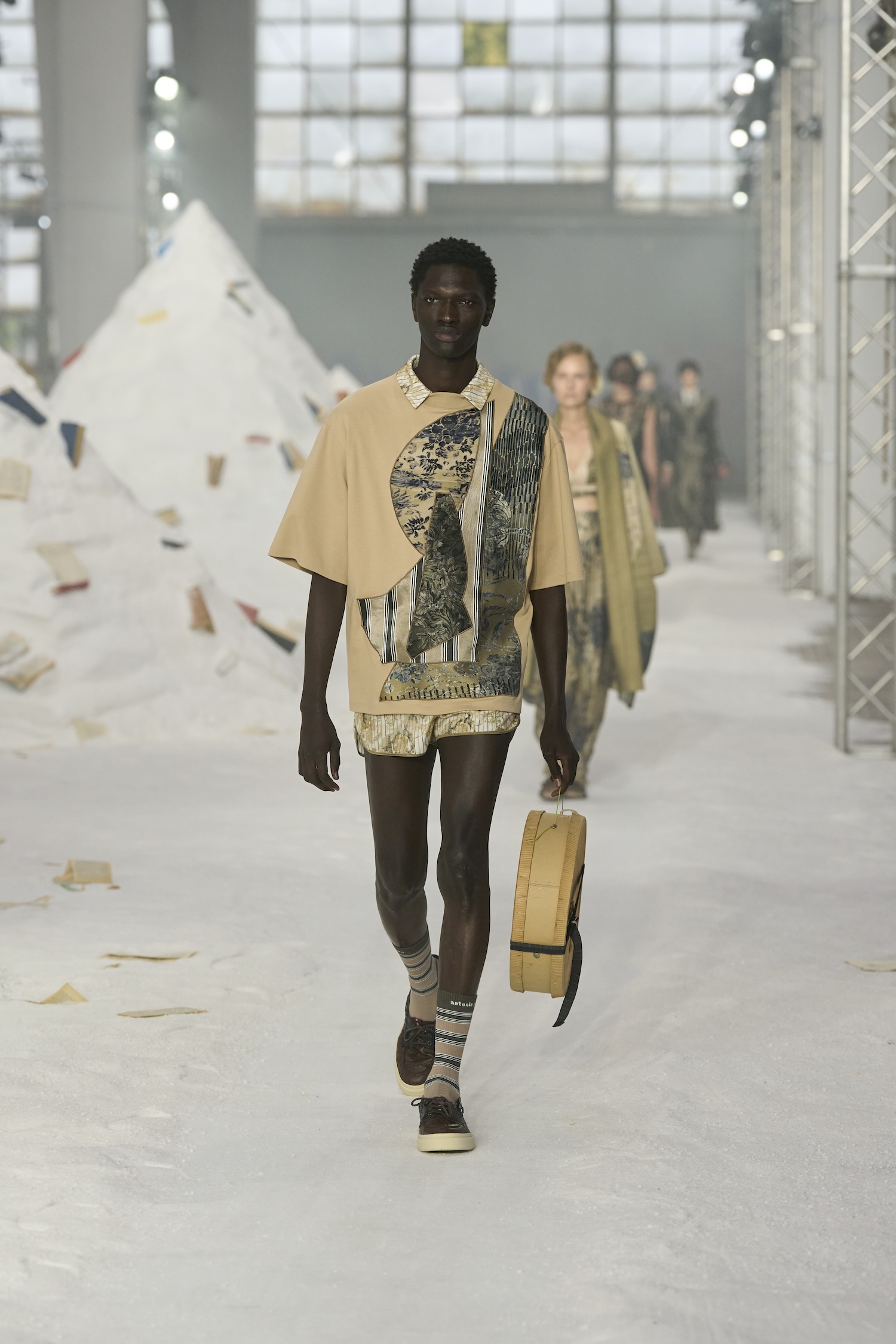 The collection is about overlapping references, short circuits between Hollywood glamour, Bloomsbury’s radical intimacy, and Sardinian festivity. Marras creates a handwriting that is deeply his own, rejecting uniformity for a kind of deliberate polyphony. In this ‘travel journal,’ beauty belongs to everyone – to those who stay, those who leave, those who simply pass through.