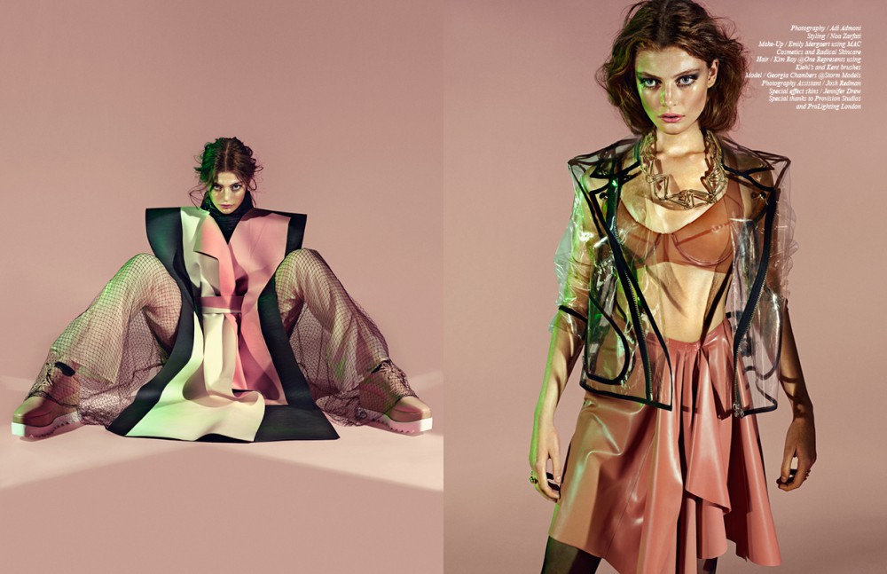 Photographer Adi Admoni sends surfaces into a reflective whirl in this Schön! online editorial. Stylist Noa Zarfati combines ethereal pieces by Phoebe English, Wanda Nylon and Stella McCartney, fashioning a sultry siren out of model Georgia Chambers.
