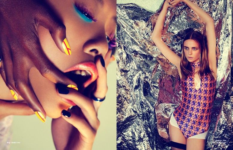 Acid brights play a major role in this Schön! online exclusive, produced by photographer Gunnar Tufta. Models Estella Amara, Cassie Davies and Sheena Liam are styled in fishnet hosiery and club-kid separates, with fashion by Otto Volquardsen. Pieces by Bordelle, Prabal Gurung and Kim West come alive as the models throw some shapes.