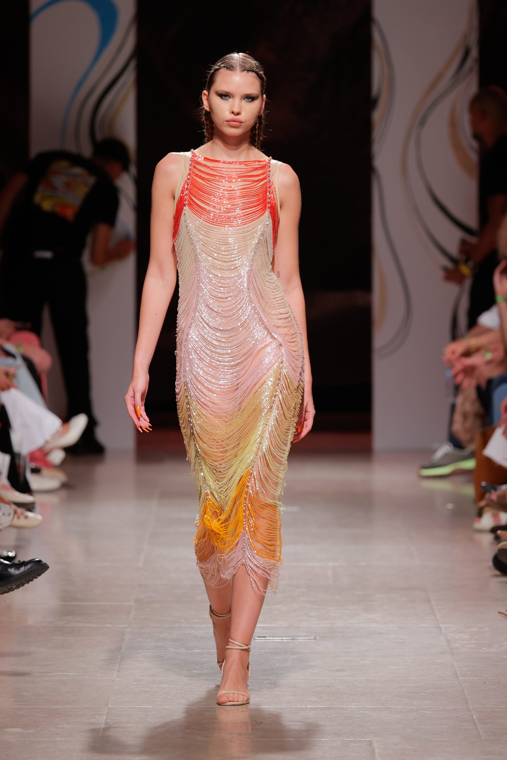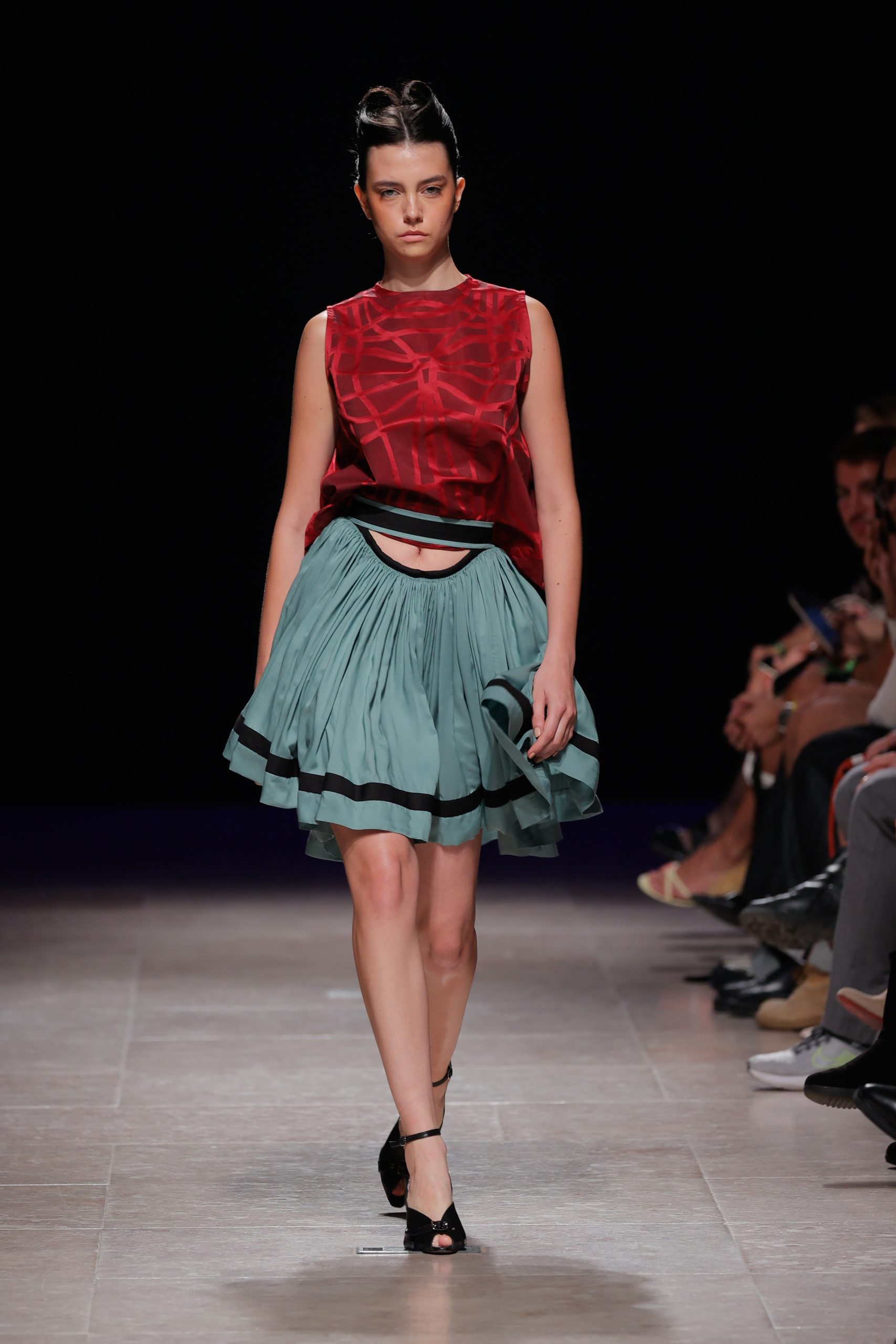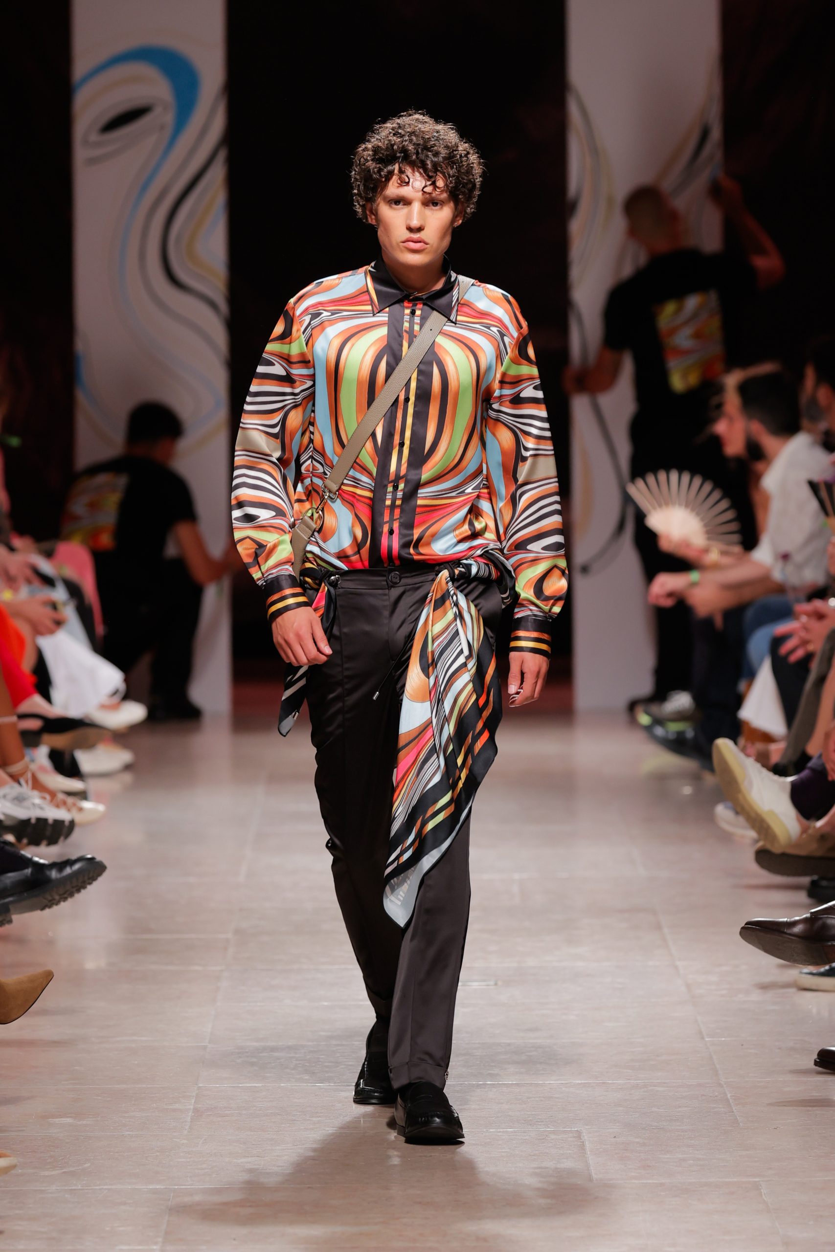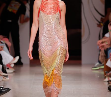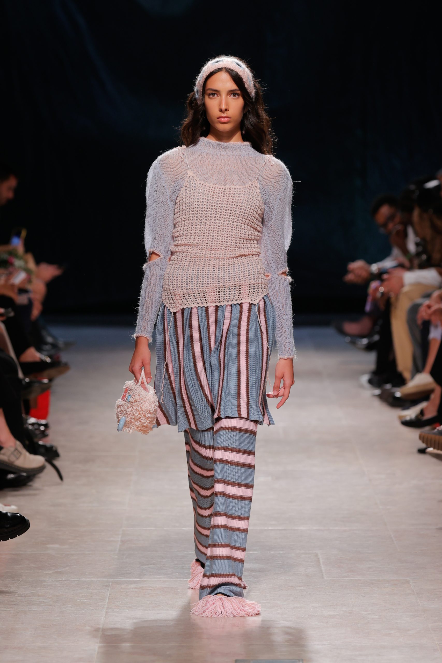 Carlos Gil kept things bright on day four with a showing of dynamic patterns and pops of neon colours, alongside slinky silhouettes and refined hardware. The collection takes inspiration from the rhythm and pulse of the city, incorporating graffiti as a symbol of creative freedom, and influencing the use of bold lines and excess of colour. The contrasts aimed to transform fashion “into a manifesto: free, authentic and perpetually moving”.
