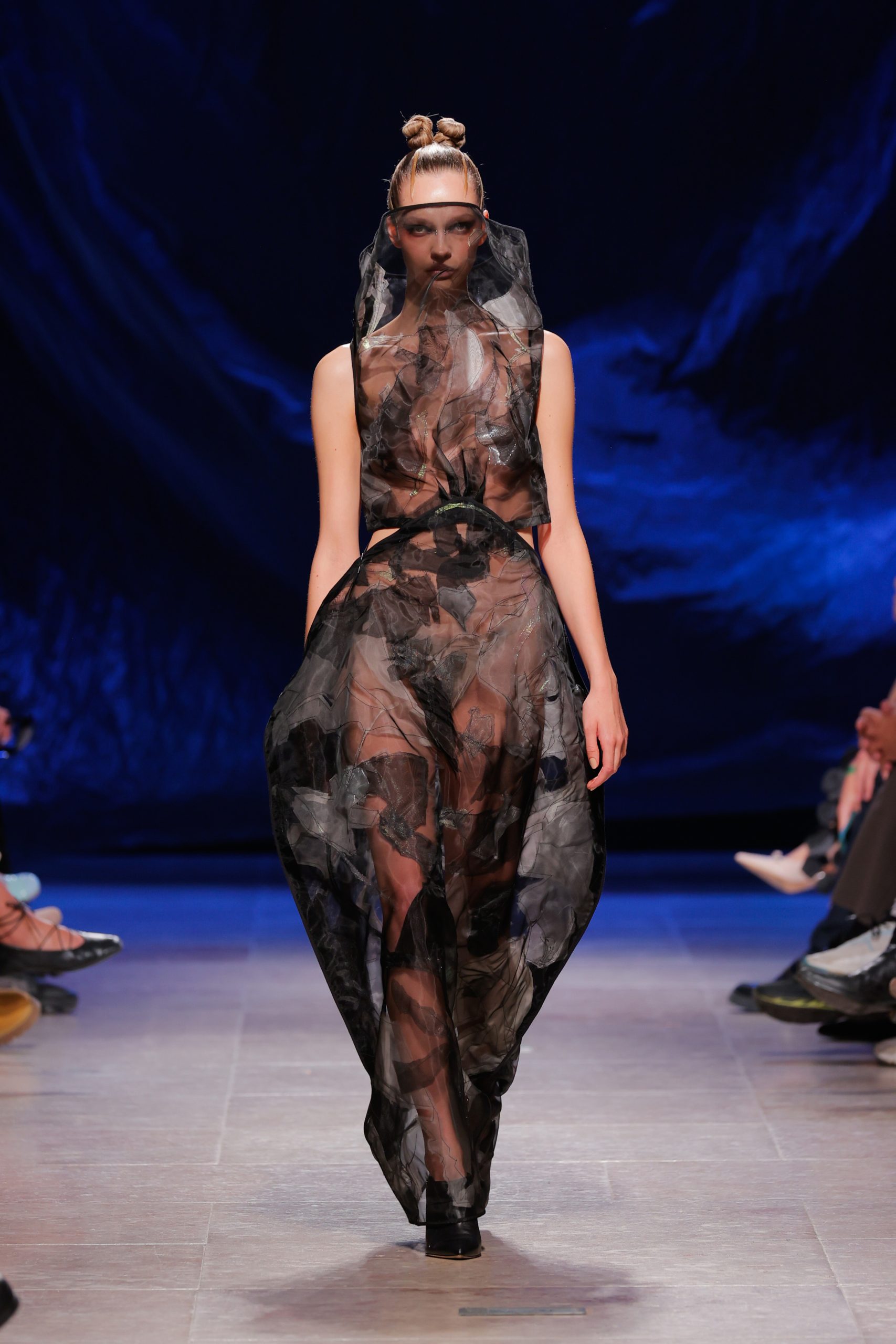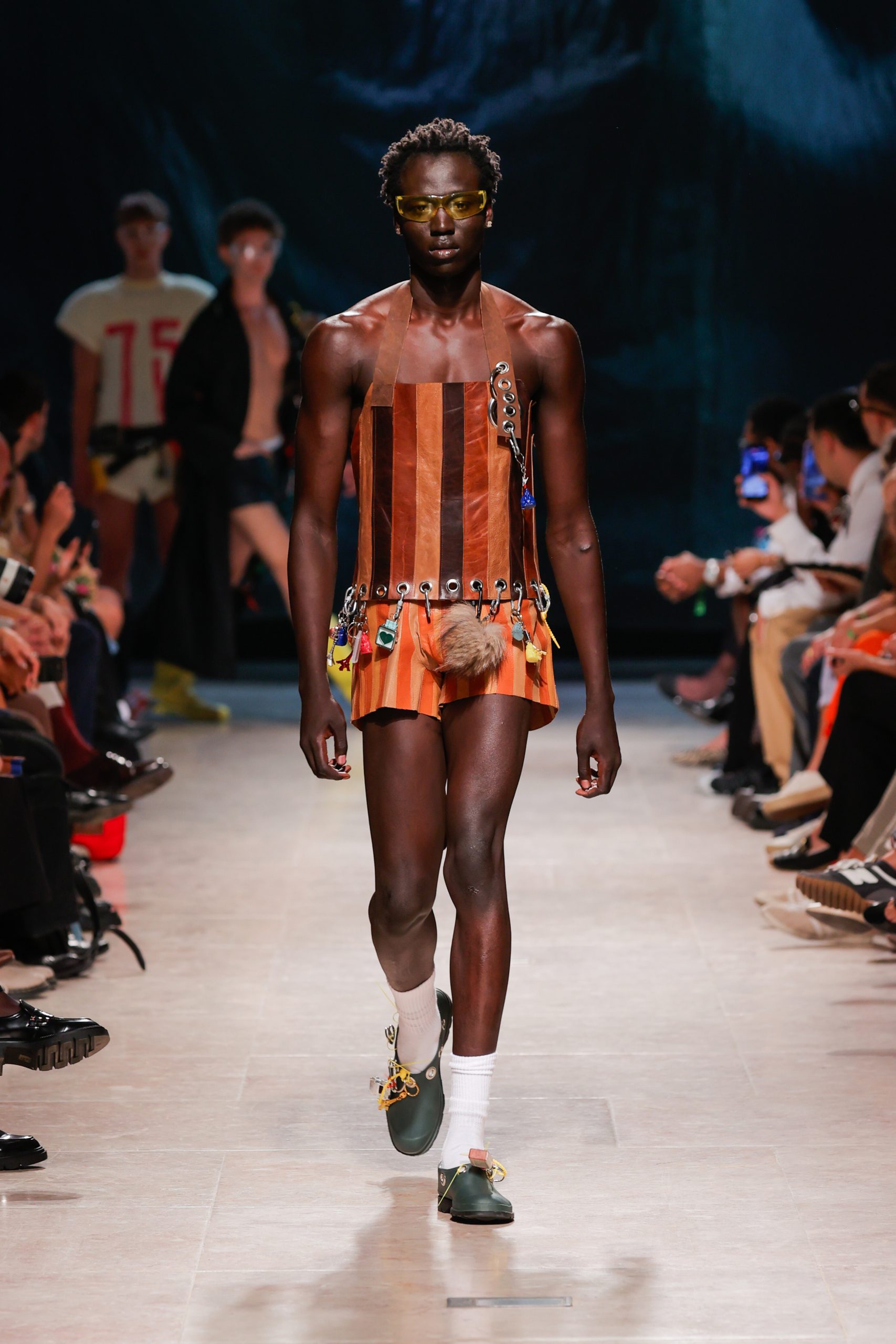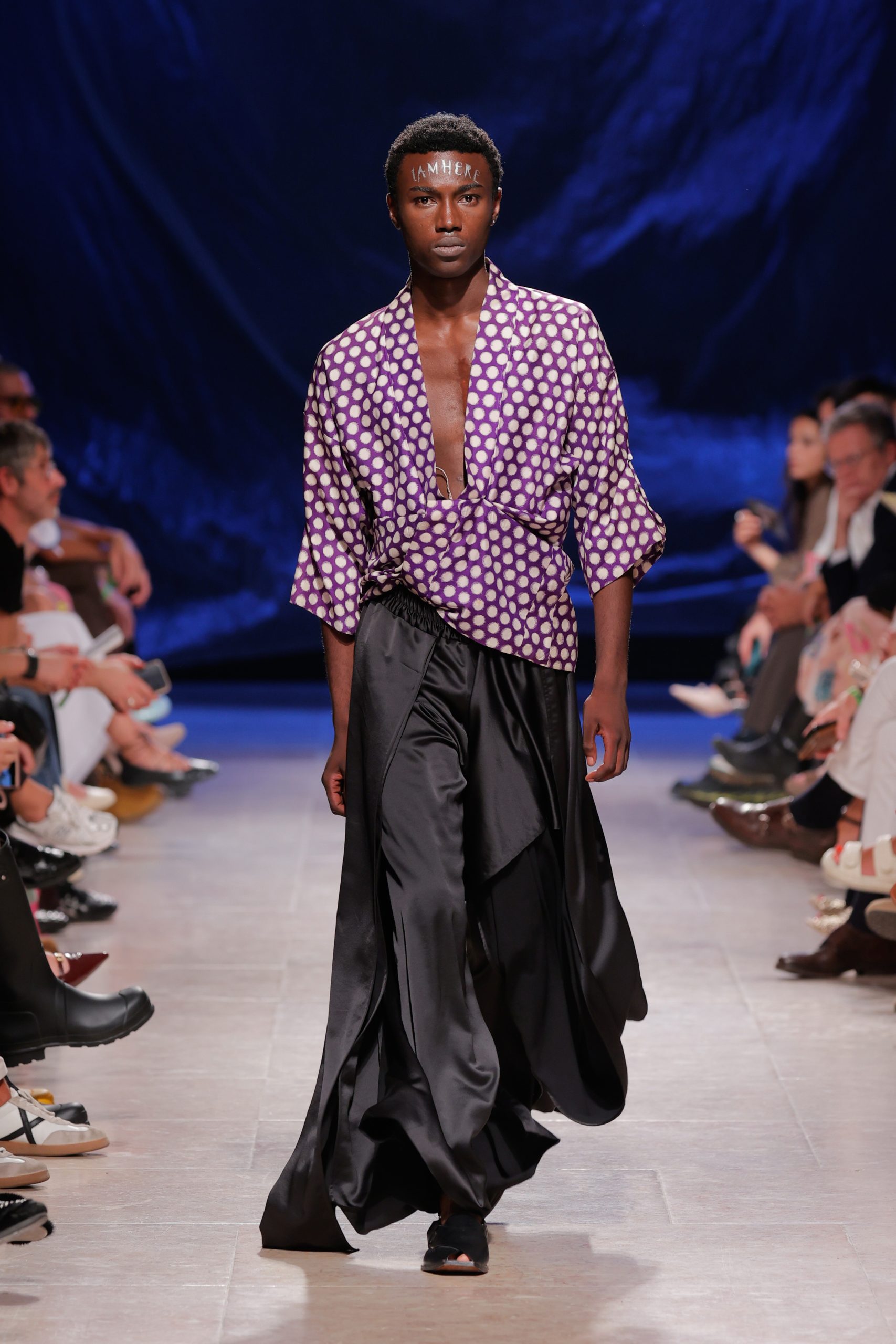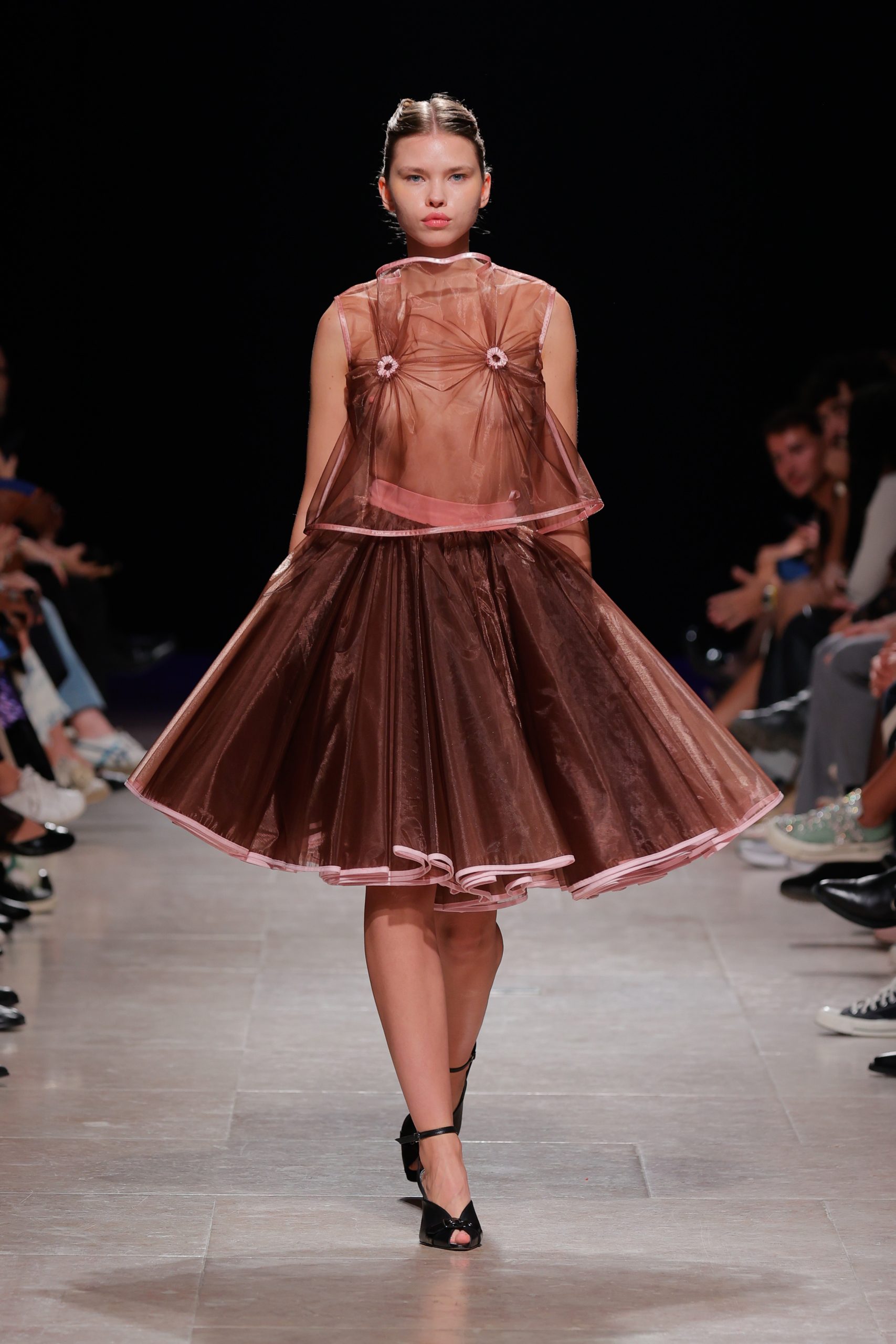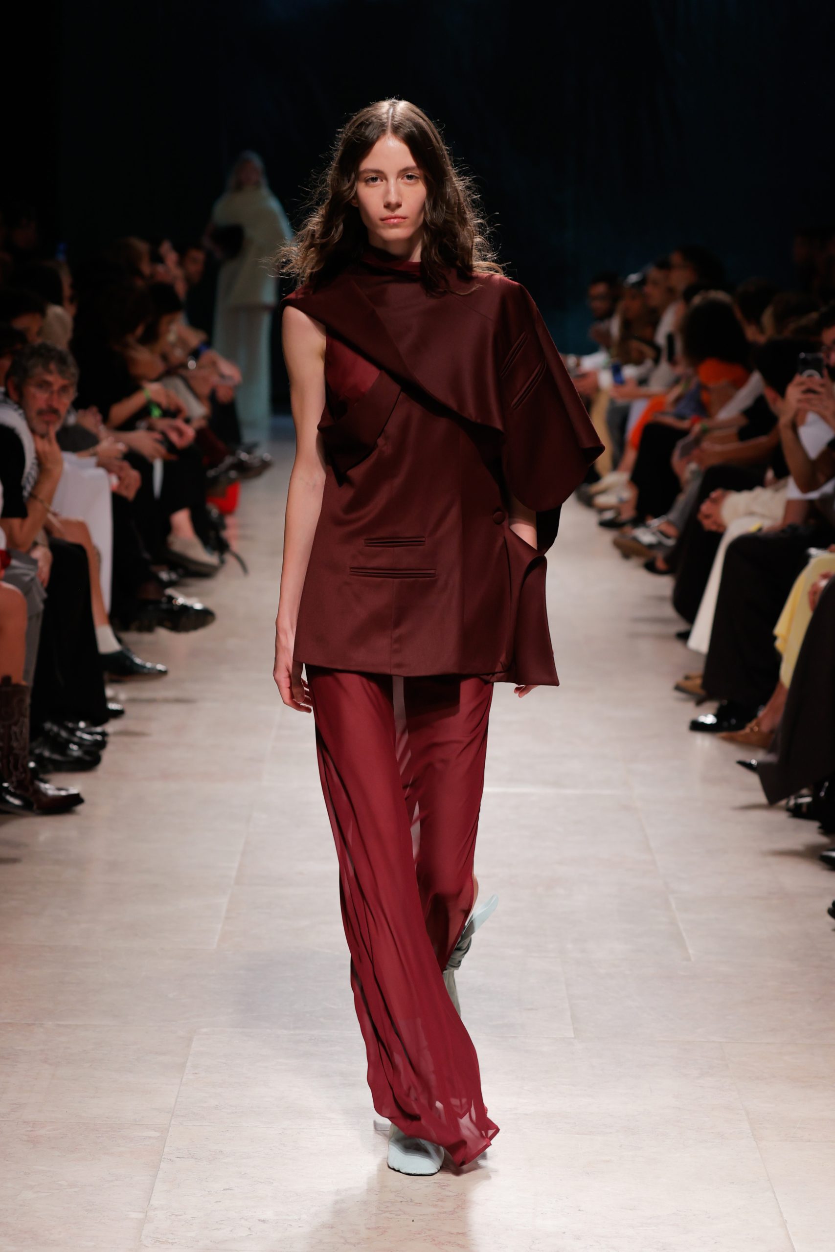 Carlos Gil kept things bright on day four with a showing of dynamic patterns and pops of neon colours, alongside slinky silhouettes and refined hardware. The collection takes inspiration from the rhythm and pulse of the city, incorporating graffiti as a symbol of creative freedom, and influencing the use of bold lines and excess of colour. The contrasts aimed to transform fashion “into a manifesto: free, authentic and perpetually moving”.