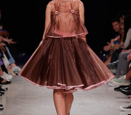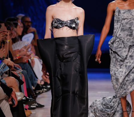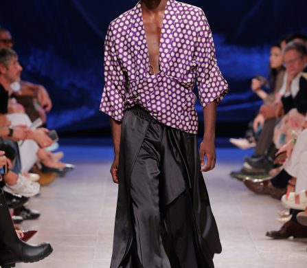 With the same celebratory feeling, Dino Alves was a welcome moment in the week thanks to his spring/summer collection ‘Mais Além’. Building on previous ideas, the collection unfolded into a bold use of colour and design choices, inviting us to dress without convention and express ourselves authentically. Elegant draping was used for fluidity, while also turning familiar silhouettes into more unique proportions. The show closed with models walking out to The Human League’s ‘Don’t You Want Me’, causing an infectious sing-a-long and a spontaneous filter-free moment.