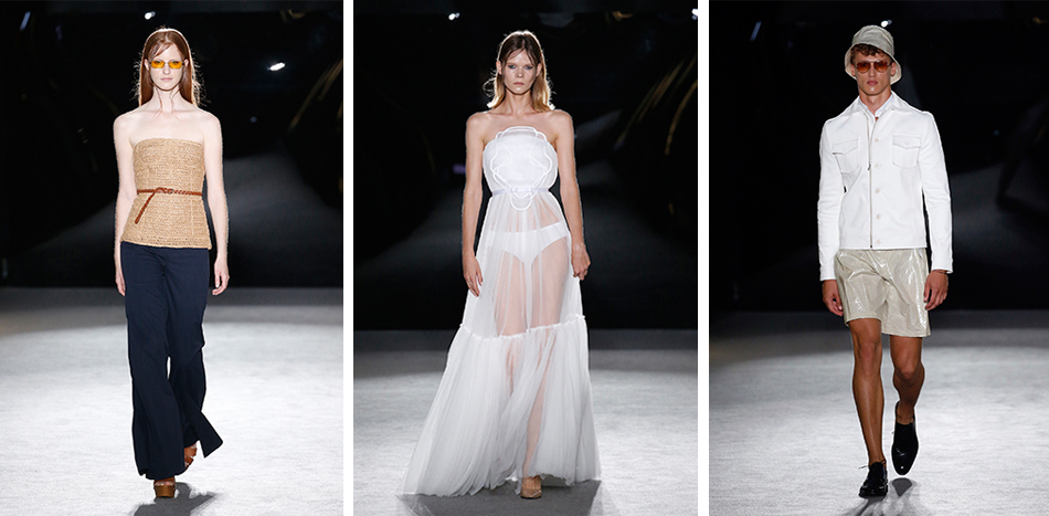 The Government of Catalonia Award for Best Collection went to Antonio Miro, who was also a joint recipient of this prize in January 2017. The luminous paintings of Sorolla provided the starting point for his collection El Mar, which featured pastel colours combined with cotton, rustic poplars, voile and linen in unstructured sheer dresses and draping suits.