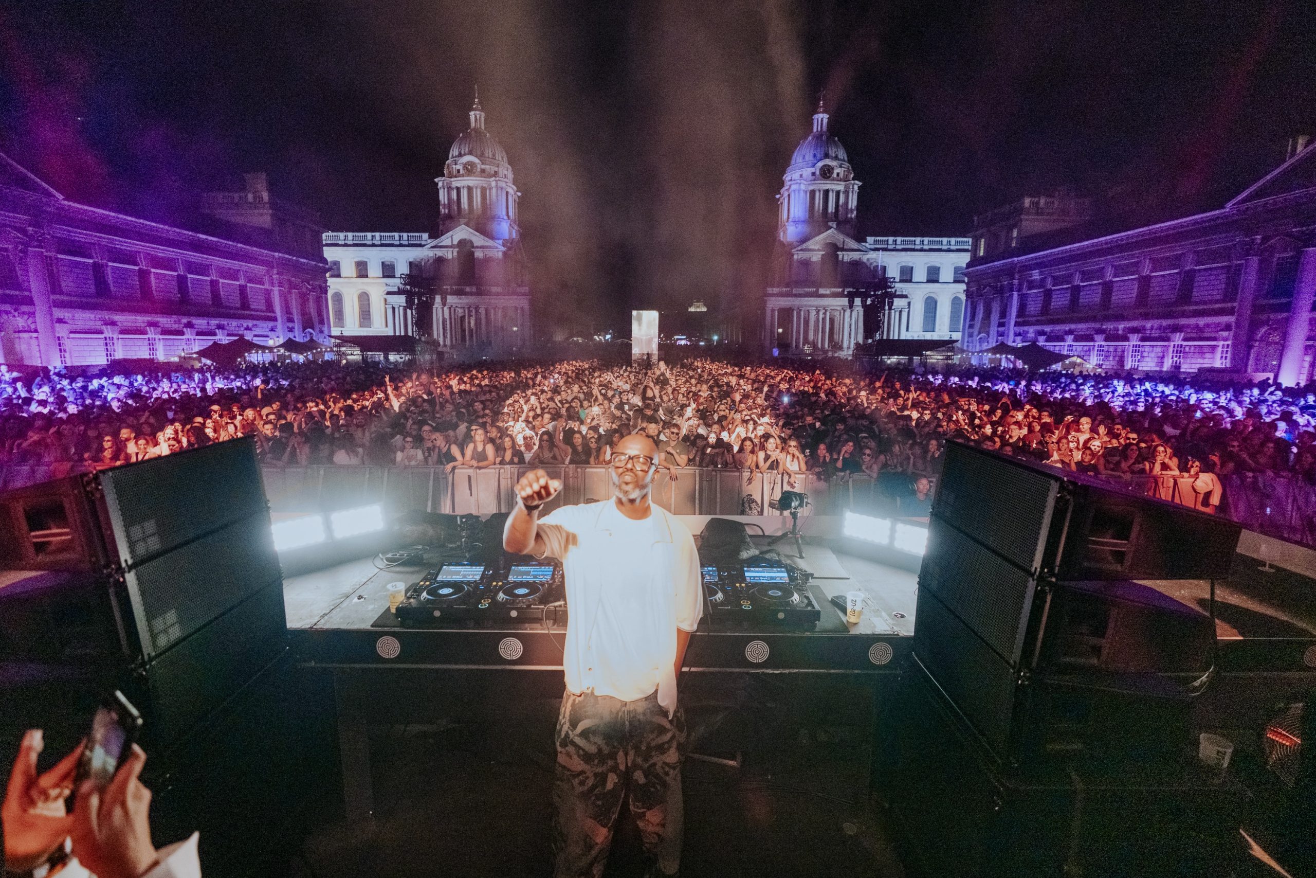 The event welcomed people from every corner of the capital to witness Black Coffee become the first DJ to headline a show at the UNESCO World Heritage Site. Location is increasingly shaping the live electronic music experience and the opening night felt both timely and timeless. Set between past and present, the staging captured the gravity of its surroundings. Behind the decks, a mirrored stage reflected the London skyline, and behind the crowd, the Old Royal Naval College stood in stark contrast. As the sun dipped into a deep blood-orange hue, the river shimmered alongside it, and the music took full control of the space.