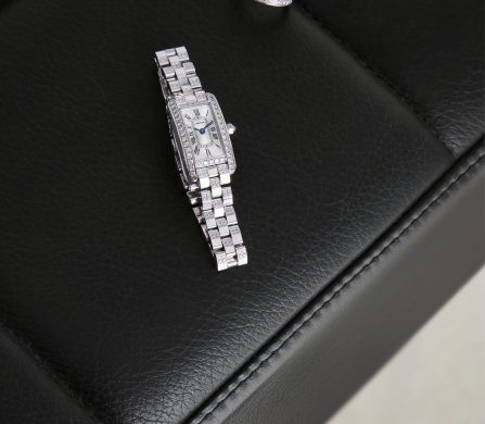 Another iteration, the ‘Doubly Precious’ Baignoire, dials up the drama, featuring two lines of diamonds that split the case and wave across the wrist in parallel brilliance. Paved with 307 diamonds, the creation took over 70 hours of fine jewellery work.