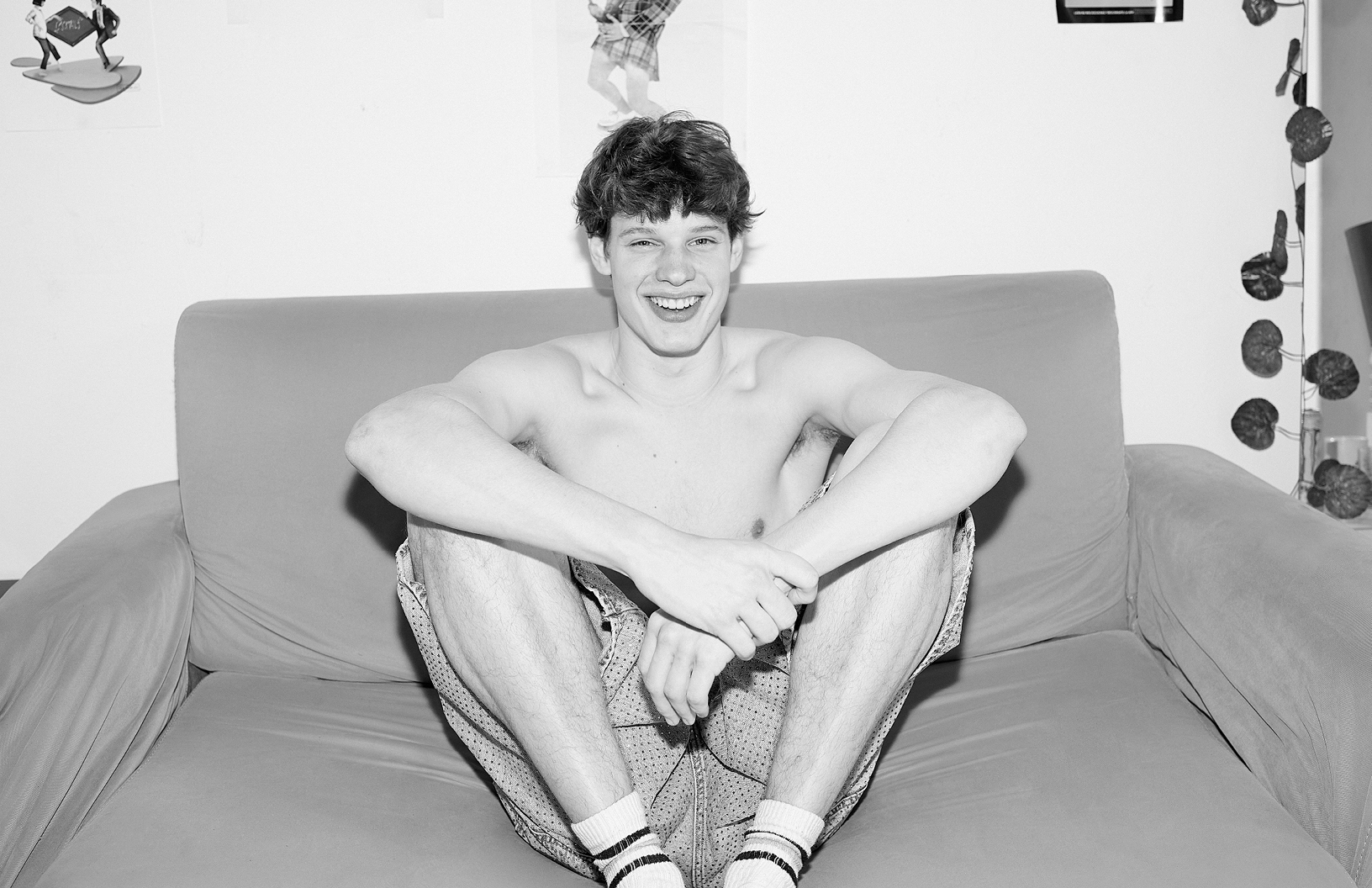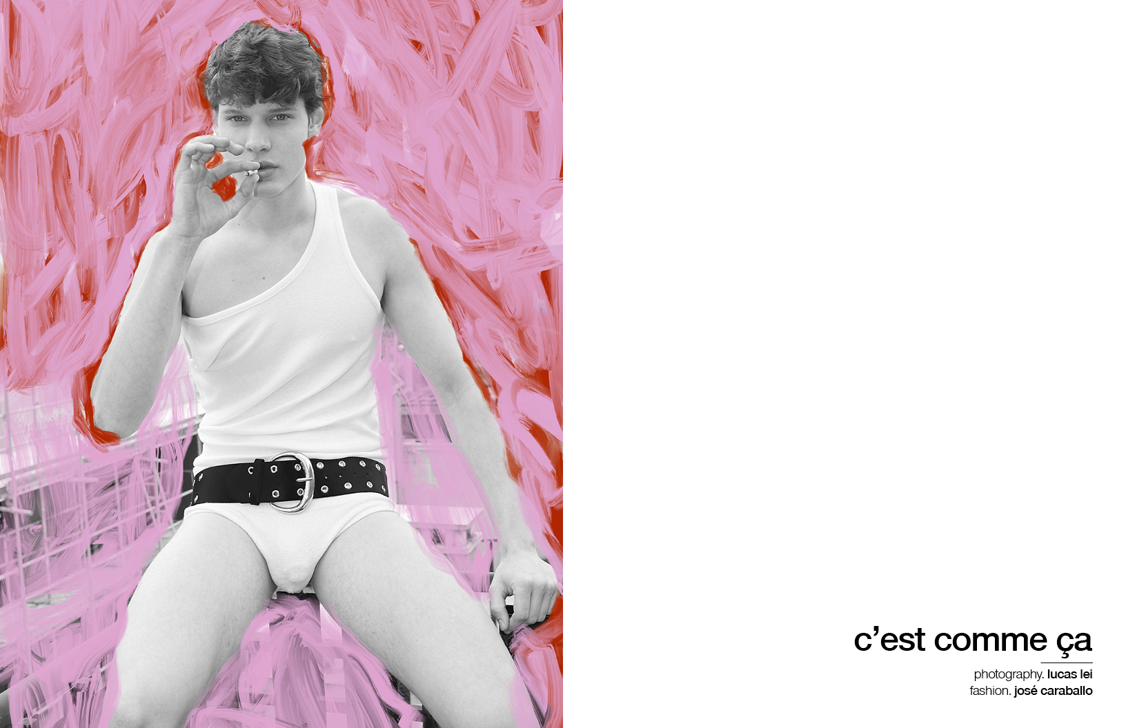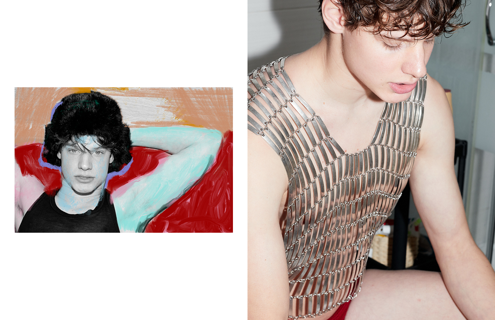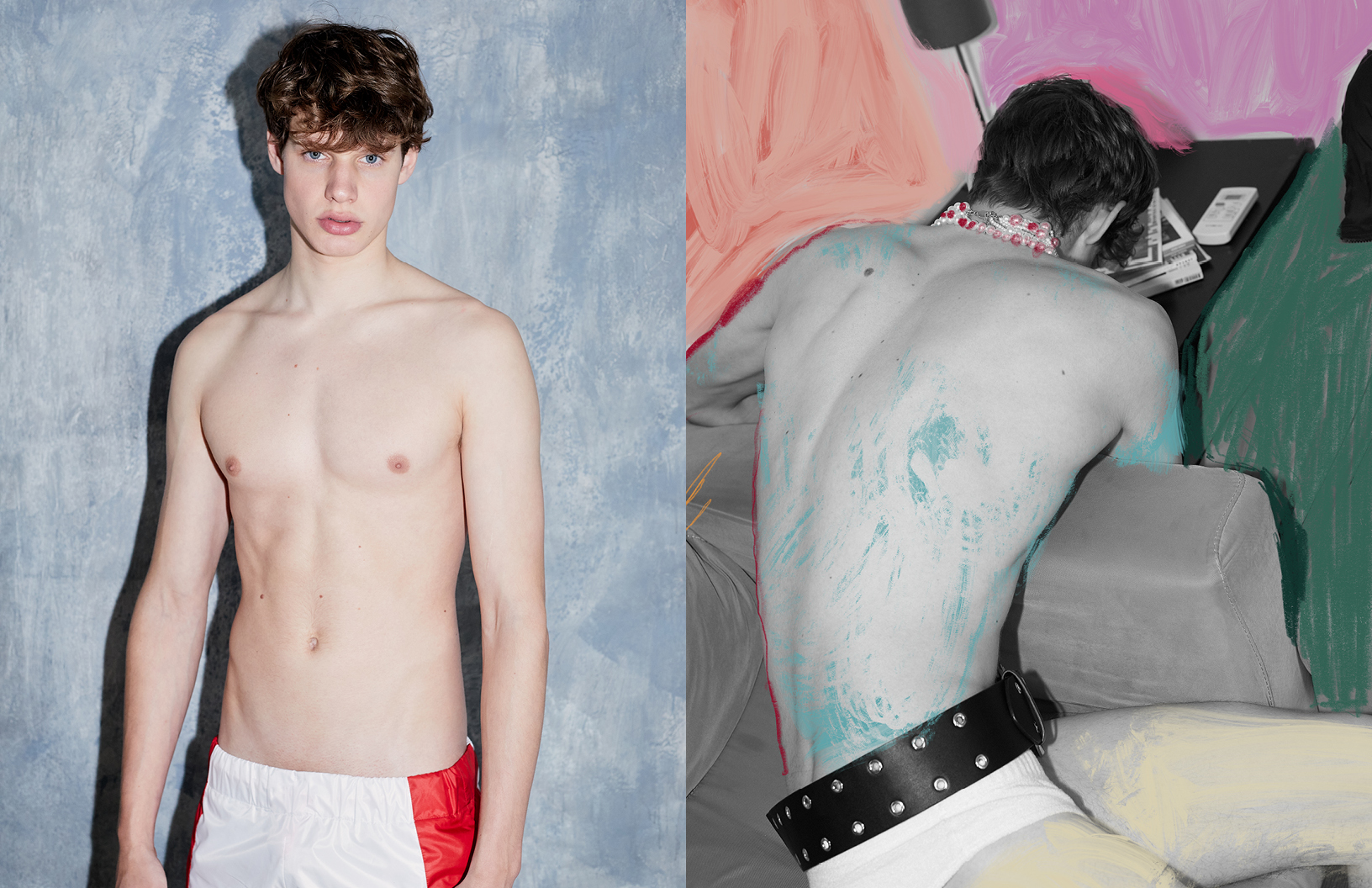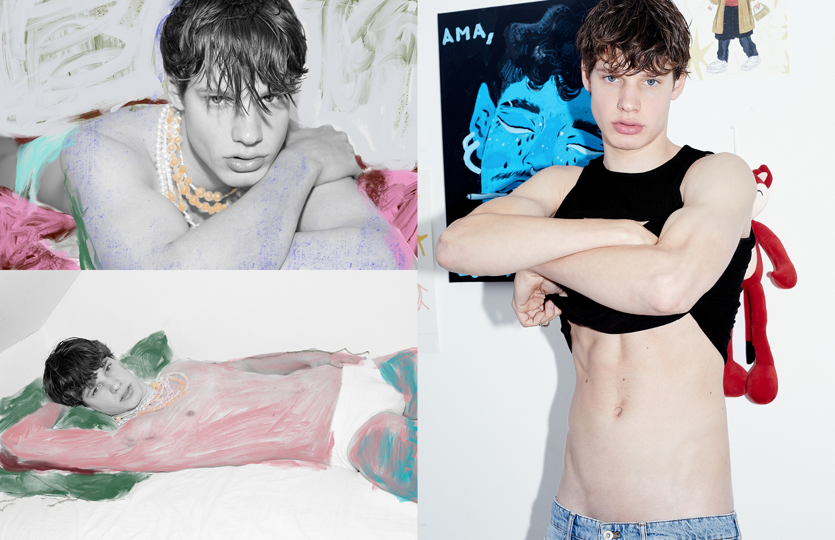 Paint yourself something pretty in this Schön! editorial photographed by Lucas Lei with fashion by José Caraballo who dresses Leo White in looks by ALEXANDRINO, Jacquemus and others, with artwork by Juan Bertoni.