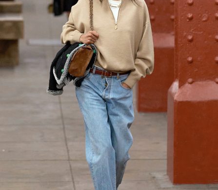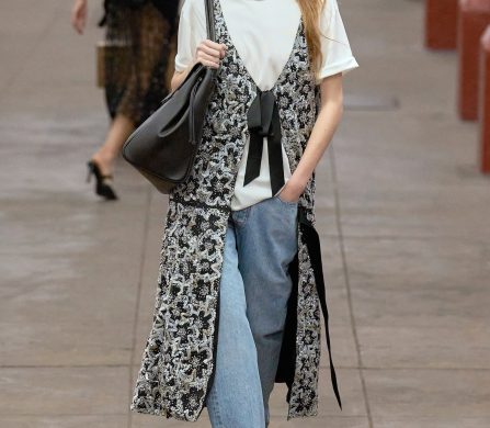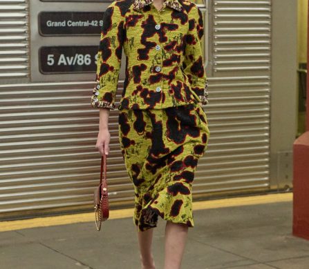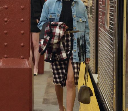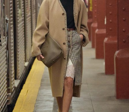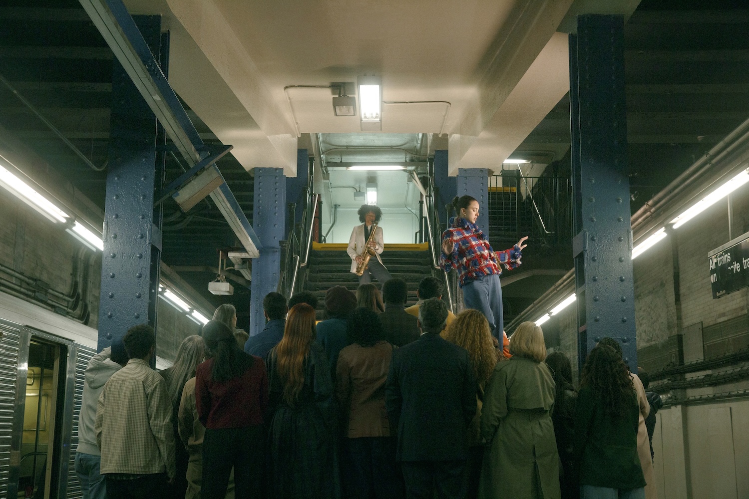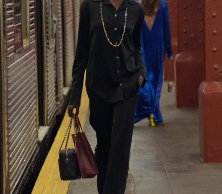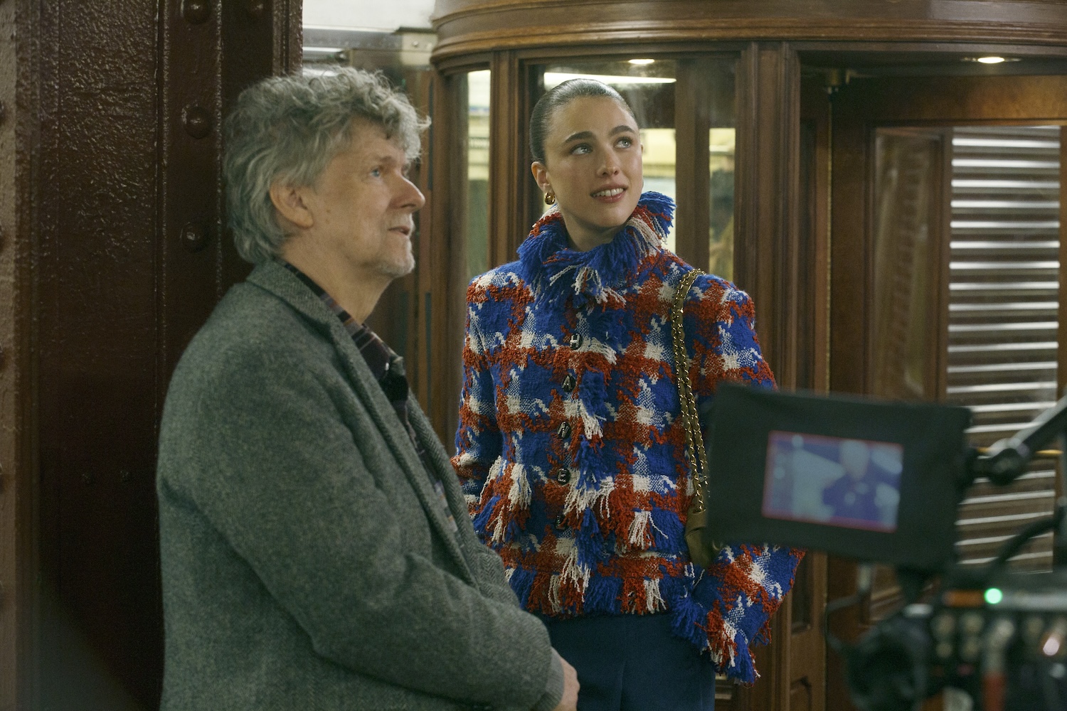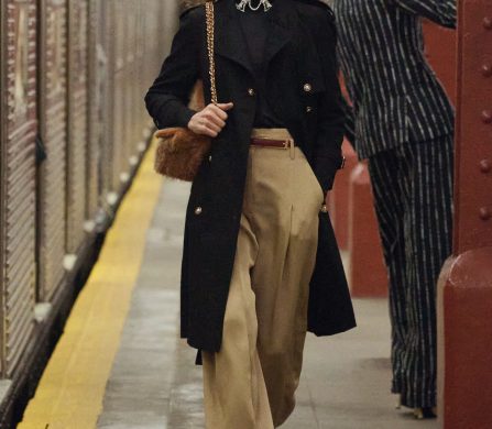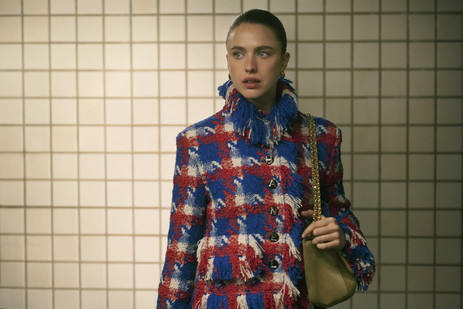 We watch Rocky wake up, realise Qualley is gone, and proceed to sprint through the boroughs in his silky red pyjamas in what can only be described as ‘Olympic-level lover boy’ mode. Qualley, meanwhile, offers a serene counterpoint, slowly navigating the subway in her signature Chanel tweed jacket and loose trousers, stopping only to enjoy a jazz performance.