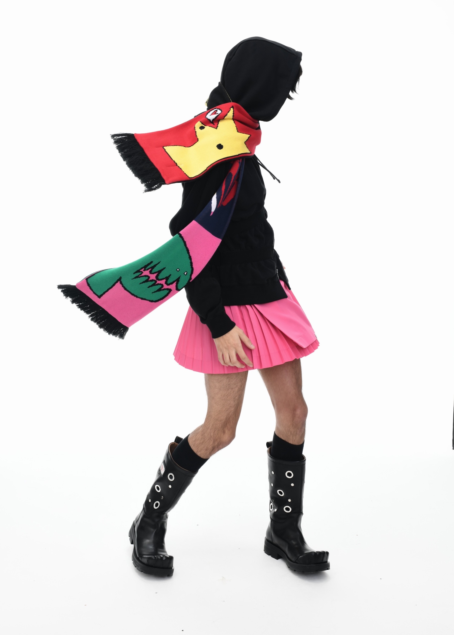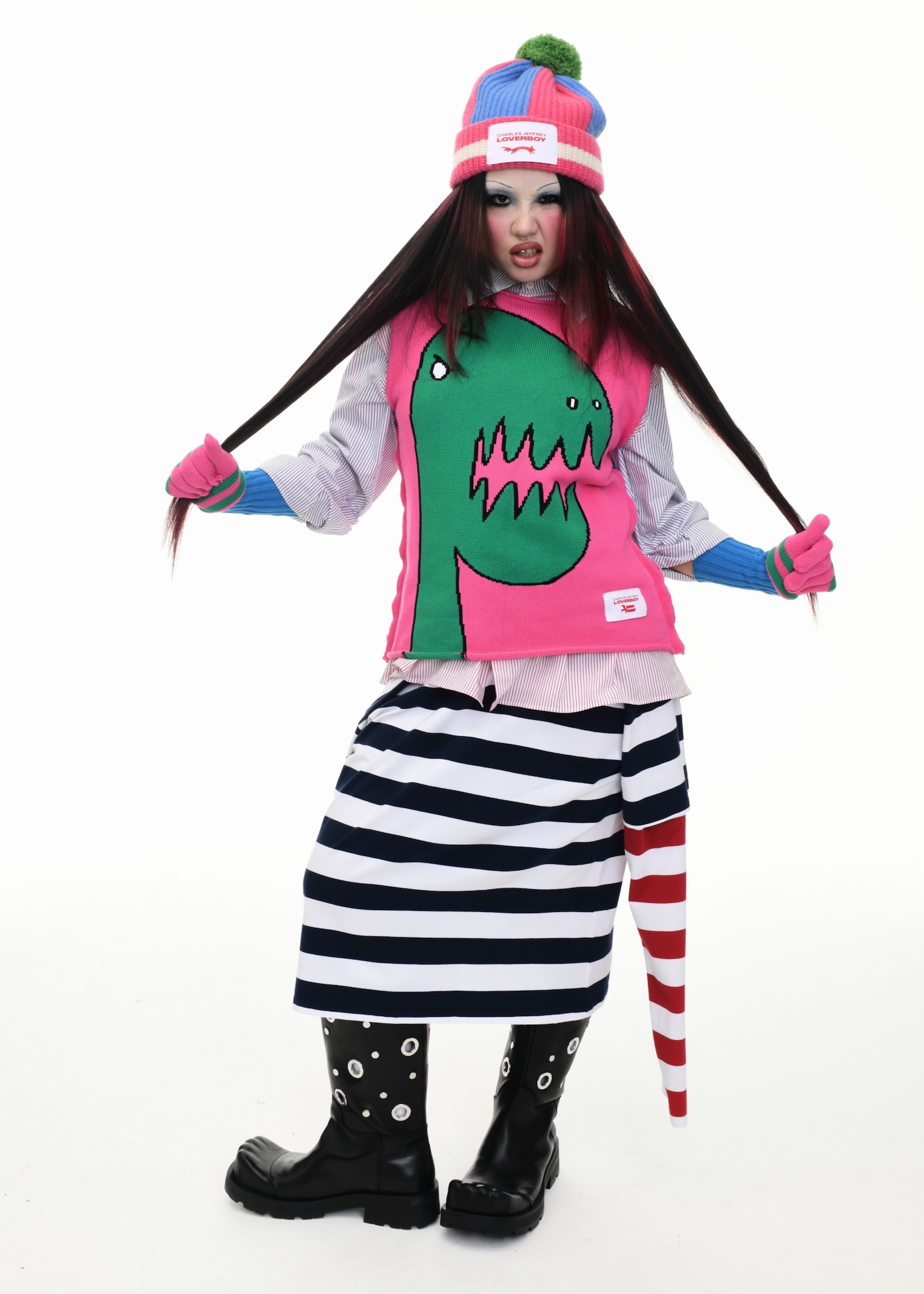Jeffrey’s world-building is, as ever, chaotic and charged. The campaign draws on everything from Weimar cabaret and English punk to the fin-de-siècle Victorian moodboard that haunts much of his work. But AW25 doesn’t feel retro — it feels undoubtedly timely. At a moment when identity is under scrutiny and protest is policed, Jeffrey turns the catwalk into theatre, the model into myth, and the clothes into colourful armour.