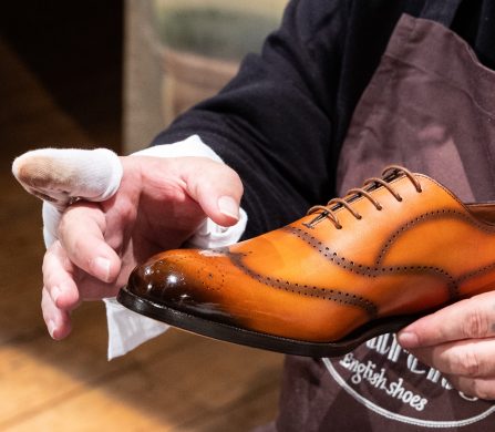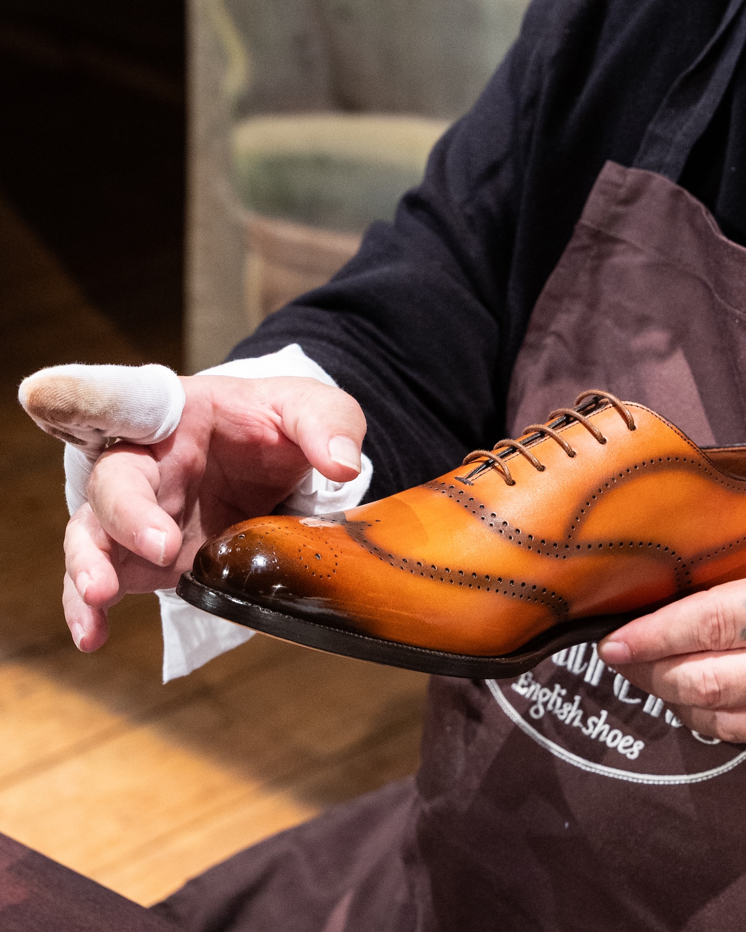 Act III brings in the Crown collection — the most formal of the three, but still infused with subtle character. Church’s leans into rich seasonal tones: deep blue, forest green, burgundy, all dyed into natural white “crust” leather, which develops personality over time. The finish is classic, but never stiff.