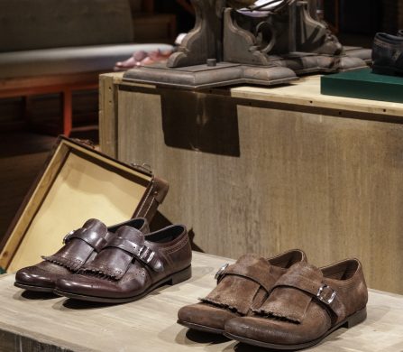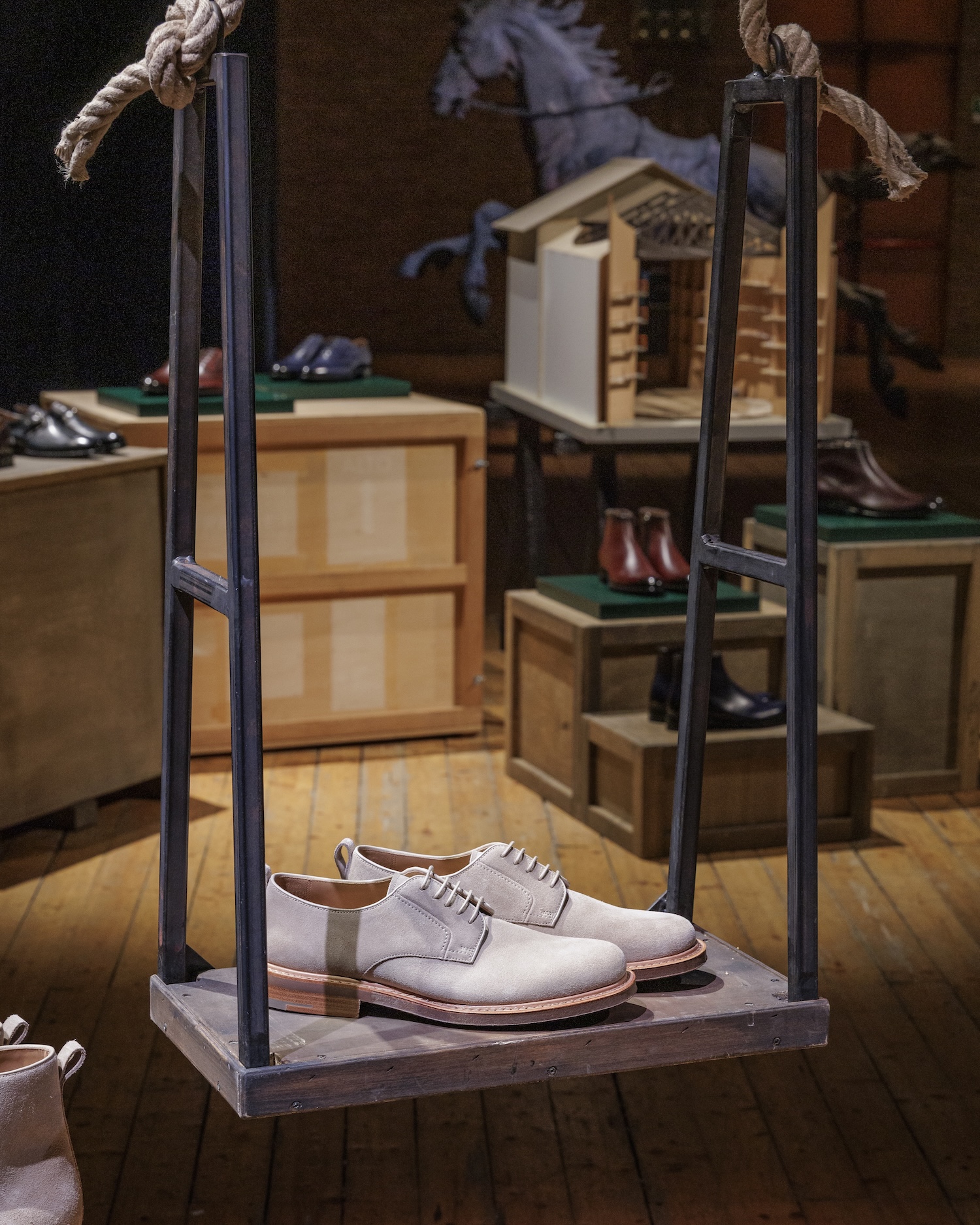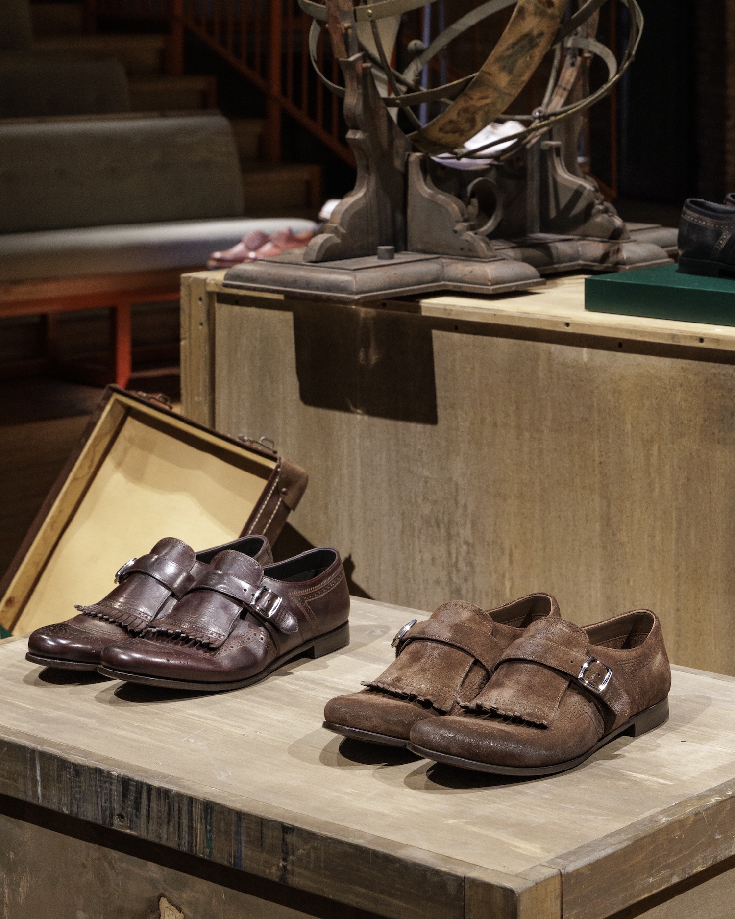 Finally, there’s the Shanghai Essence, a new family of loafers, lace-ups, and ankle boots based on the Shanghai Soft construction. Here, the codes are relaxed even further due to their deconstructed appearance, yet they remain lightweight and very nonchalantly British.