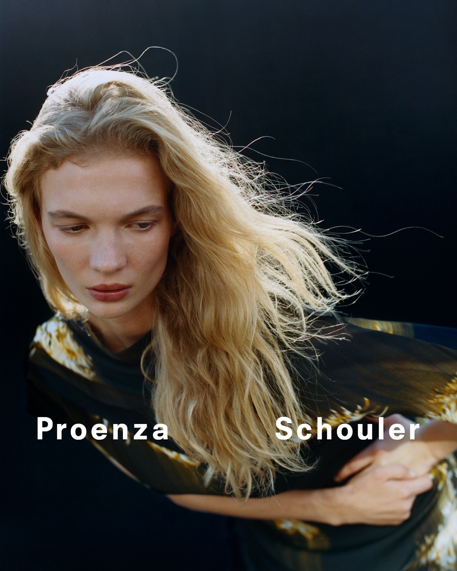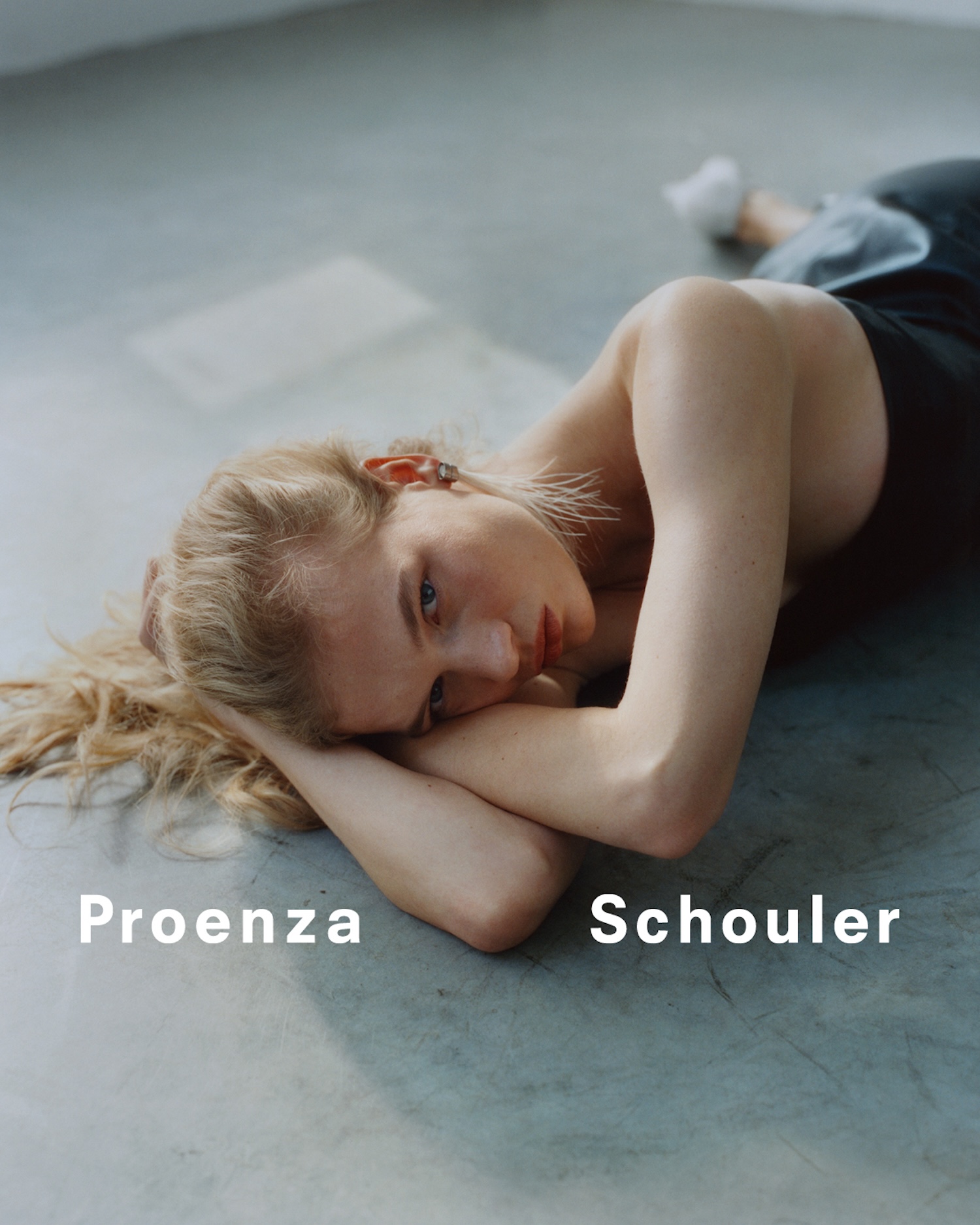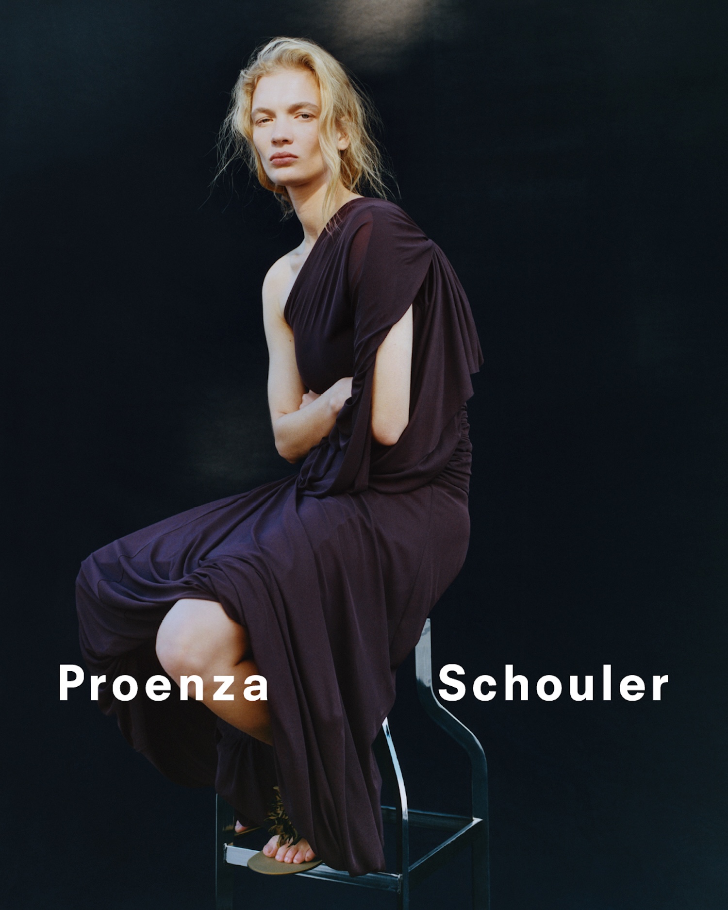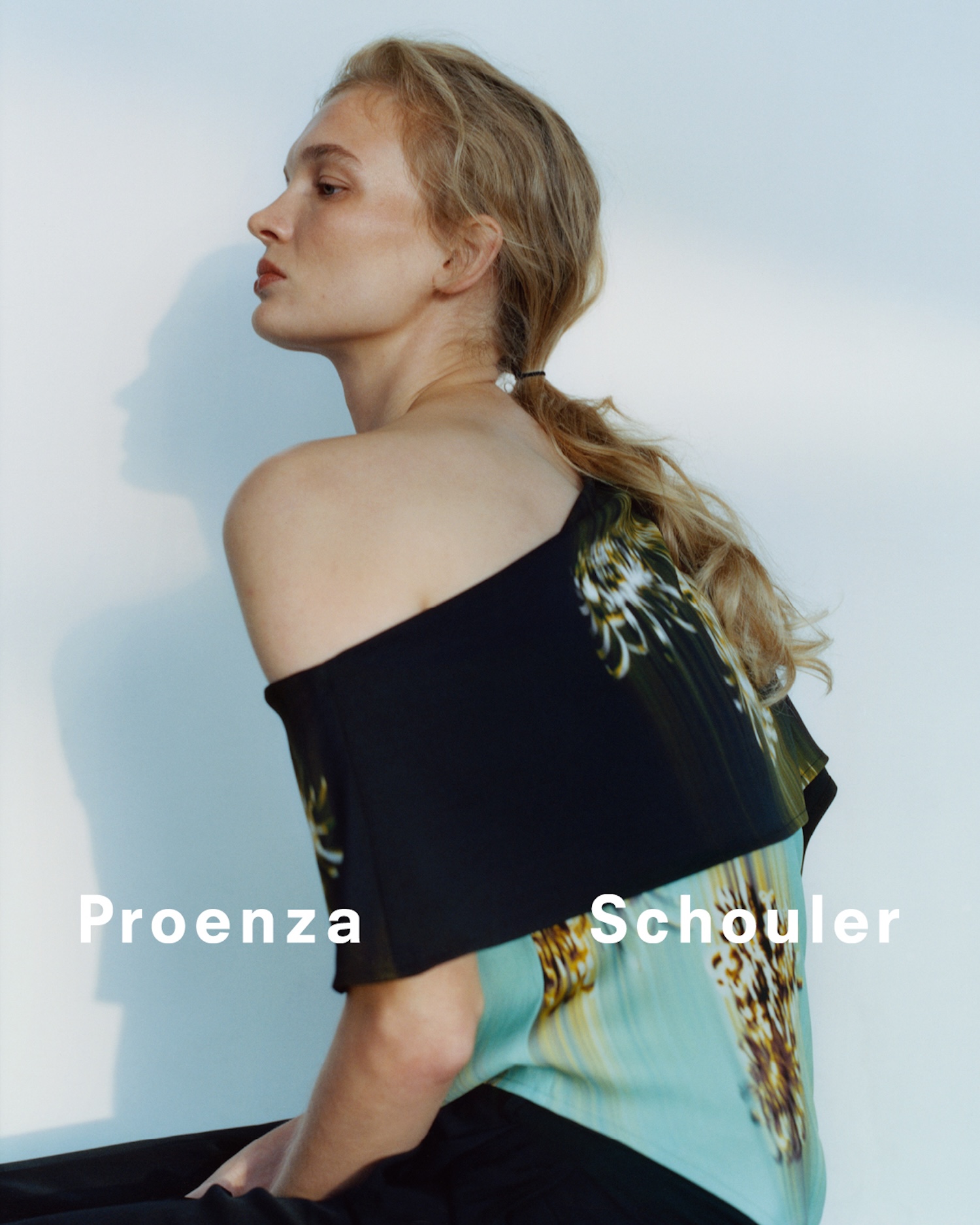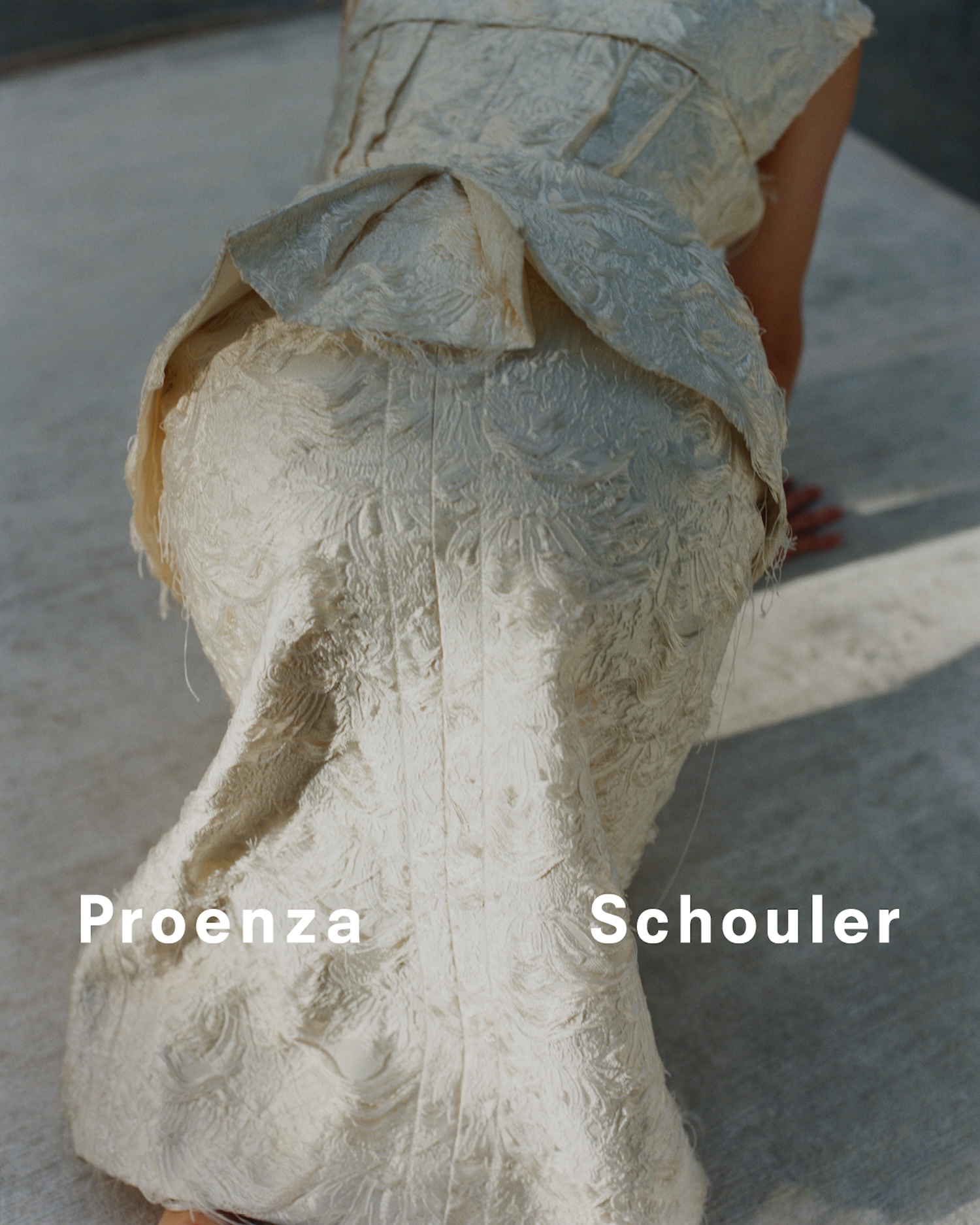 Silhouettes shifted throughout the collection, moving from shapeless and elongated forms to more cropped, fitted proportions. A loose silver satin slip and a baggy plaid jumpsuit allowed for ease and freedom of movement, contrasting with sharper tailoring elsewhere. A boxy double-breasted blazer was paired with low-rise balloon trousers, revealing a brief sliver of the model’s torso. Fitted blazers featured experimental cuts and were often layered with ruffles, giving familiar tailoring an unfamiliar, almost distorted appearance.