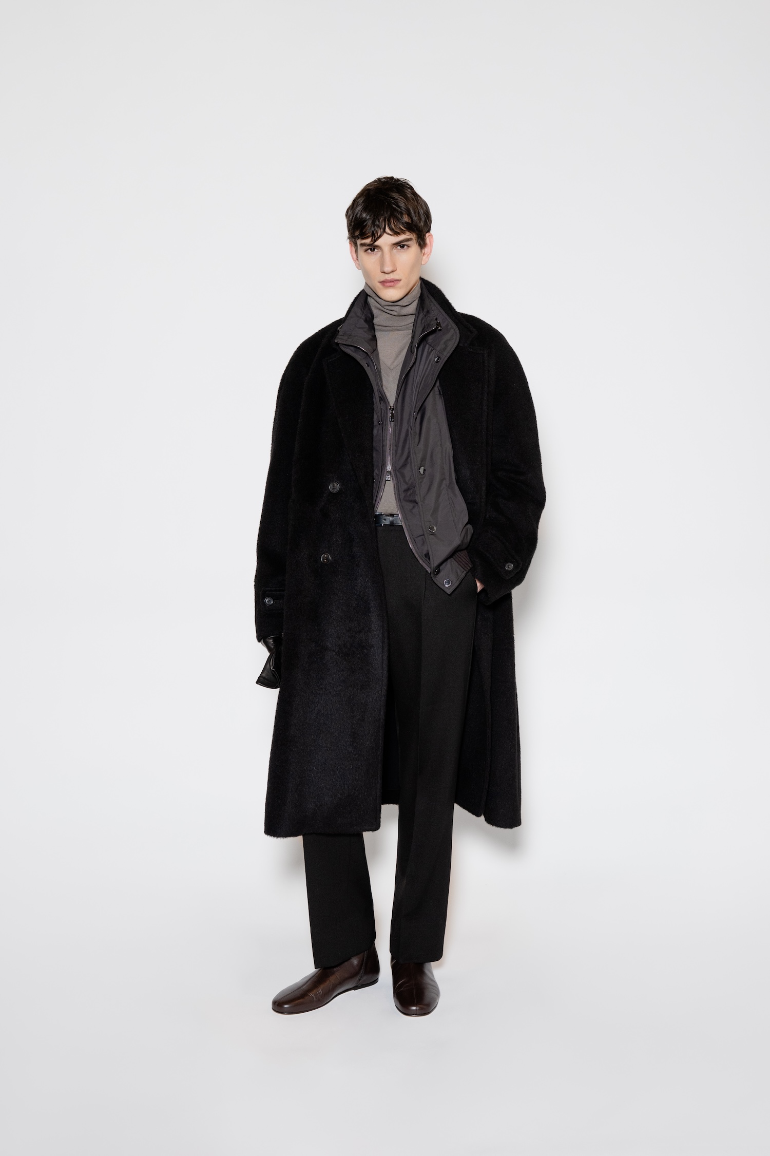 When the clothes finally emerged, they carried that same sense of unforced presence. The silhouette for the season has been allowed to breathe; shapes are intentionally ample, leaning into a 1950s-inflected aesthetic that feels sturdy yet liberated. We saw double-breasted coats with generous raglan shoulders paired with trousers that boasted deep, triple-pleat constructions and high waists.