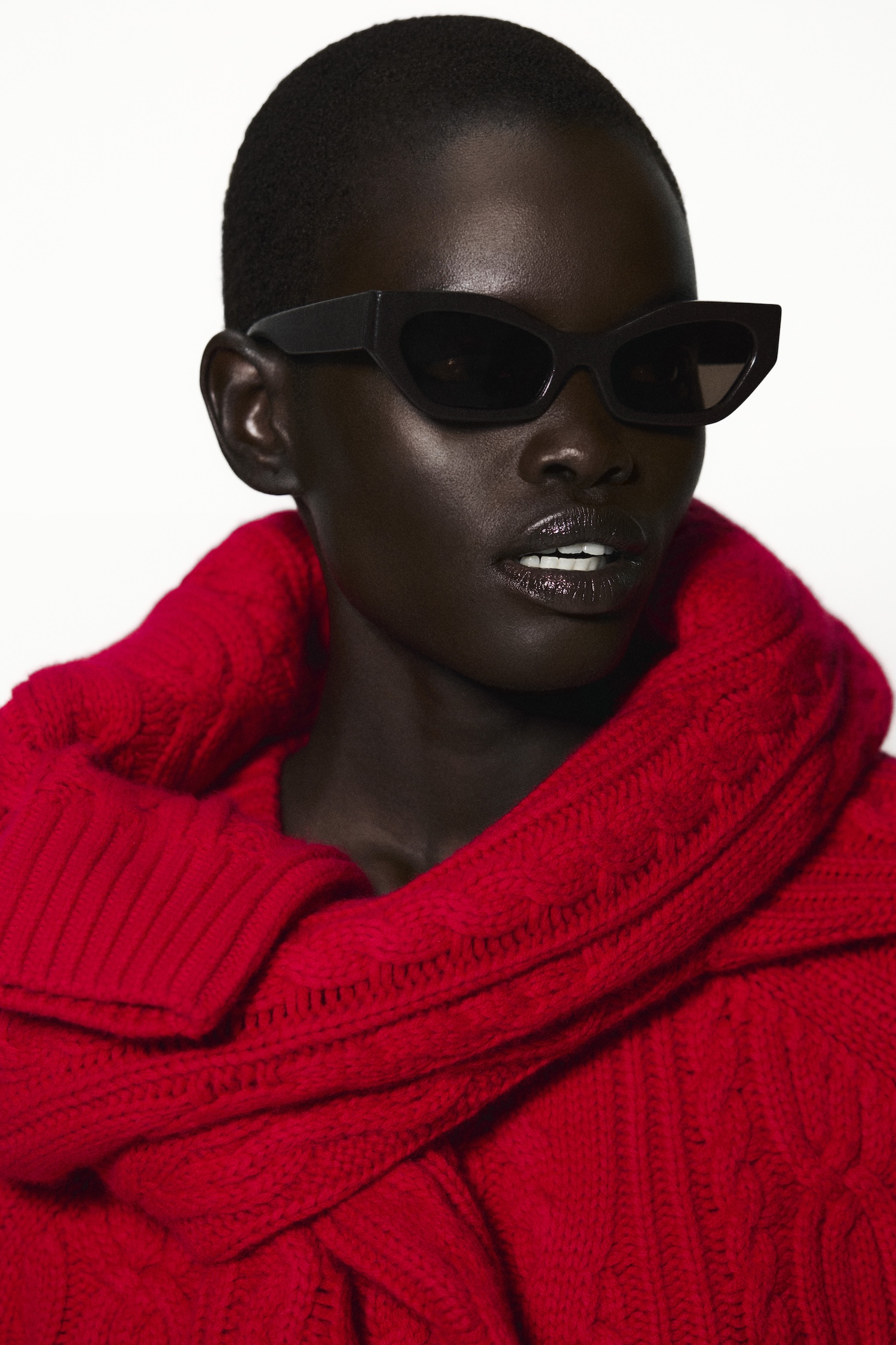 Where tradition might demand sequins, COS champions texture and contrast. The feel of the fabric is everything and it finds a striking new expression through the accessories. Shearling appears in matching hats, mittens and a sculptural bag, introducing immediate contrast and tactile appeal. This focus on fabrication is balanced by the structured forms of croc-effect leather seen in handbags and footwear.
