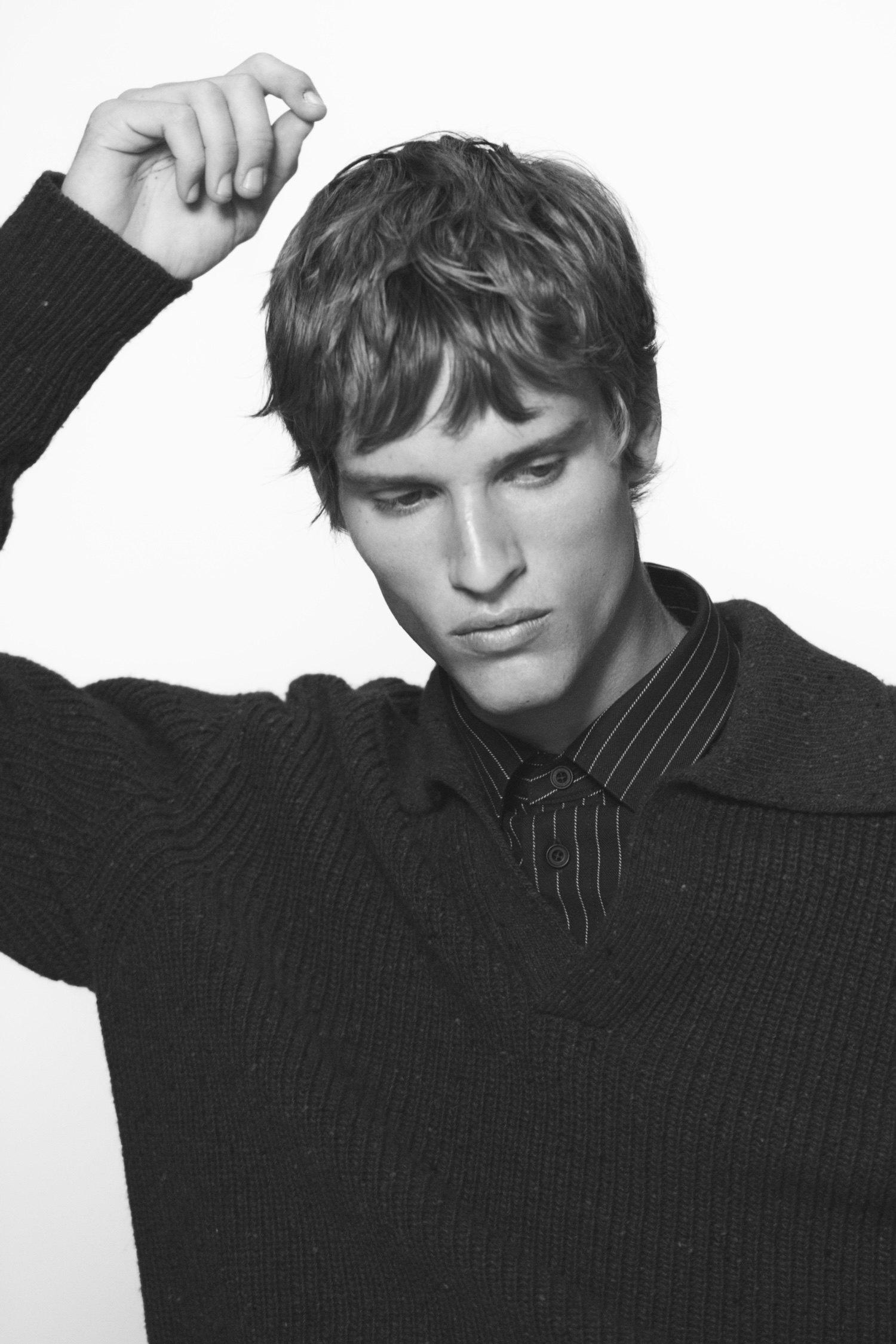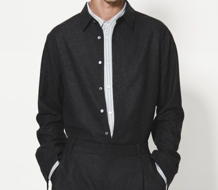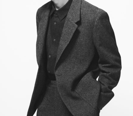 The collection establishes its sophisticated foundation through impeccable tailoring, particularly evident in the menswear. The traditional suit is reimagined as a modern uniform built around texture, with refined, dark charcoal and grey mélanges taking centre stage. The focus is on layered dressing that seamlessly combines function and refinement, with woven shirts appearing beneath Donegal-knit polos and heritage tailoring.