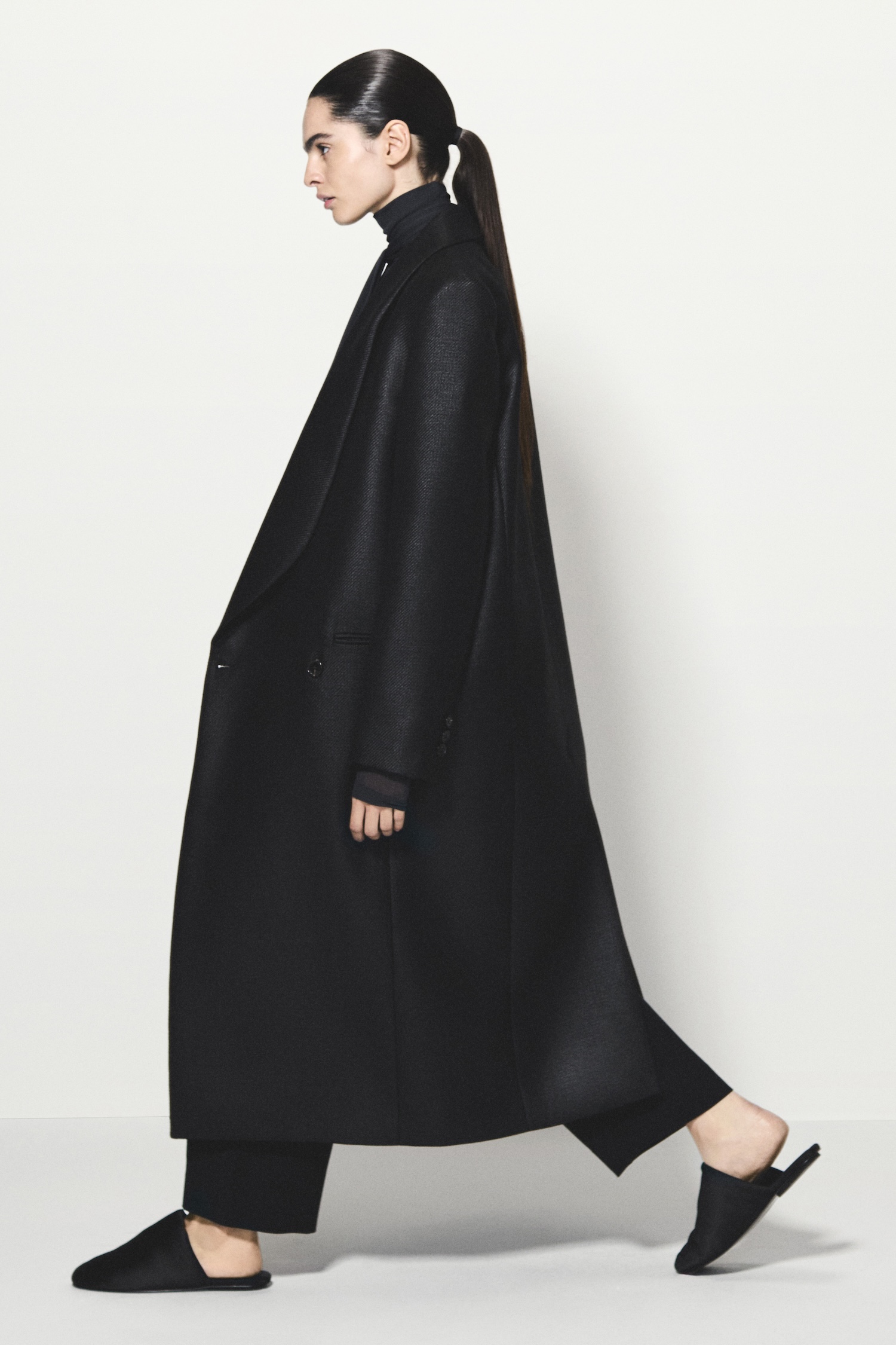 For the latter, COS offers an elevated take on the timeless Mary Jane shoe. Rendered in polished black leather with a pointed toe and a bold block heel, this classic court receives a modern, sharp edge, confirming the brand’s commitment to clean, strong lines from head to toe.