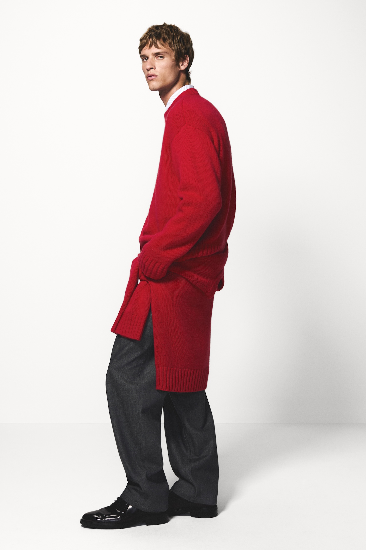 For womenswear, strong shoulders and precise cuts recall the bold volumes of the 1980s, expressed elegantly in pieces like a sleek tuxedo dress and a striking tailored red suit. At the other end of the spectrum, the faux-fur shearling coat offers warmth in a sumptuous form that feels utterly enveloping.