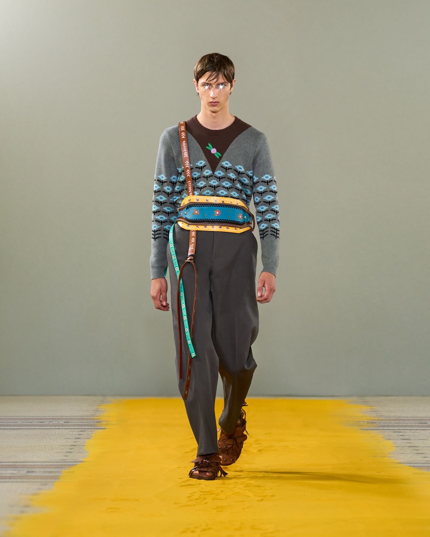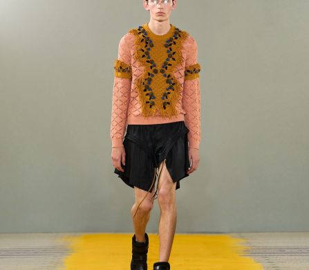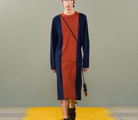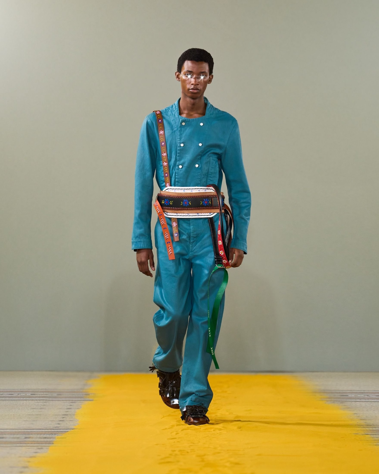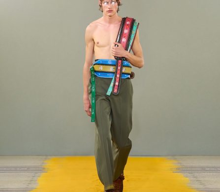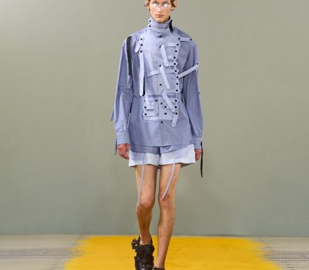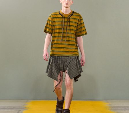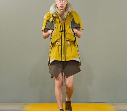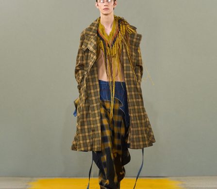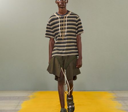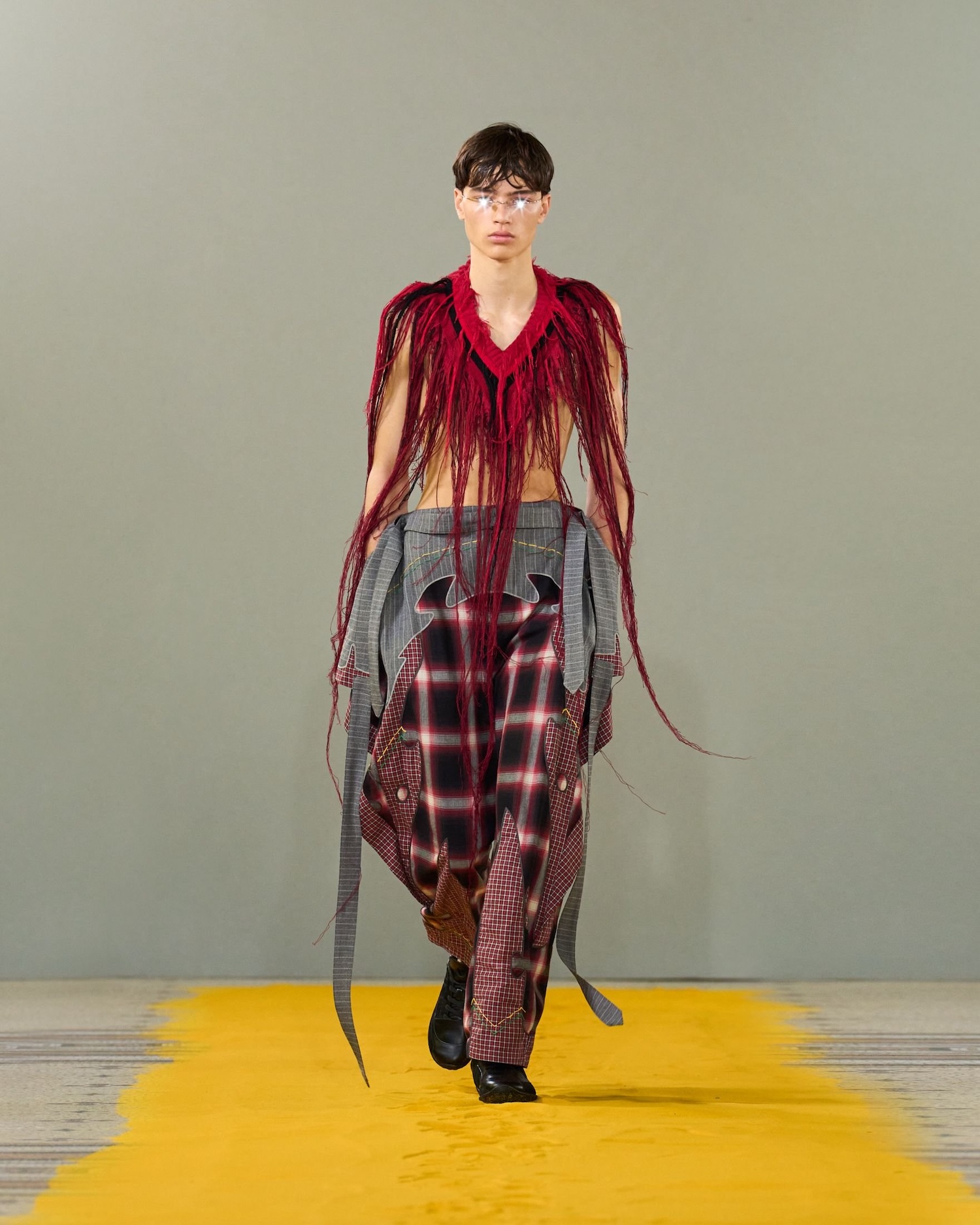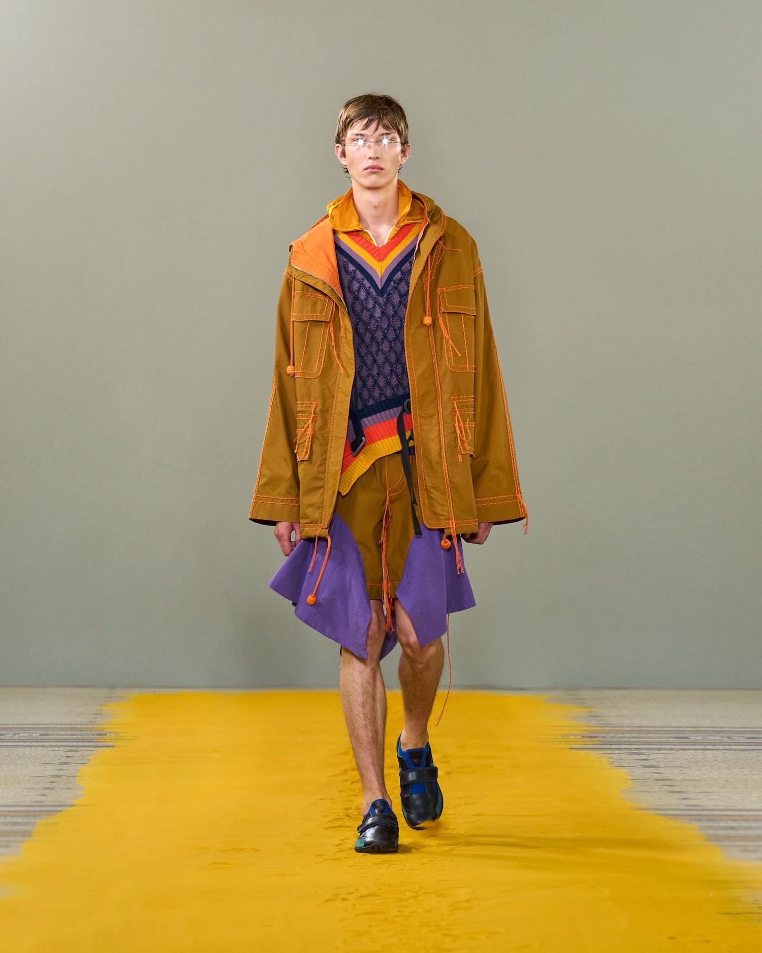 Craig Green’s return to Paris for SS26 felt like flipping a cherished vinyl record to the B-side again and again: familiar melodies reshaped into something intriguingly new. “Like sand gathered in pockets and hems, outfits remember things,” wrote Green in the show notes, and that was visibly evident from the start. The runway was dusted with fine, raw yellow sand (the type you see in an hourglass), evoking a sense of memory and atmosphere. After all, reflection and transformation were the mood board for the collection.