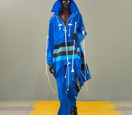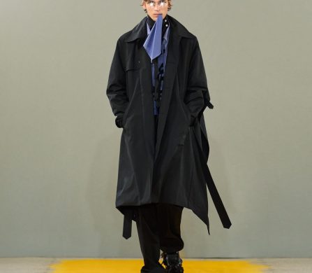 One of the most striking details was the models’ eyewear: tiny LED lights stretched across their faces, casting a faint glow that pierced the muted palette. Green explained these narrow beams symbolised “wide eyes drawing fresh light, revealing new shapes,” both literally and metaphorically illuminating the collection.