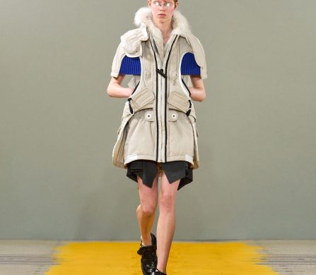 The garments carried a sense of familiarity tinged with the uncanny, as if a beloved tune had been played in reverse. Repeated collars, reimagined seams, and sausage-shaped drawcords dangled playfully, while 3D floral knitwear seemed to blossom spontaneously overnight.