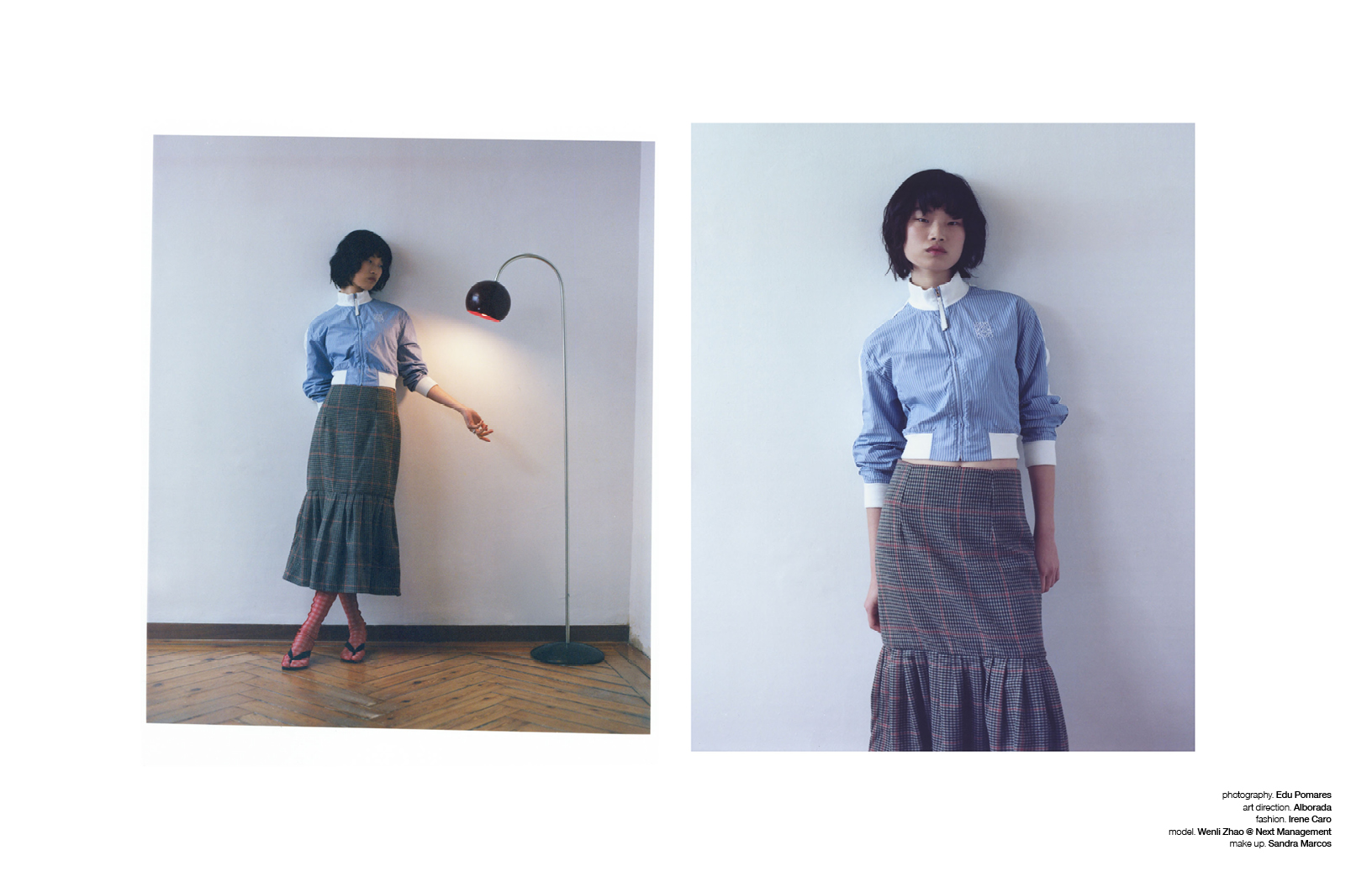 Peer through model Wenli Zhao‘s defiant gaze in this Schön! editorial lensed by Edu Pomares with art direction by Alborada. Irene Caro dresses Zhao in looks by Acné Studios, Carrieri Studio, Piccola and others, with make up by Sandra Marcos.