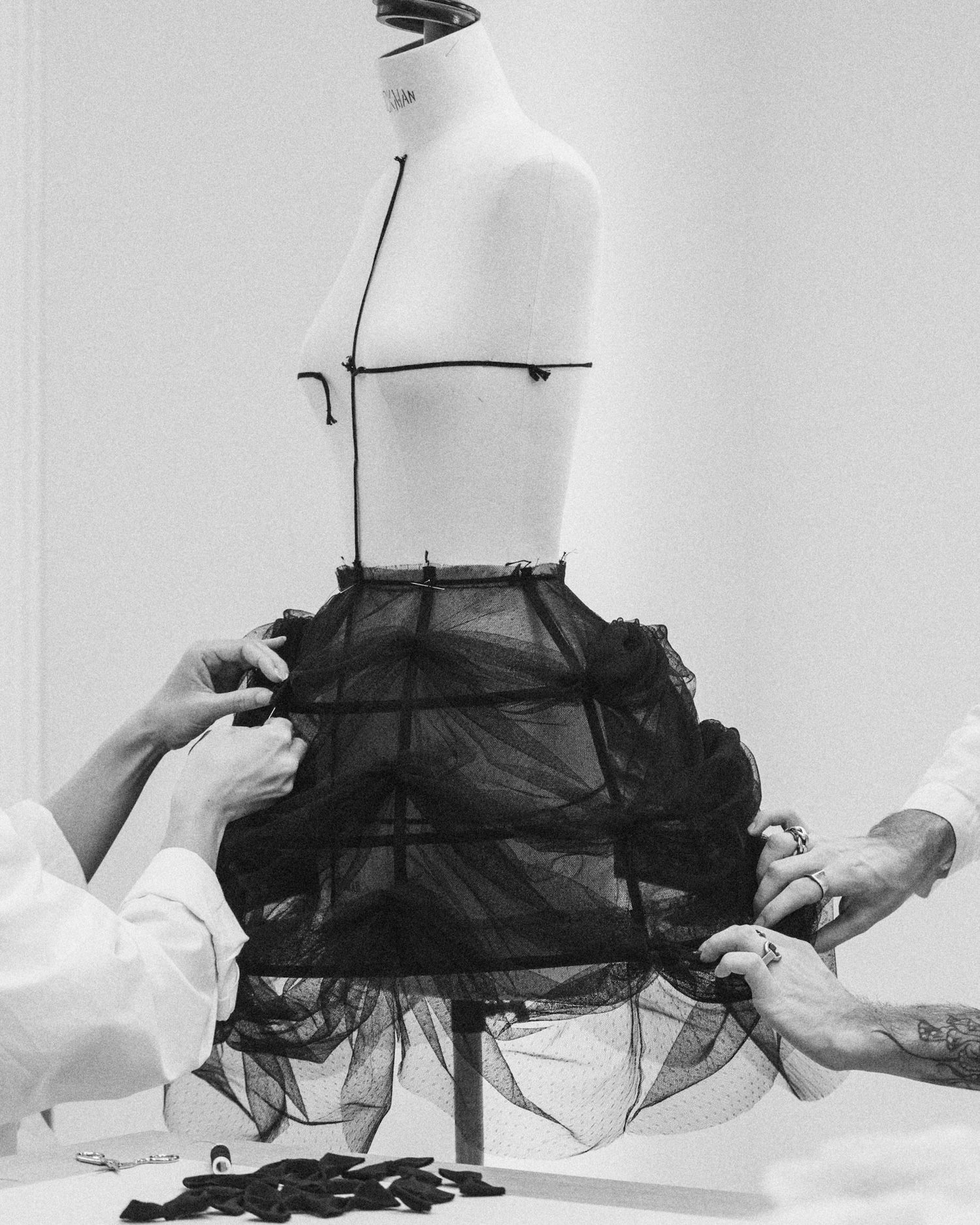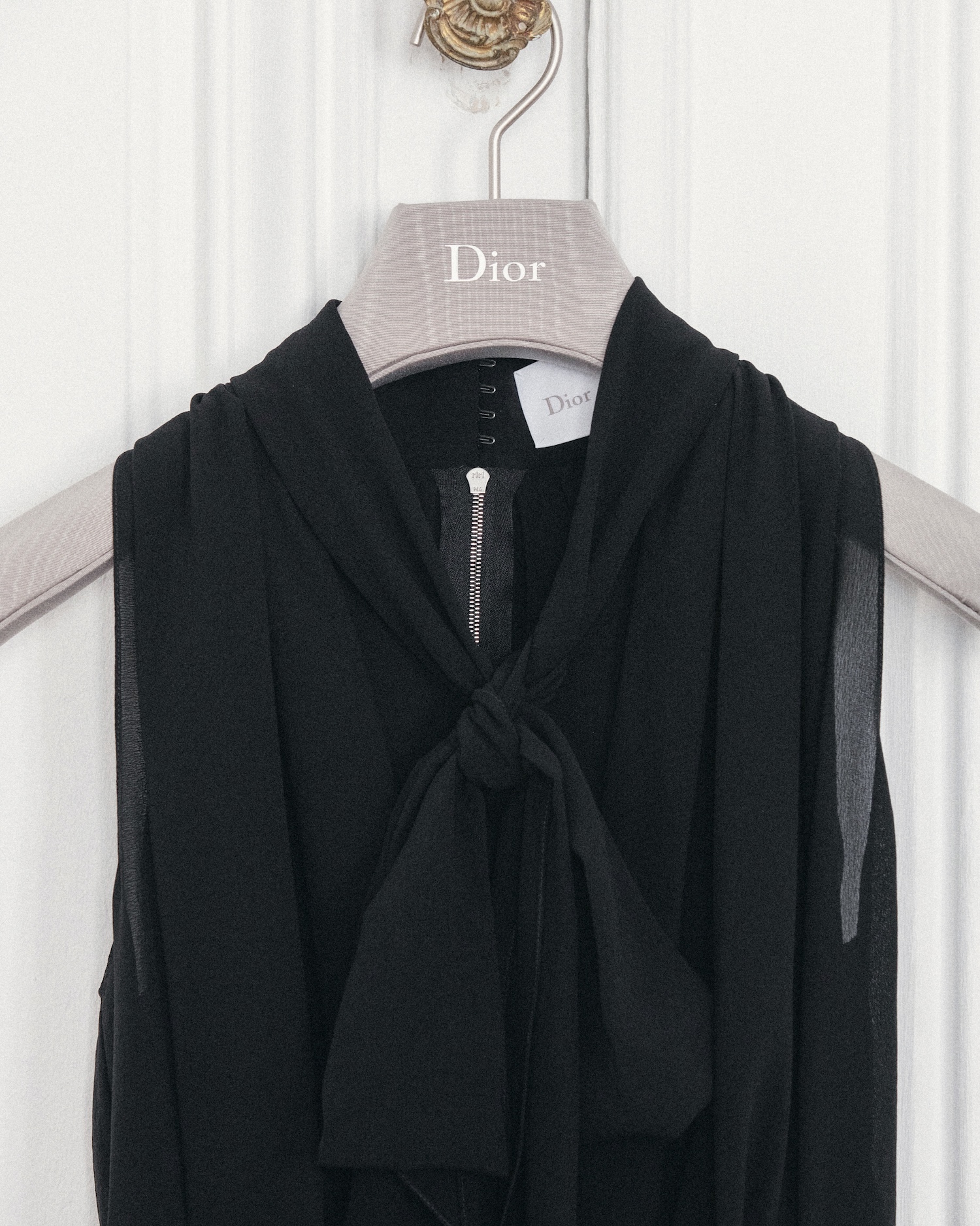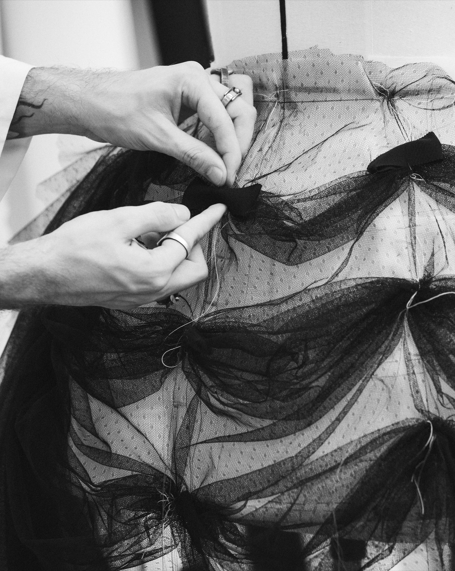 For the first night, her sixth look was a custom Dior black georgette top paired with a crinoline skirt built from plumetis tulle and tied with grosgrain bows. It took a whopping 150 hours in the atelier to complete, but the result couldn’t have been more worth it.
