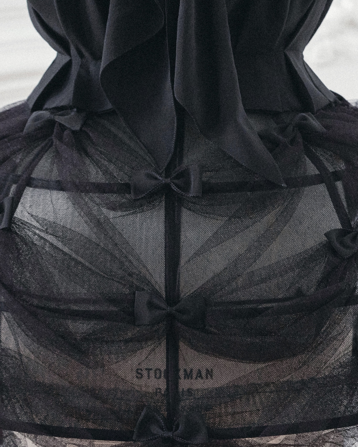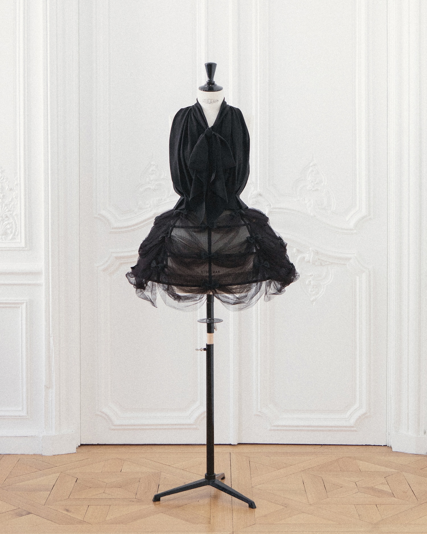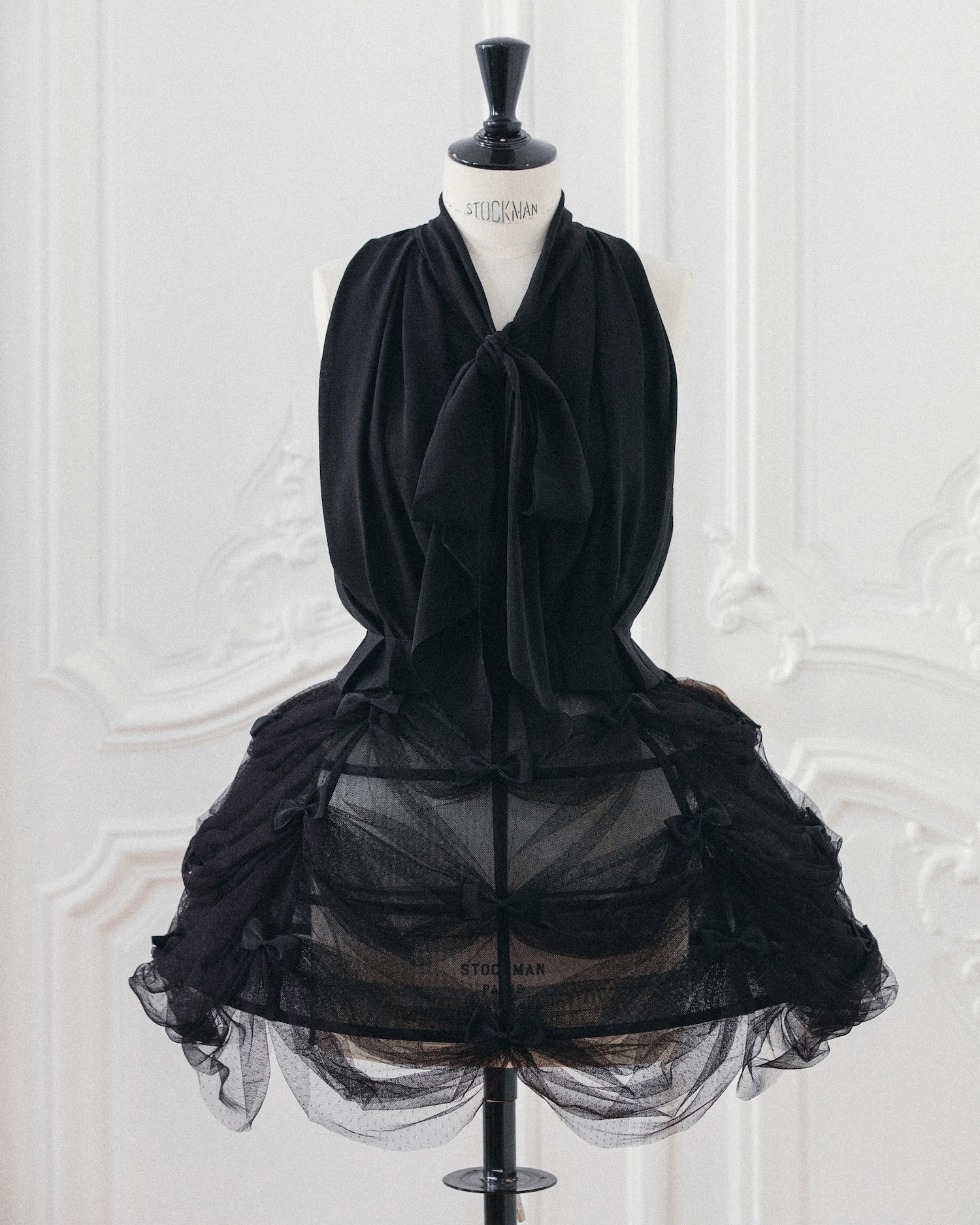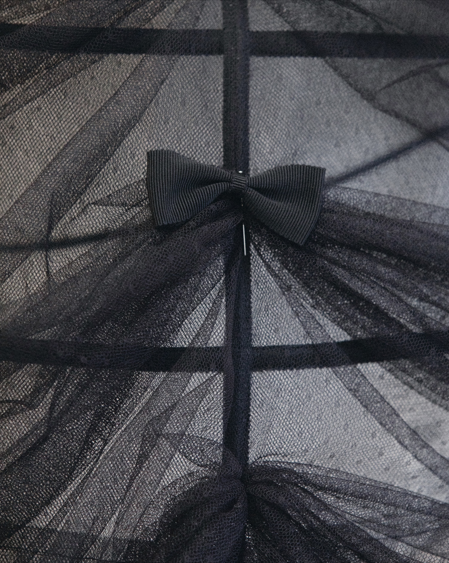The outfit read like a moody fairytale, a sort of gothic-elegant mash-up of Marie Antoinette gone dark and “Human Dior” vibes, with a tulle silhouette that floated yet anchored by those bows. Every fold and fade of fabric was choreographed for the camera and the arena.
