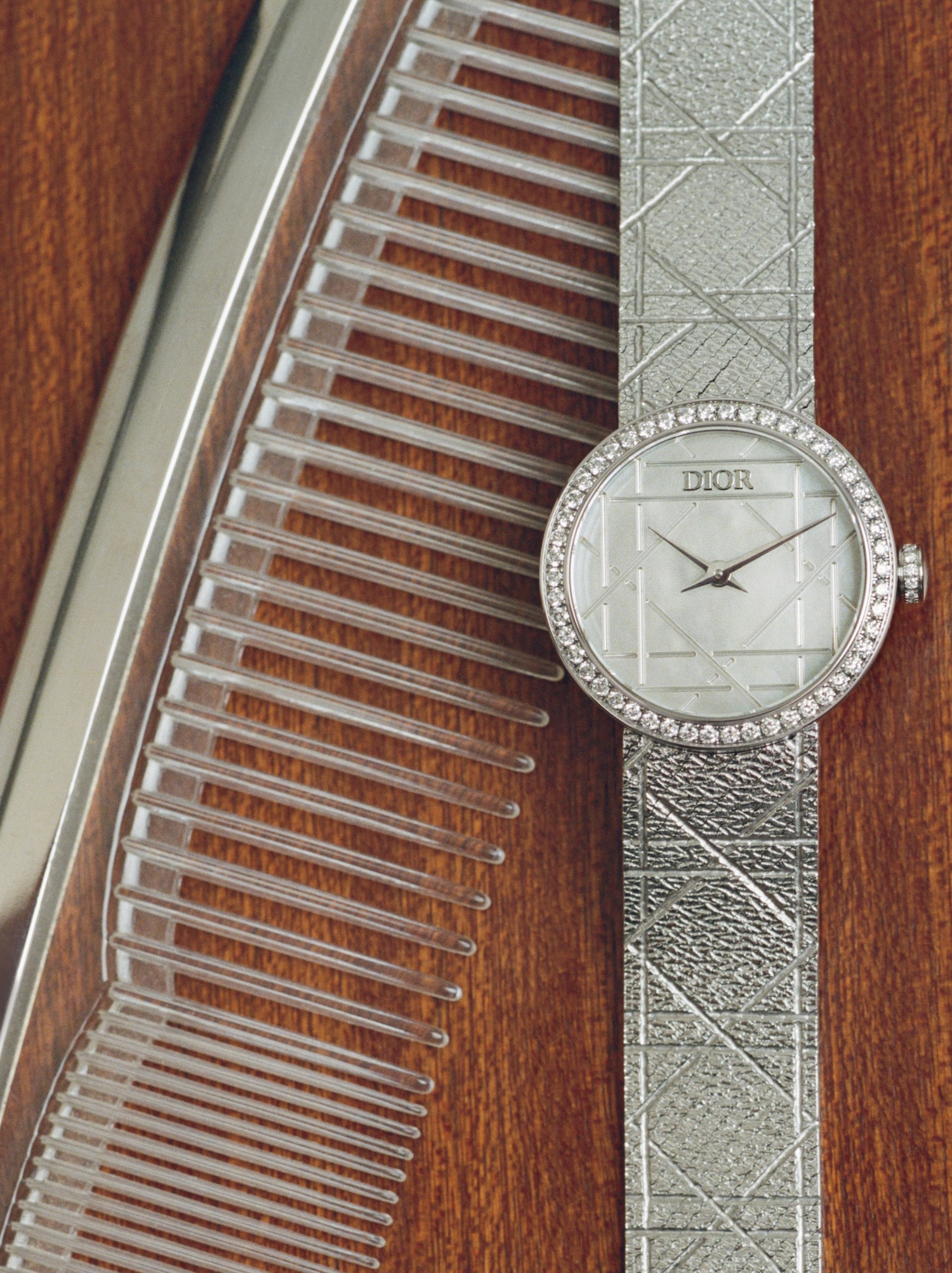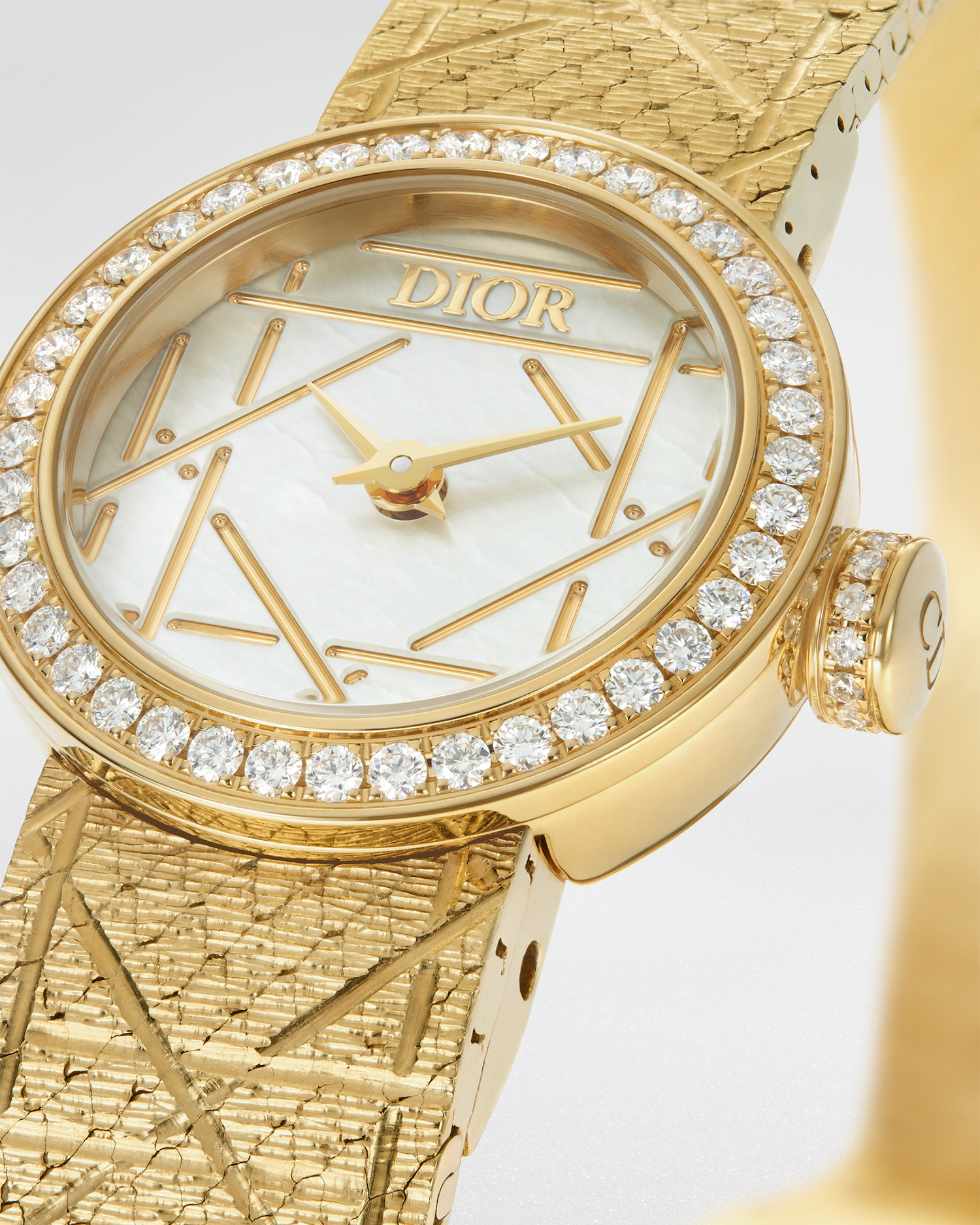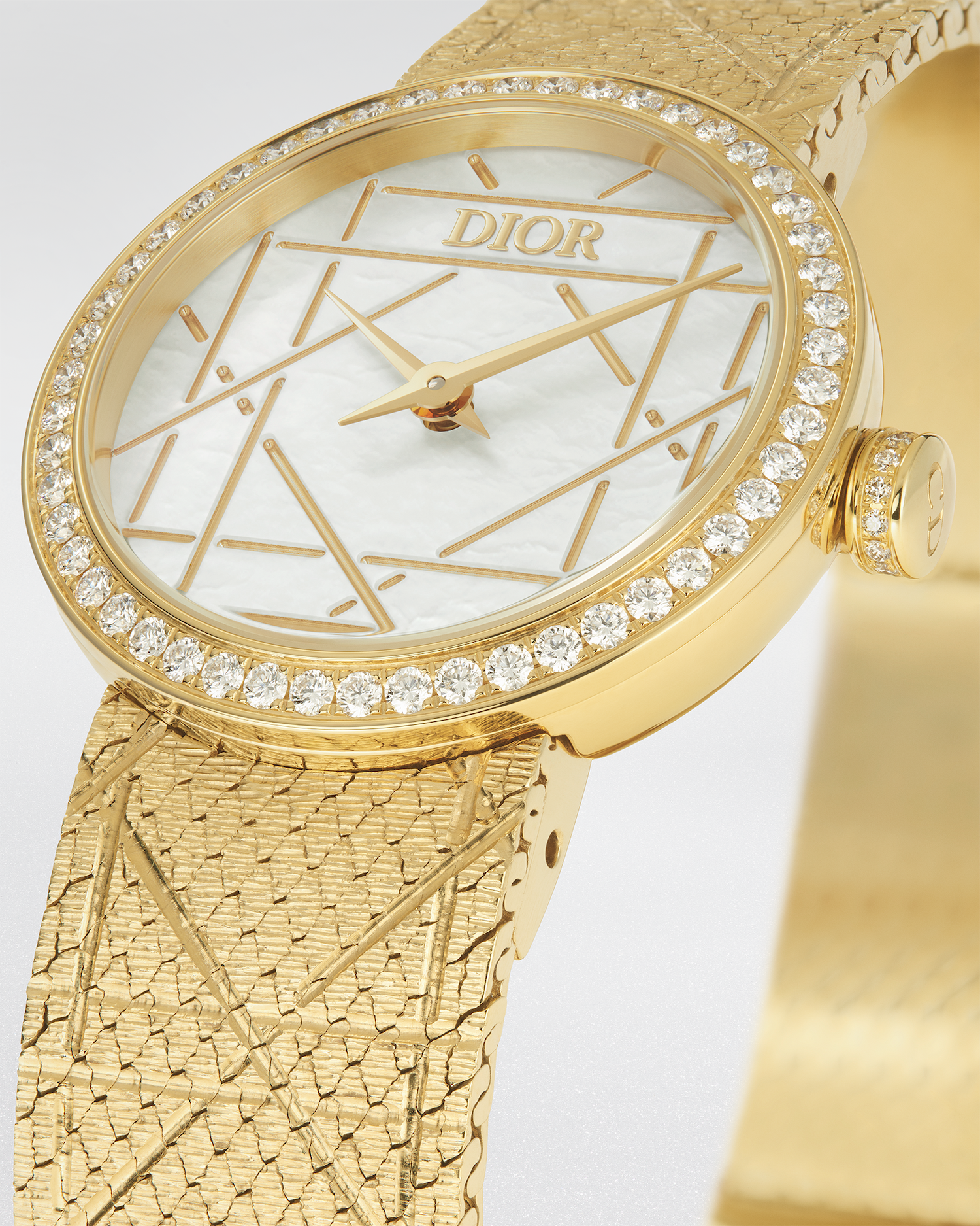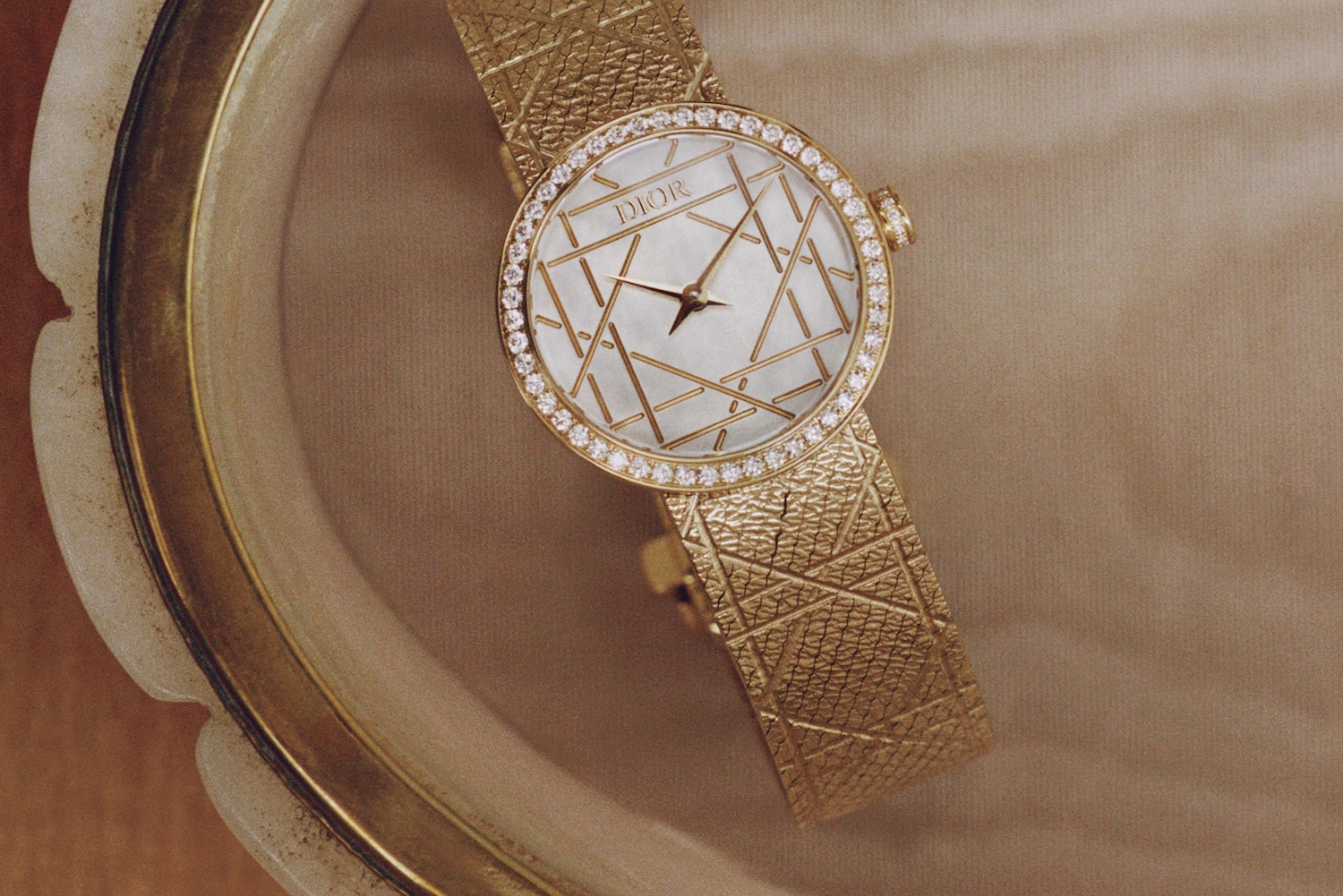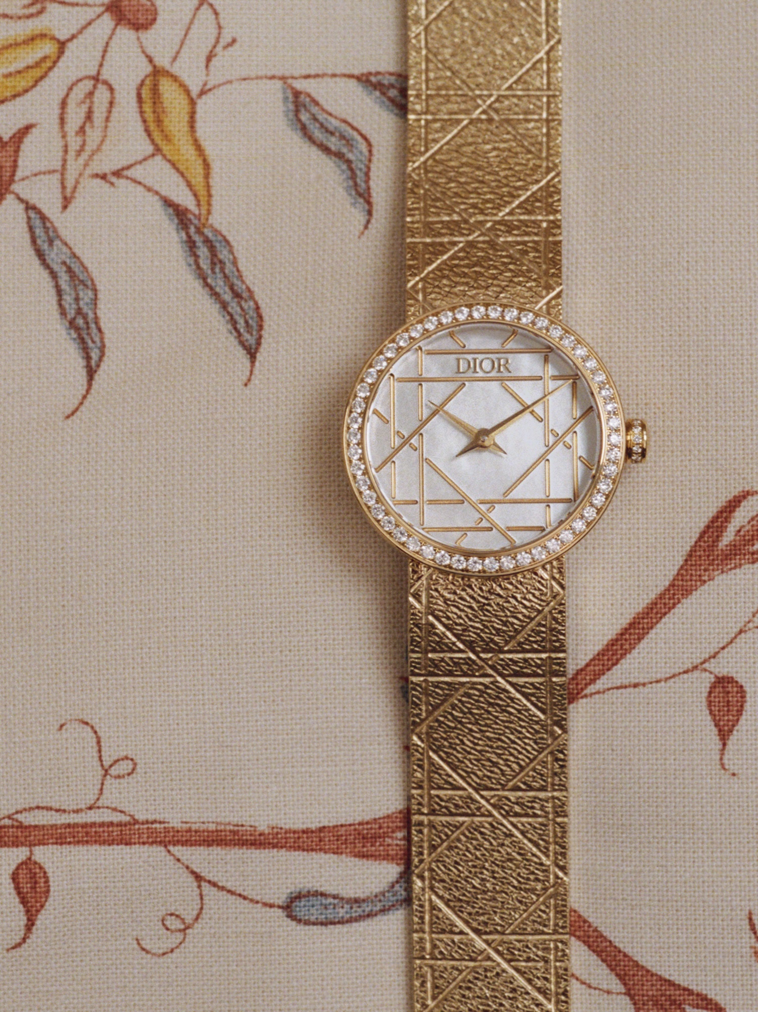 Over the years, that clean, two-handed dial has become a canvas for everything from opal to jade, but this season, the collection is dressing itself in Dior’s most famous texture: Cannage.