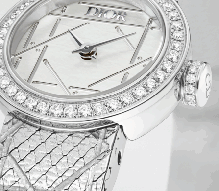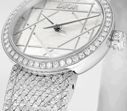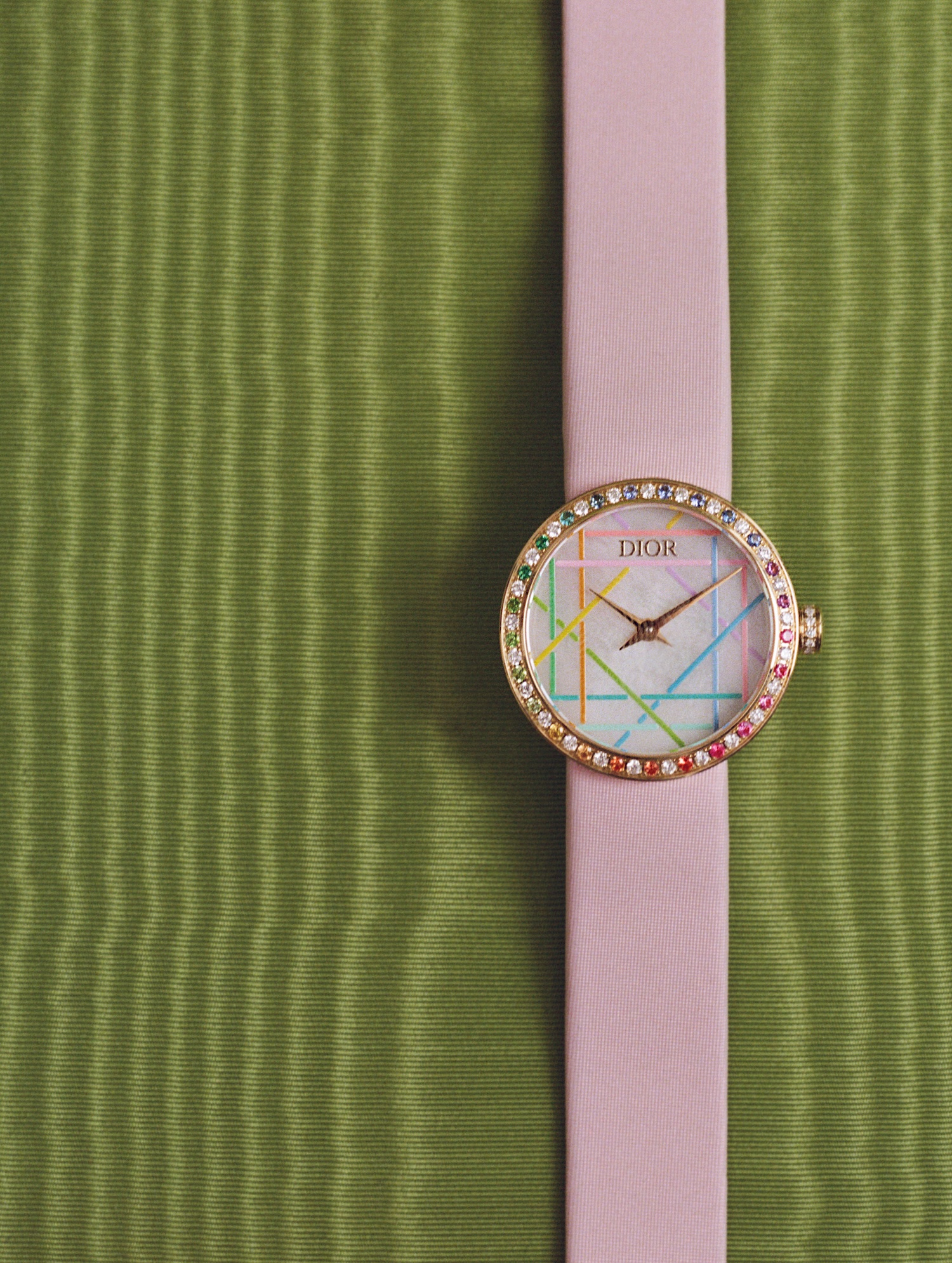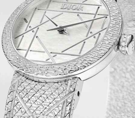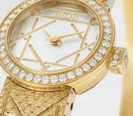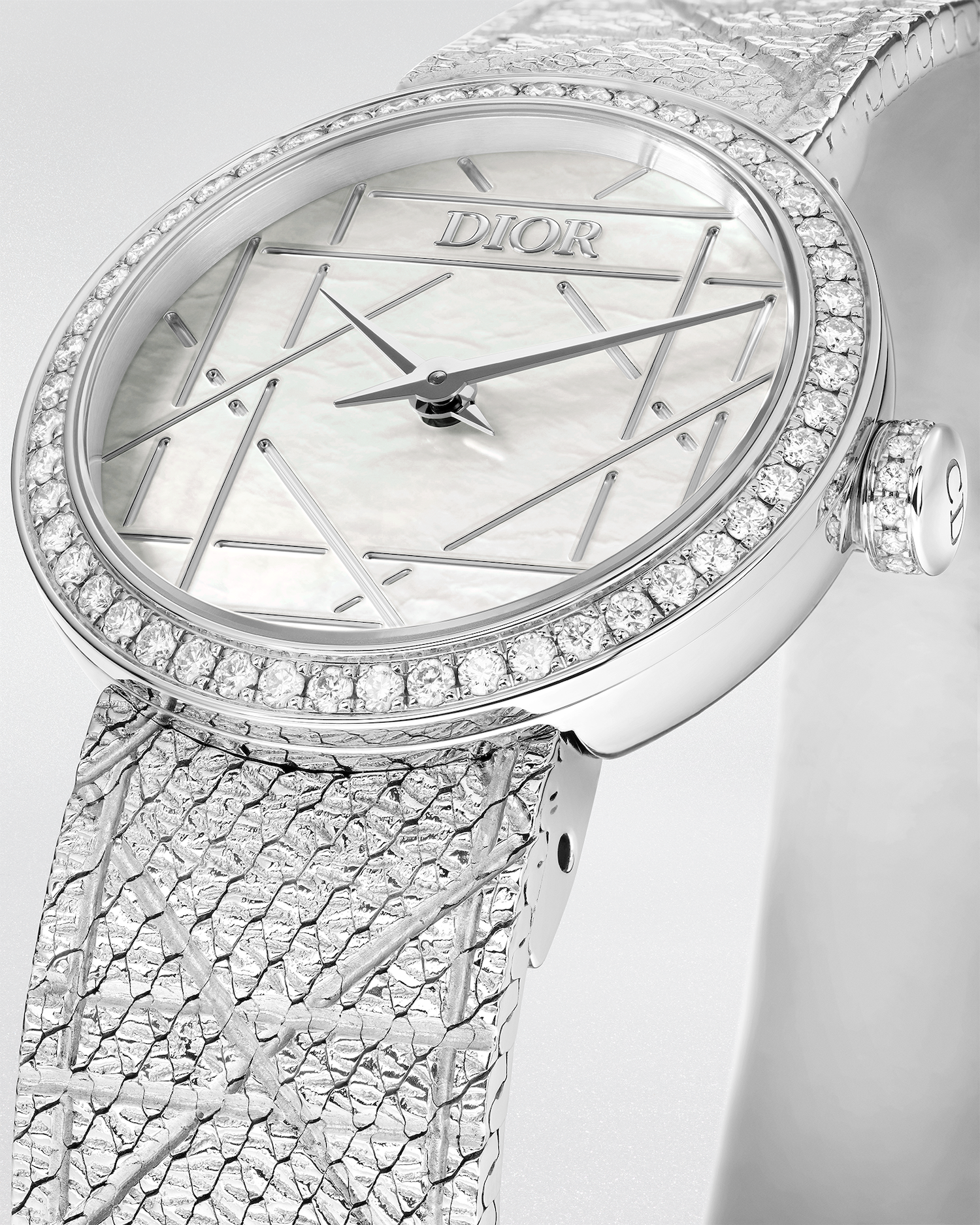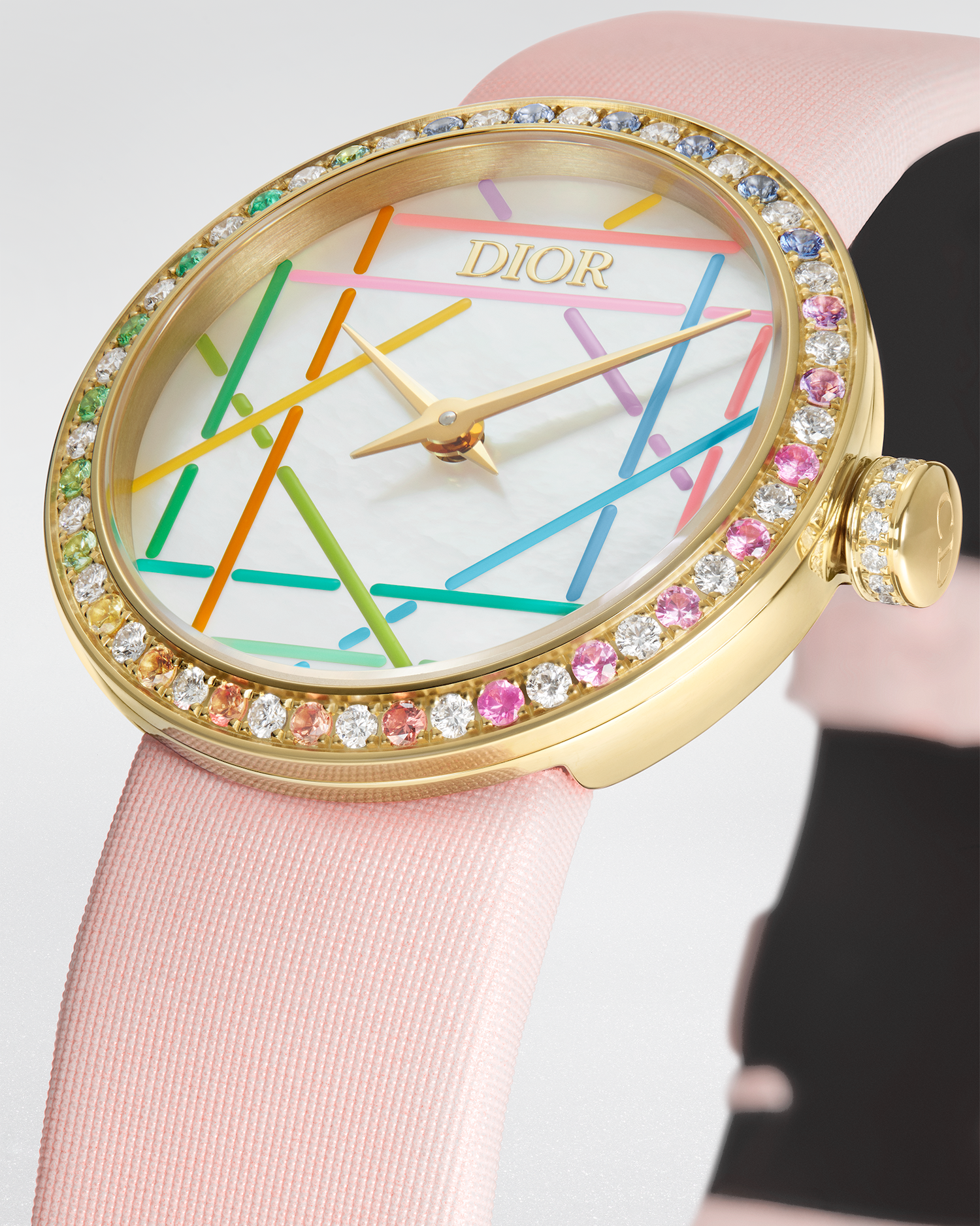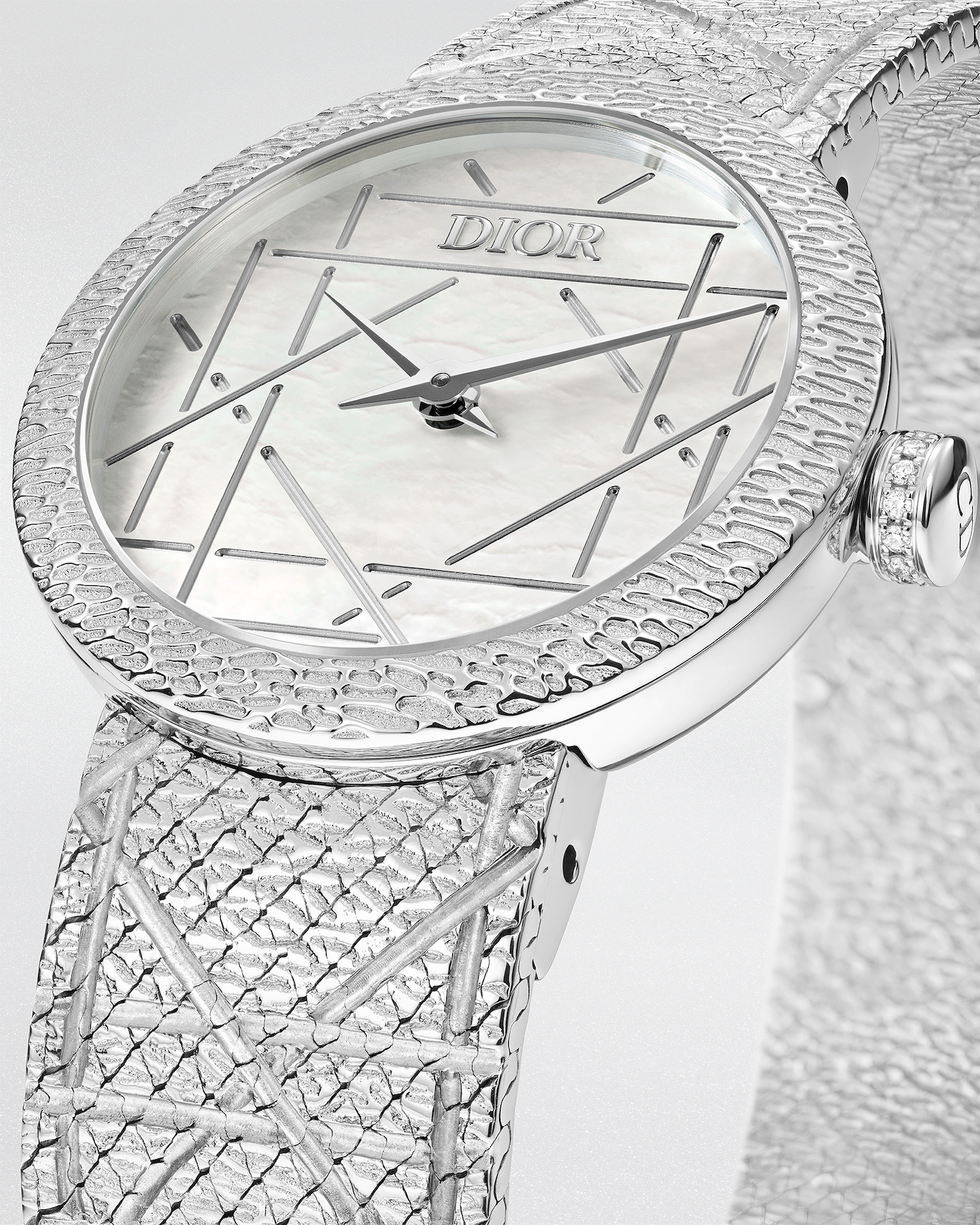 Over the years, that clean, two-handed dial has become a canvas for everything from opal to jade, but this season, the collection is dressing itself in Dior’s most famous texture: Cannage.