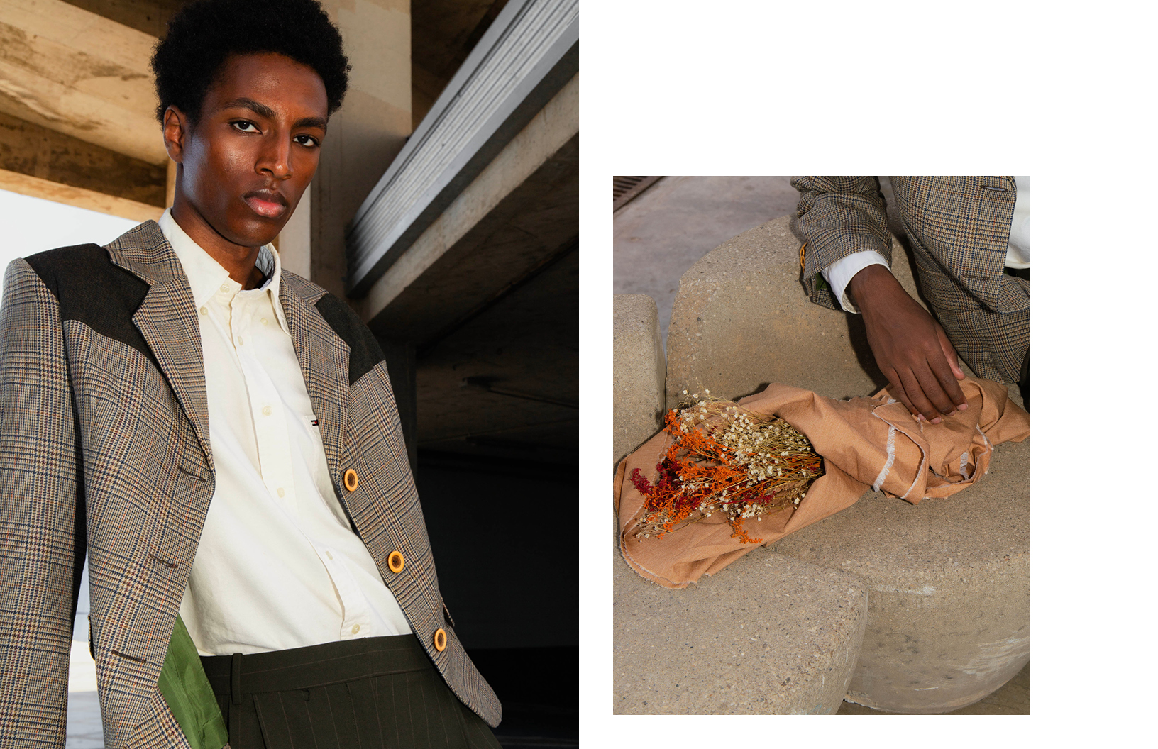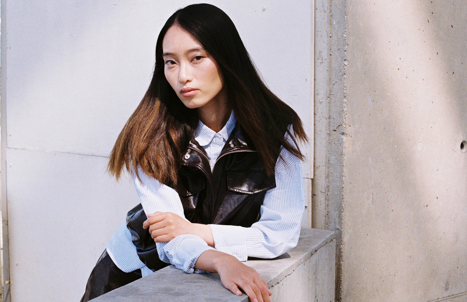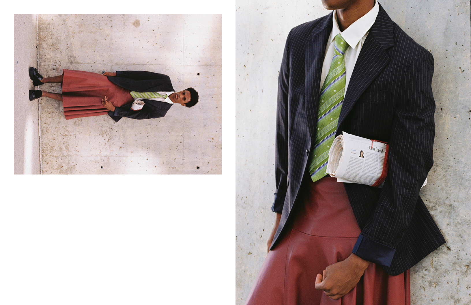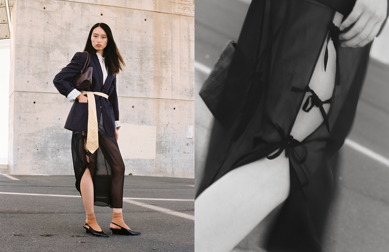 Models Eyasu Gonzalez and Song Z stun in Yves Saint Laurent, Emporio Armani, and Sandro Paris in this business chic Schön! online editorial photographed by Ángela Ibáñez Pérez with fashion by Carlos Baños and make up by Gisela Maqueda