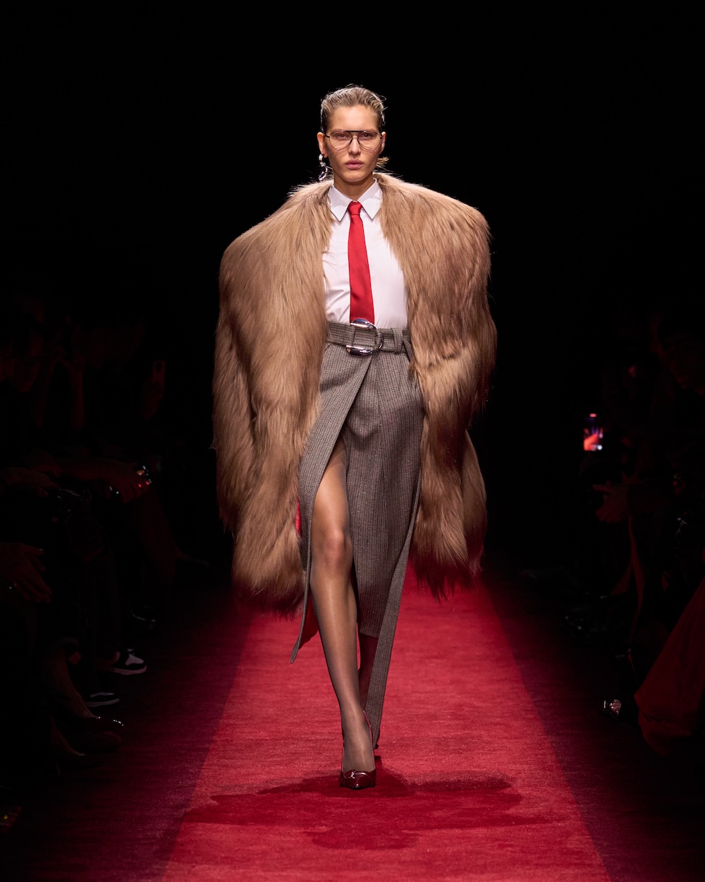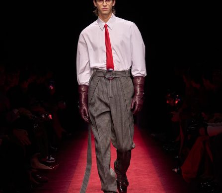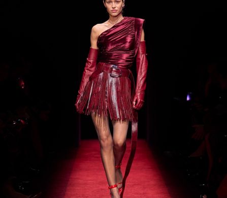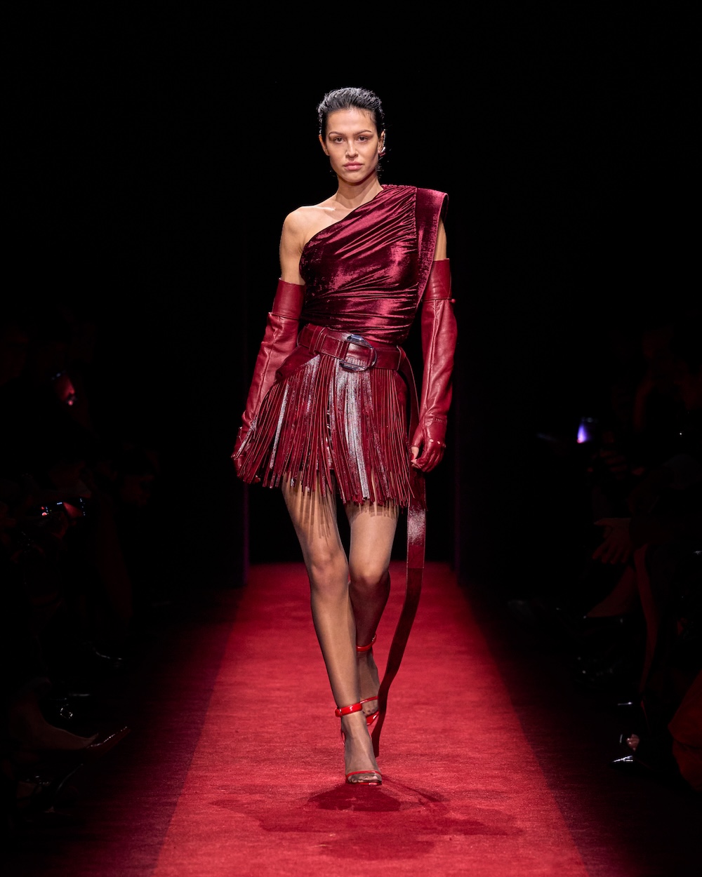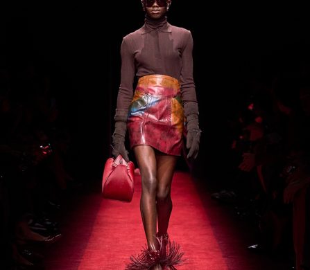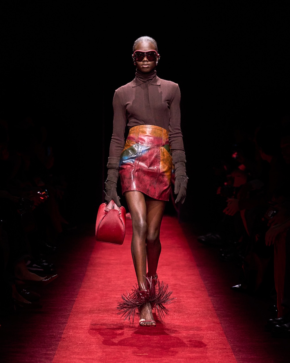 Accessories ground the collection in Ferrari’s signature aesthetic. The GT Bag, the Nello toolcase, and the Maranello Clutch are all elevated through rich textures and high-contrast finishes. Sculptural jewellery catches the light, gloves add a layer of functional elegance, and shoes — some with floating fringes — nod to the brand’s signature fusion of dynamism and refinement.