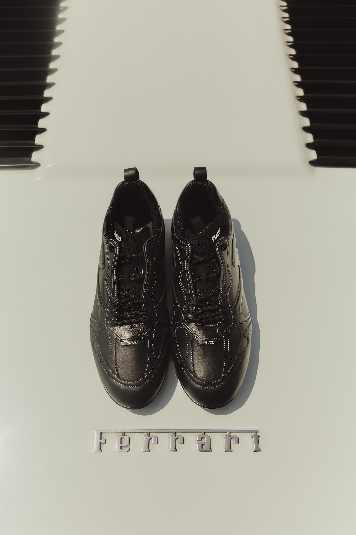 The shoes themselves are technical marvels: a hidden 1.2cm heel, exoskeleton structures, and a silhouette inspired by the original 1963 Car Shoe. Originally invented by Gianni Mostile for motorsport elites and the jet set, this classic model is reimagined for a new era. “We wanted to create a new silhouette, inspired by the traditional car shoe, but fully flat with a hidden heel for comfort and posture. The outsole and insole are engineered to support the arch and cushion the heel — so you can drive, walk, and celebrate.”