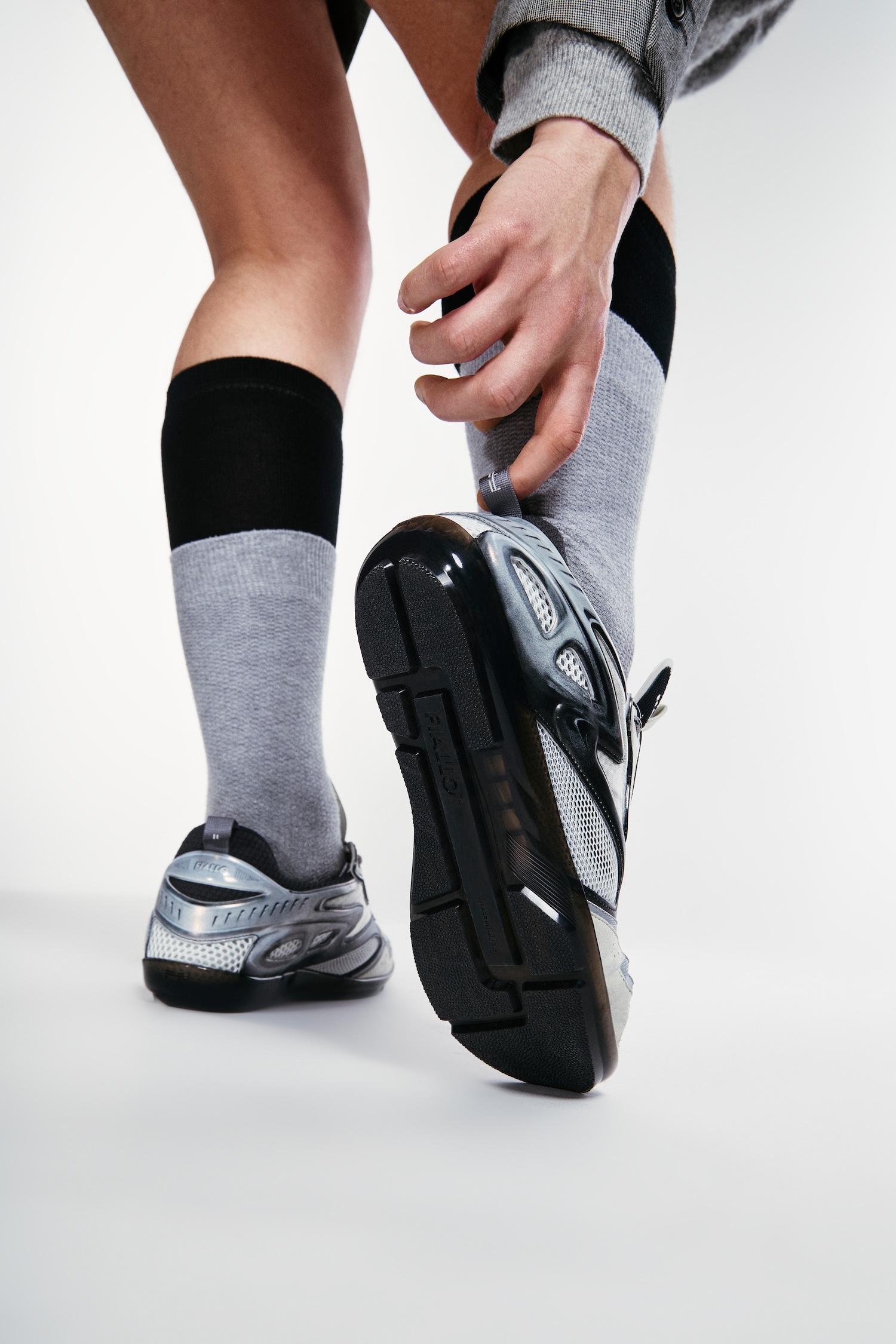 That hybrid perspective quickly made waves. Before he’d even launched a full collection, Fiallo won ITS Ferragamo Prize for Most Innovative Designer back in 2020. “It was a super honour. I was working in front of 15,000 shoes built by Salvatore Ferragamo. I saw a big gap in the luxury industry to create something that combined performance and elevated style.”