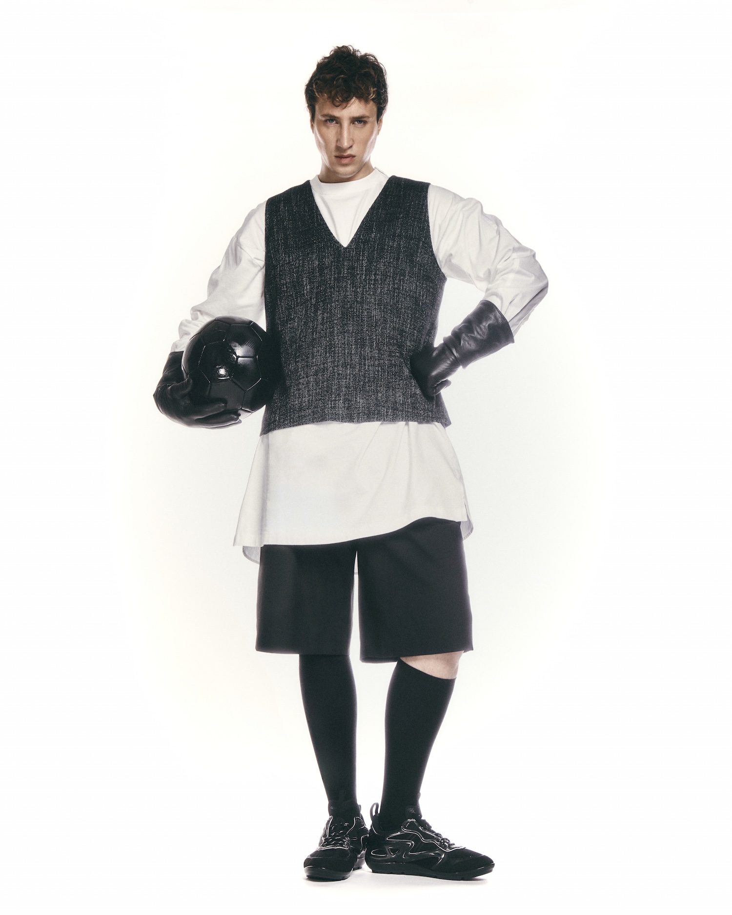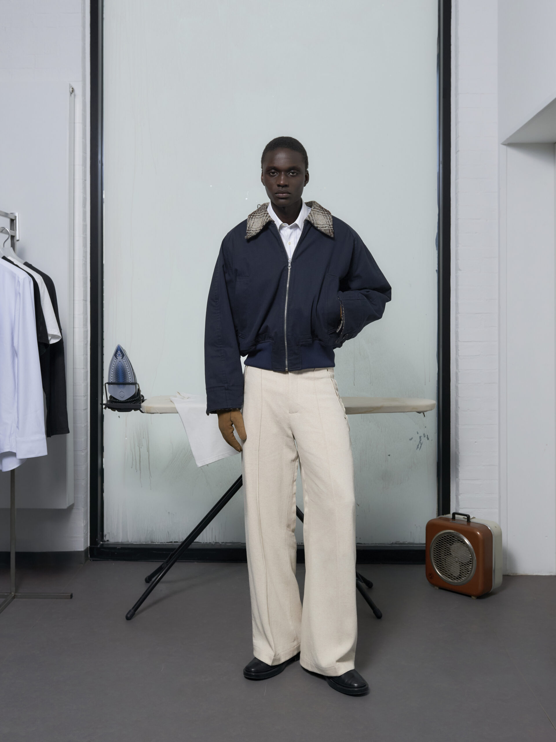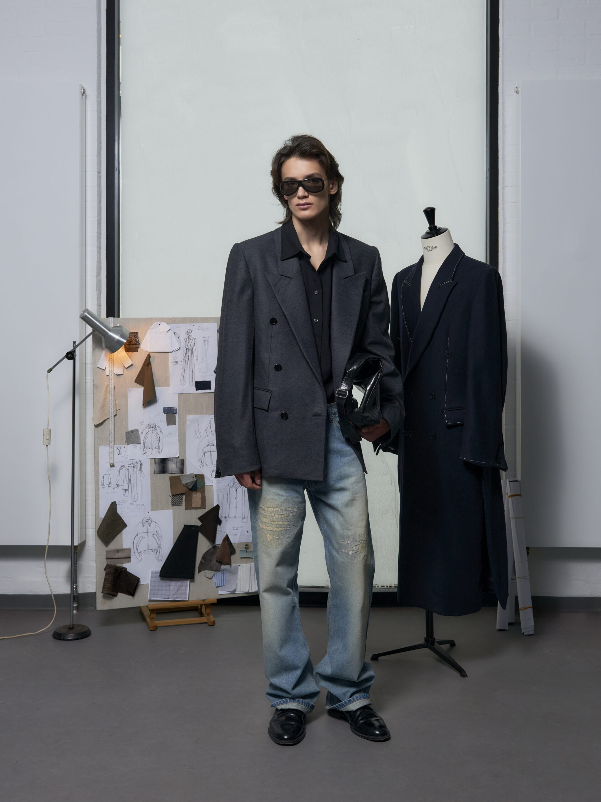 What sets Fiallo’s relationship with the automotive world apart is its depth. SS26 also marks the brand’s official entry into motorsport, debuting with a capsule collection in collaboration with Double TT Racing with Ferrari. “We’re not following trends, but detecting what’s only just being made,” he explains. “We’ve signed a collaboration with the team, and each pilot will have the chance to customise their own tag, to bring their message, their pain, their victory.” The collection is as much about storytelling as it is about speed: “It’s about bringing back the time of celebration and travel, the hope that comes with movement.”