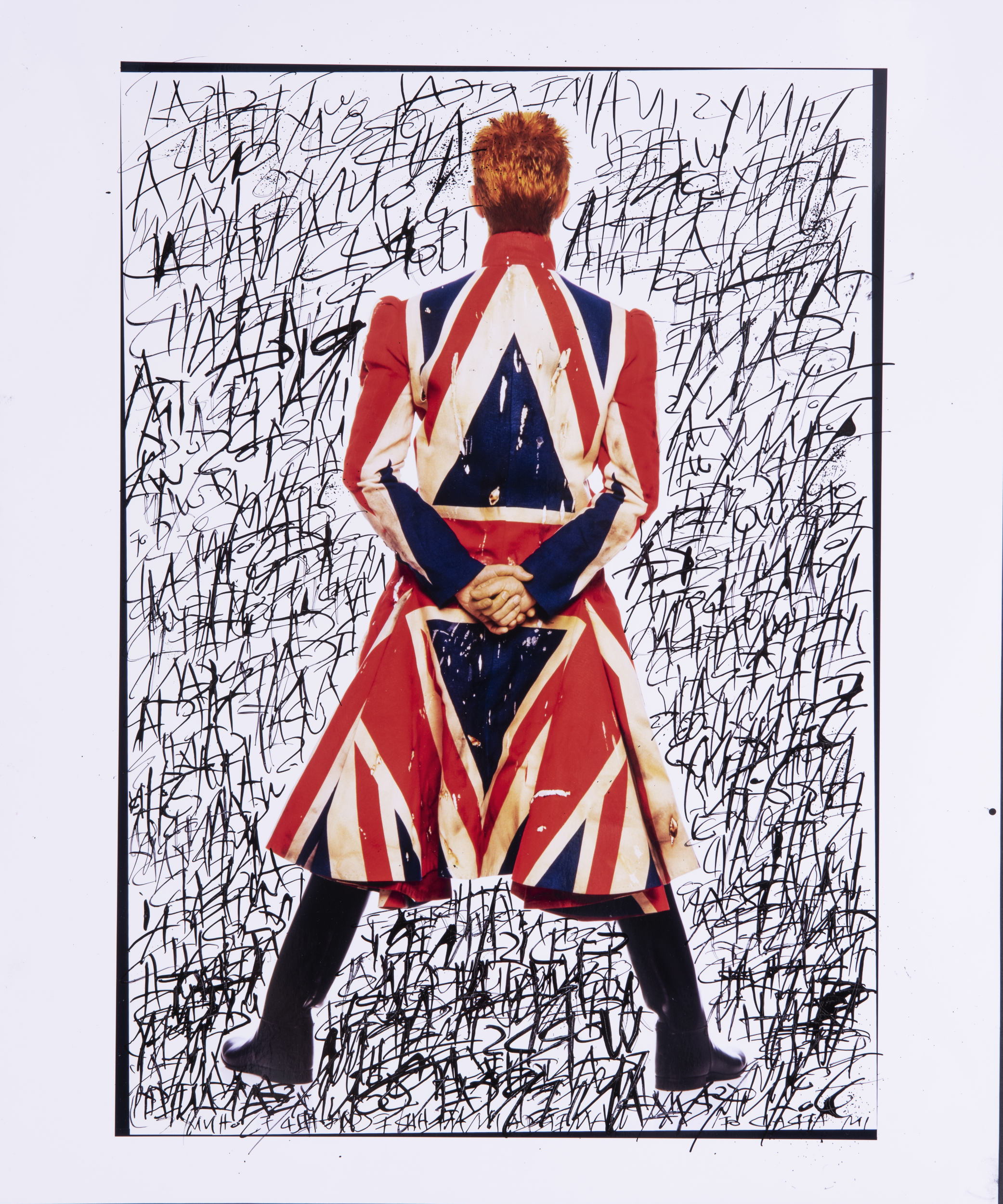 The exhibition blends new photographic works with unconventional, mixed-media creations where photography is no longer the primary focus. Skateboards, newspapers, and scrap metal become unconventional canvases for Ockenfels’s expressive use of paint, pen, and brush. Through his intentionally raw and experimental manipulation of images, portraits of others are transformed into mirrors of his own identity, offering a glimpse into his inner world and creative psyche.