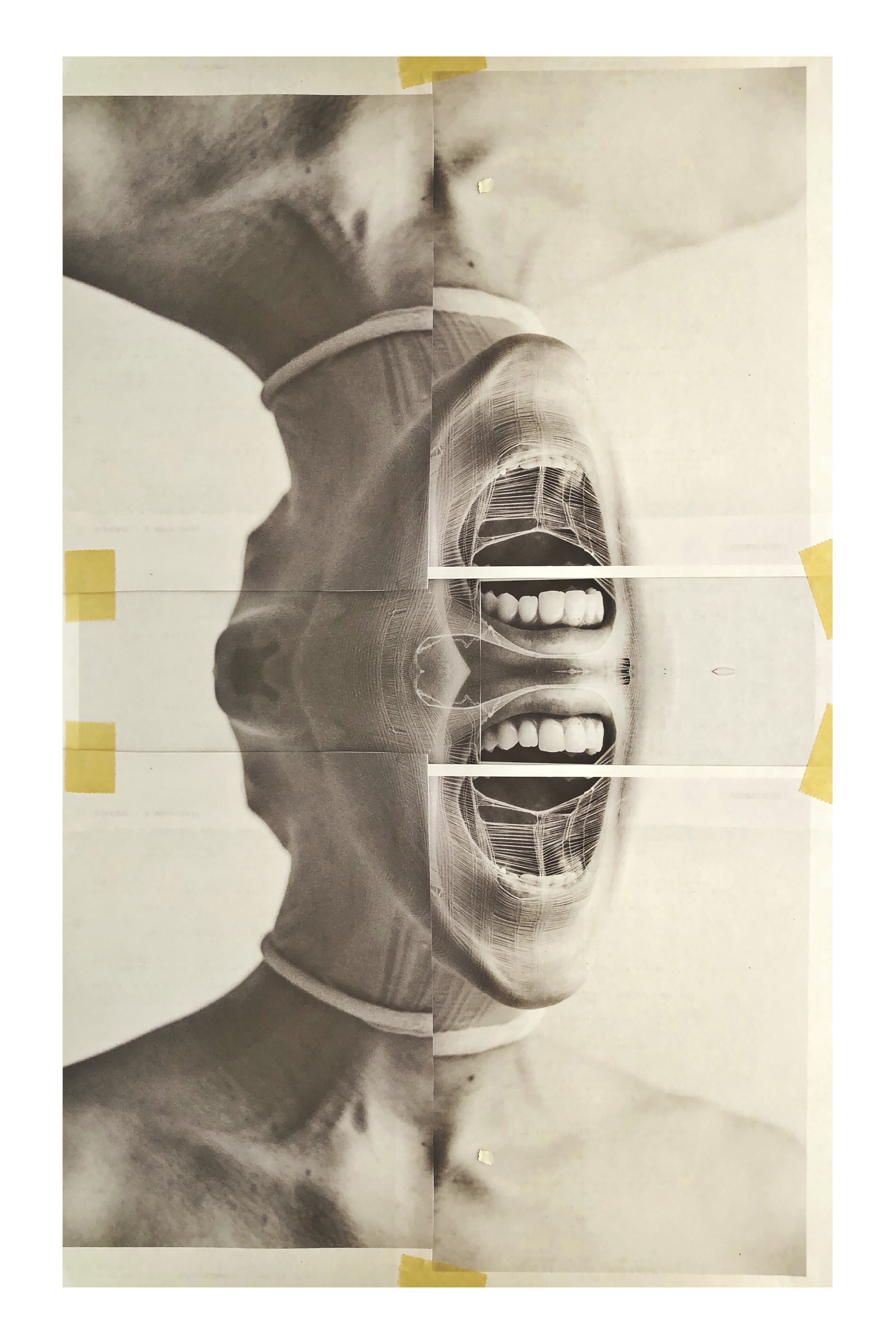 Your work distorts traditional portraiture by incorporating elements like ink, charcoal, and scissors. What does this process of breaking down and rebuilding imagery represent to you emotionally and creatively?