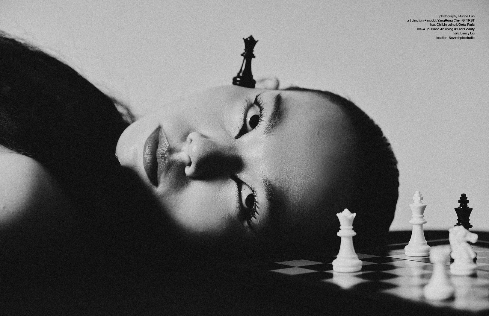 YangRung Chen appears as both art director and model in this Schön! editorial, captured by photographer Runhe Luo. Beauty details include nails by Lancy Liu, hair by Chi Lin using products by L’Oréal Paris, and make-up by Diane Jin using Dior Beauty.