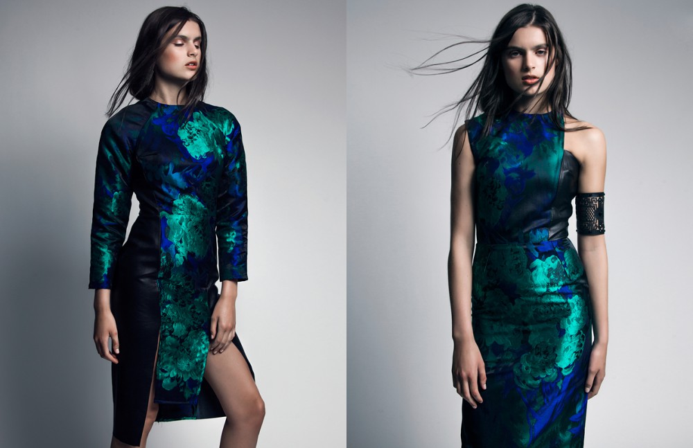 Floral silk dress & laser-cut leather bracelet / Genoveva Christoff