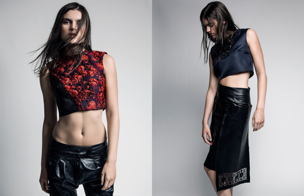 Silk top & laser-cut leather skirt / Genoveva Christoff