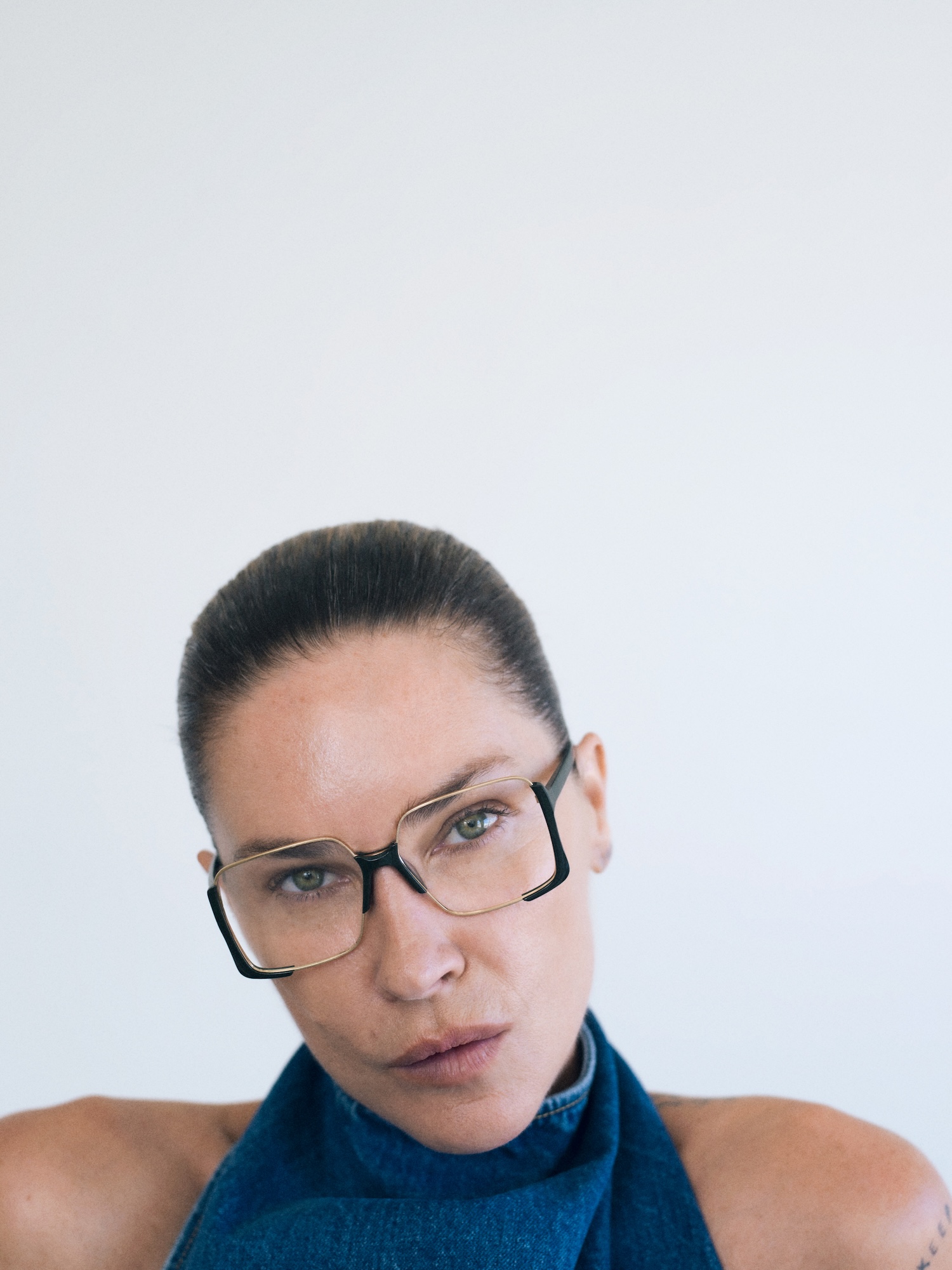 The eyewear is a tactile and visual experience. The VANGUARD line, for example, features oversized round frames with a beautiful harmony between a voluminous front and slim temples. Other designs, like the SENNA, channel a 70s essence, blending acetate and metal in a sophisticated, lightweight construction. The LAB collection explores soft lines and rounded contours, where tone-on-tone laminations add visual depth without sacrificing a serene, cohesive feel. Even the smaller frames in the XS line have a sculptural presence, with a subtle crescent-shaped curve that adds a touch of personality. From the aviator-inspired Thea to the sleek Lyanne, each pair is designed to have character and a sense of effortless confidence.