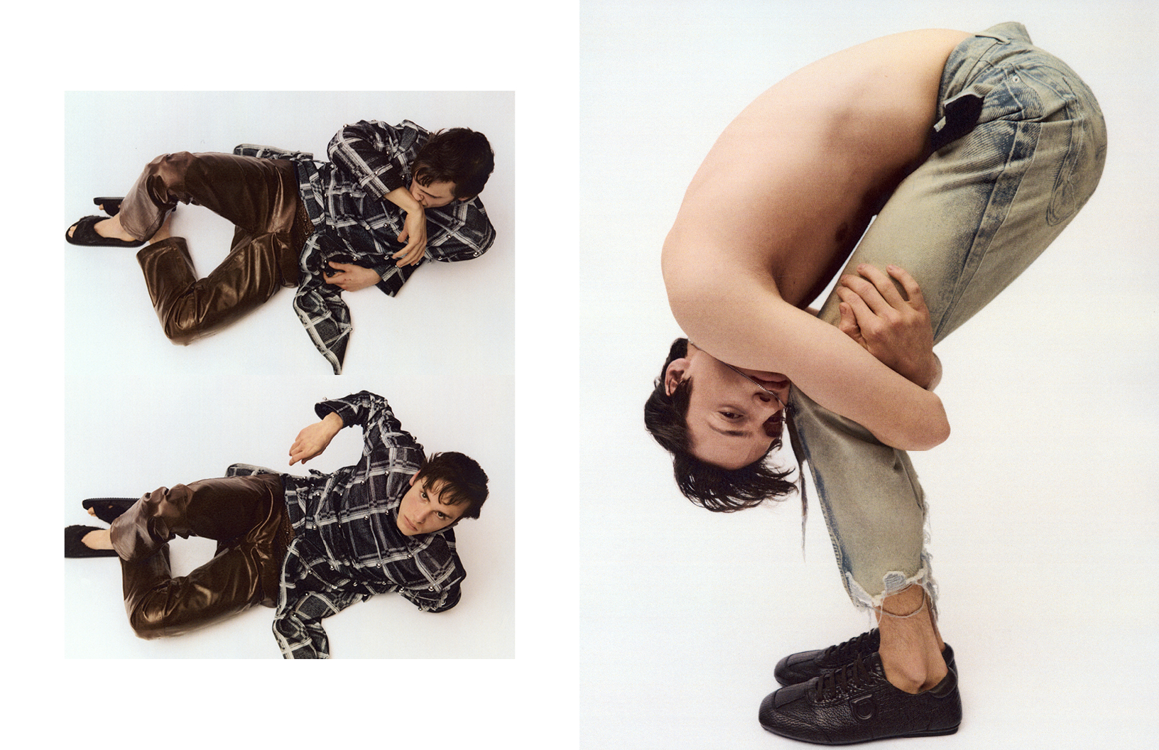 Photographers Michael Wong and Leo Braun take cues from the grunge era in this Schön! editorial featuring fashion by Alessia Ryazanova who dresses Frederik Rehmet in looks by Isabel Marant, Dior, Alexander McQueen and others. Hair and make up for the editorial is by artist Tanja Fritzler.