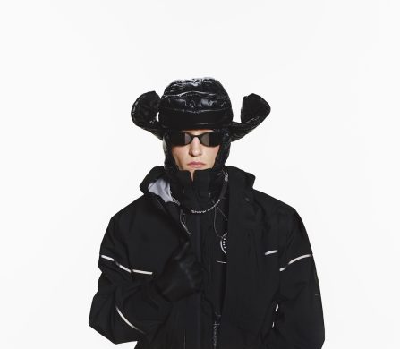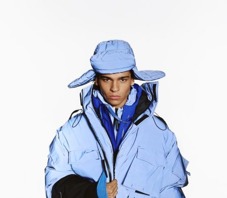 Ackermann reimagines Canada Goose’s technical language with unexpected design choices: linings become outer shells, quilting is turned inside out and performance fabrics take on a more sculptural form. The palette drifts between fluorescent mint, ice lavender and deep navy earth-blue, anchored by muted browns and black.