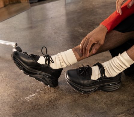 The top of the design is remarkably fluid, combining textured mesh and leather elements, accented with sharp metal hardware and HOKA’s innovative lace-toggle system. The genius lies in the three interchangeable lacing options, giving the wearer the power to instantaneously adapt the look and fit, seamlessly transitioning from a relaxed, off-duty aesthetic to a more structured, elevated style.