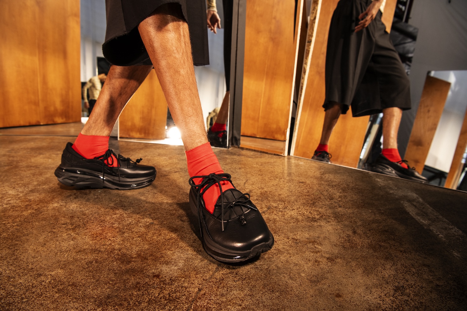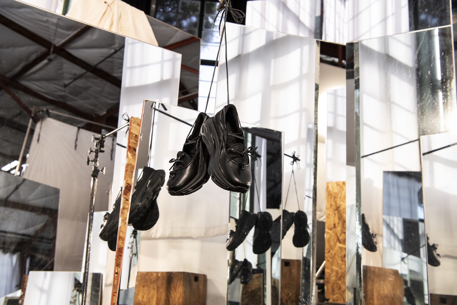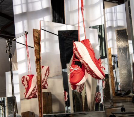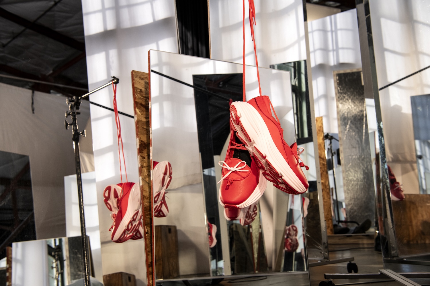 HOKA describes this creation as “a fluid new expression of the iconic Bondi,” and on the runway, it proved its versatility: styled with gingham dresses, cropped trousers, and tailored separates, it was as adaptable as it was striking. Offered in two initial colourways, an understated All-Black and a lively Cerise/Rose Tea, it makes one point clear: categories no longer hold sway.